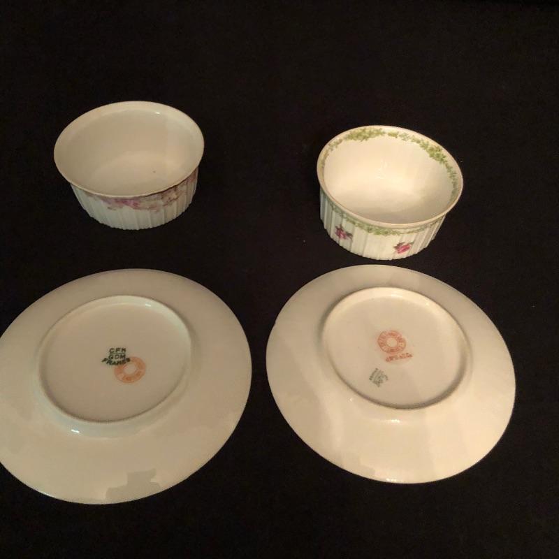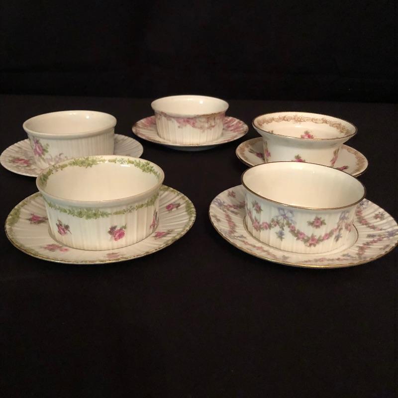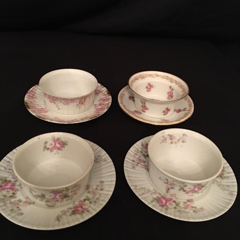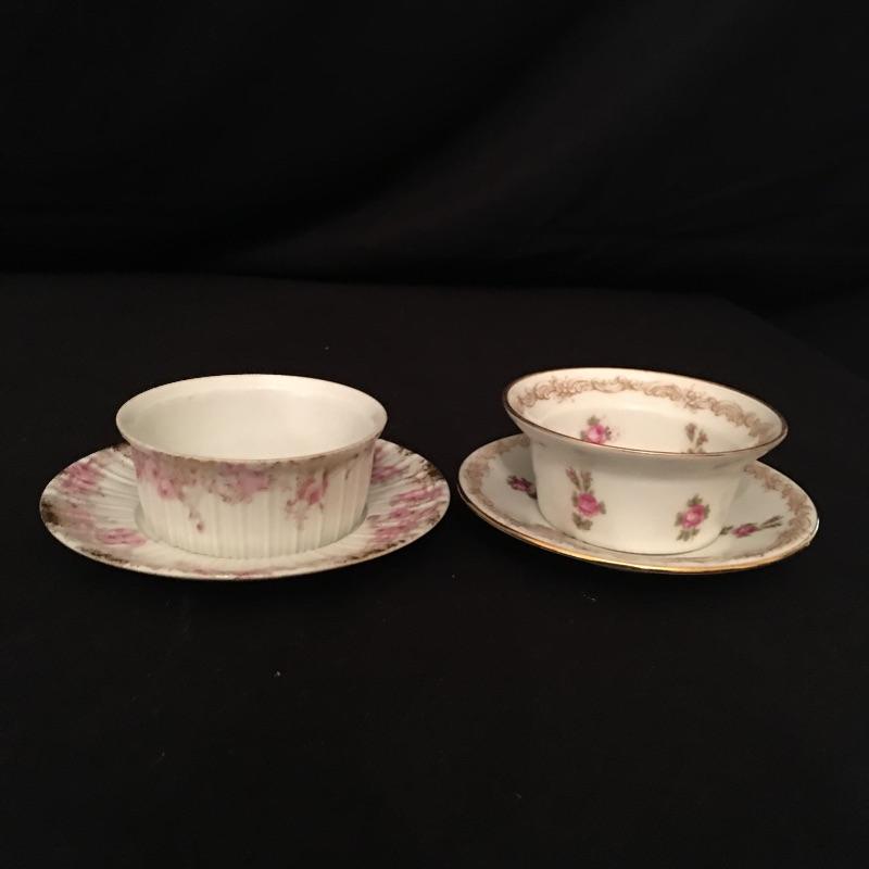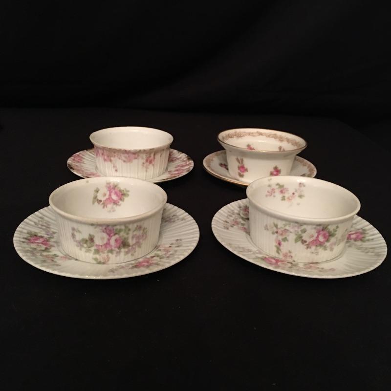This adorable dainty assortment of ramekins features five different designs and makers with a total of thirteen sets altogether. Lot features a matching set of eight marked Goa and another set of two unmarked . The rest are all individually designed sets.. See images for the maker marks.