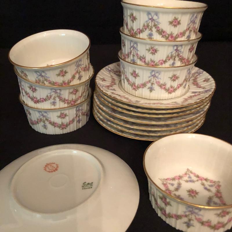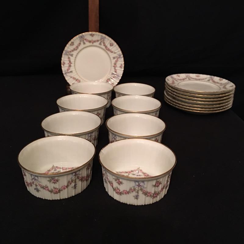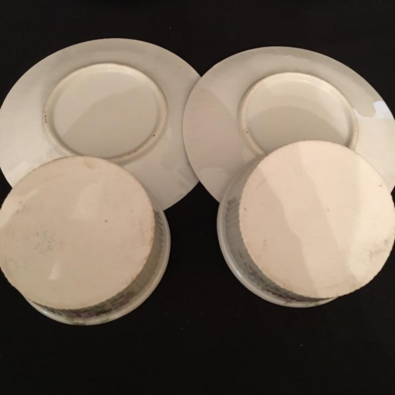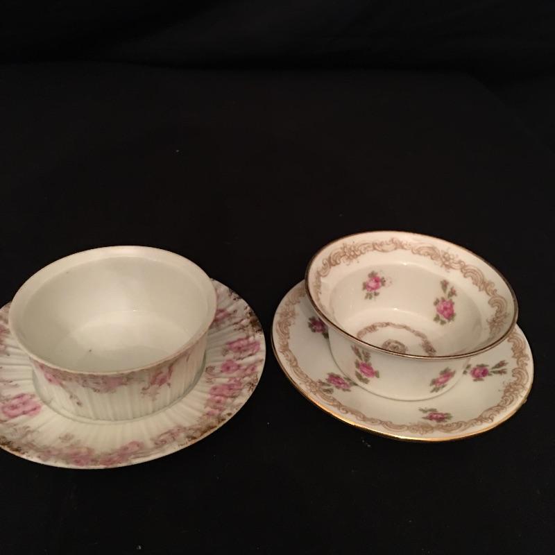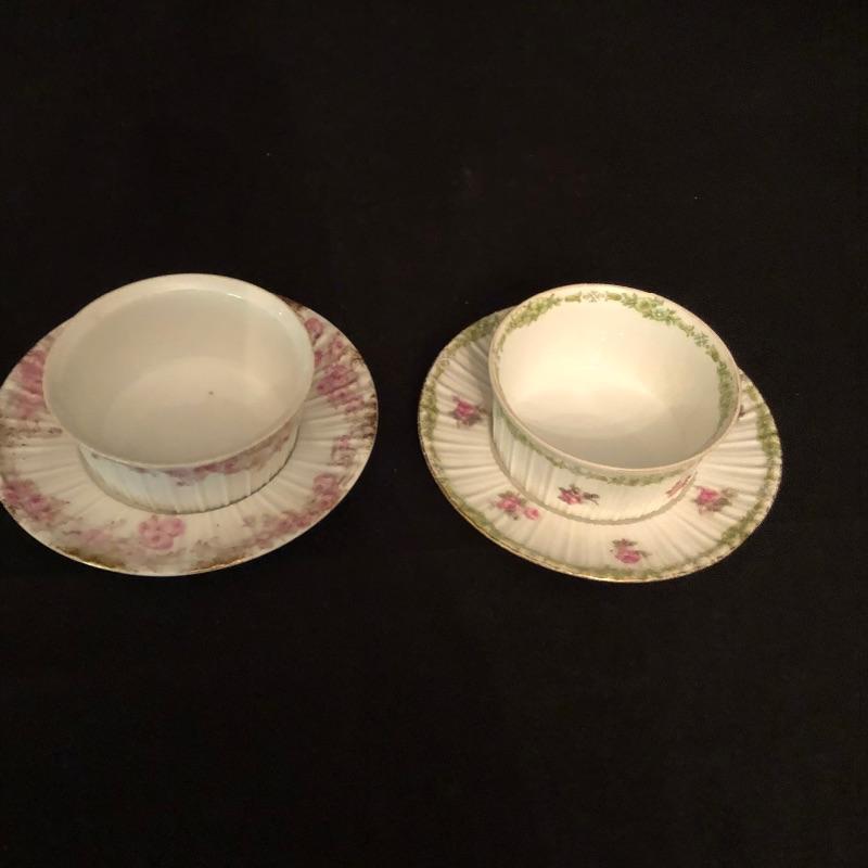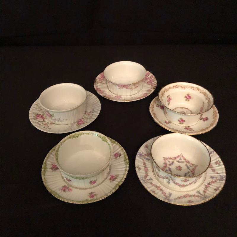 This adorable dainty assortment of ramekins features five different designs and makers with a total of thirteen sets altogether. Lot features a matching set of eight marked Goa and another set of two unmarked . The rest are all individually designed sets.. See images for the maker marks.