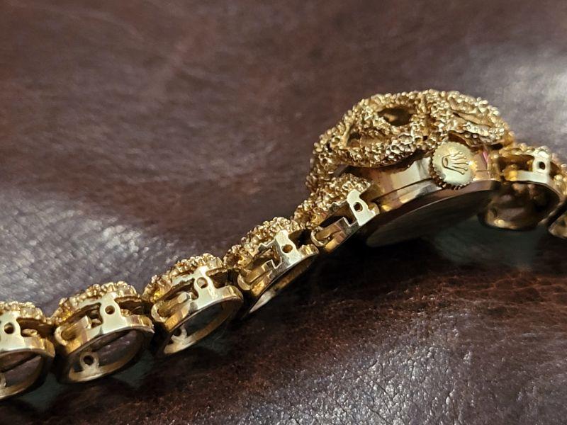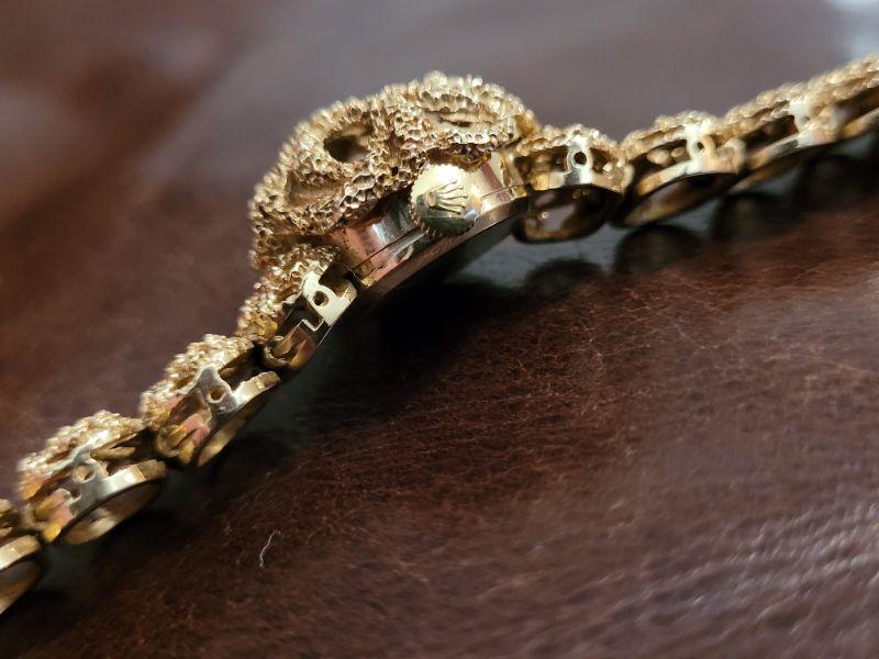 ☆☆ AUTHENTICATED AND TESTED A+. MANUAL WIND MOVEMENT AND FLIP TOP CASE CREATES A ONE OF A KIND PRESENTATION THAT WON'T BE SEEN ON ANOTHER WRIST IN YOUR LIFETIME. WHAT BETTER WAY TO CELEBRATE THE PASSING OF TIME WITH STYLE. 14K YELLOW GOLD CASE AND BRACELET LOOKS STUNNING ON THE WRIST. COVER CASE MEASURES ABOUT 20mm as shown. ALL ROLEX ORIGINAL - HARD TO FIND RARE CUSTOM CREATION DIRECT FROM ROLEX DESIGN HOUSE! AS WITH ALL VINTAGE WATCHES, WE SUGGEST AN IMMEDIATE SERVICE TO ENSURE CONTINUED ACCURATE TIMEKEEPING - ALL WATCHES ARE SOLD AS IS, THERE ARE NO RETURNS FOR ANY REASON AND THERE ARE NO WARRANTIES. LOCAL PICKUP ONLY AND BUYER MUST SIGN A RECIEPT DOCUMENT ONCE ITEM IS PICKED UP. PLEASE MAKE SURE YOUR CARD ON FILE HAS SUFFICIENT FUNDS TO COVER THE FINAL HAMMER PRICE + SALES TAX AND BUYERS PREMIUM ☆☆