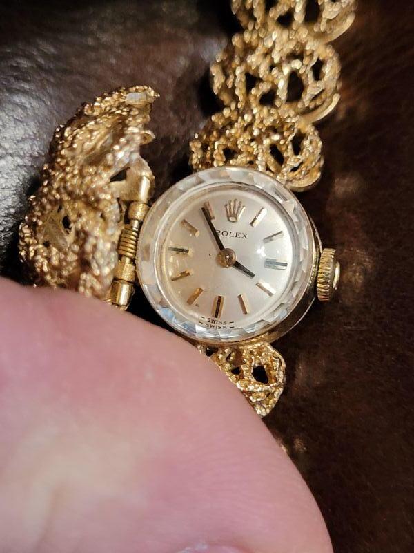 Lot #99: RARE ROLEX Ladies 14k Solid Gold Case and Bracelet Manual Wind Dress Watch TESTED A+