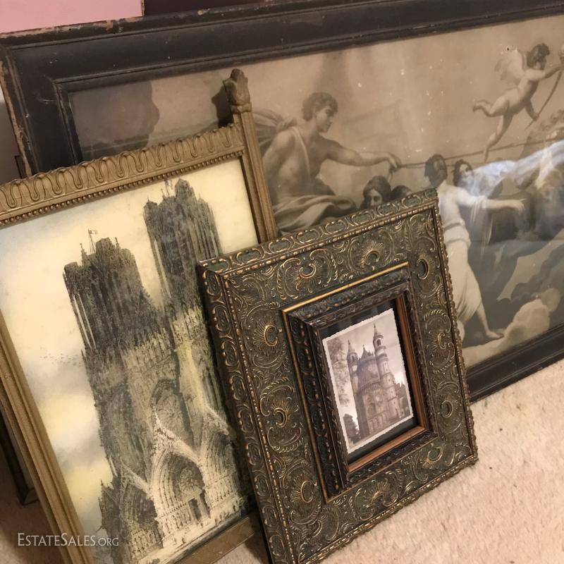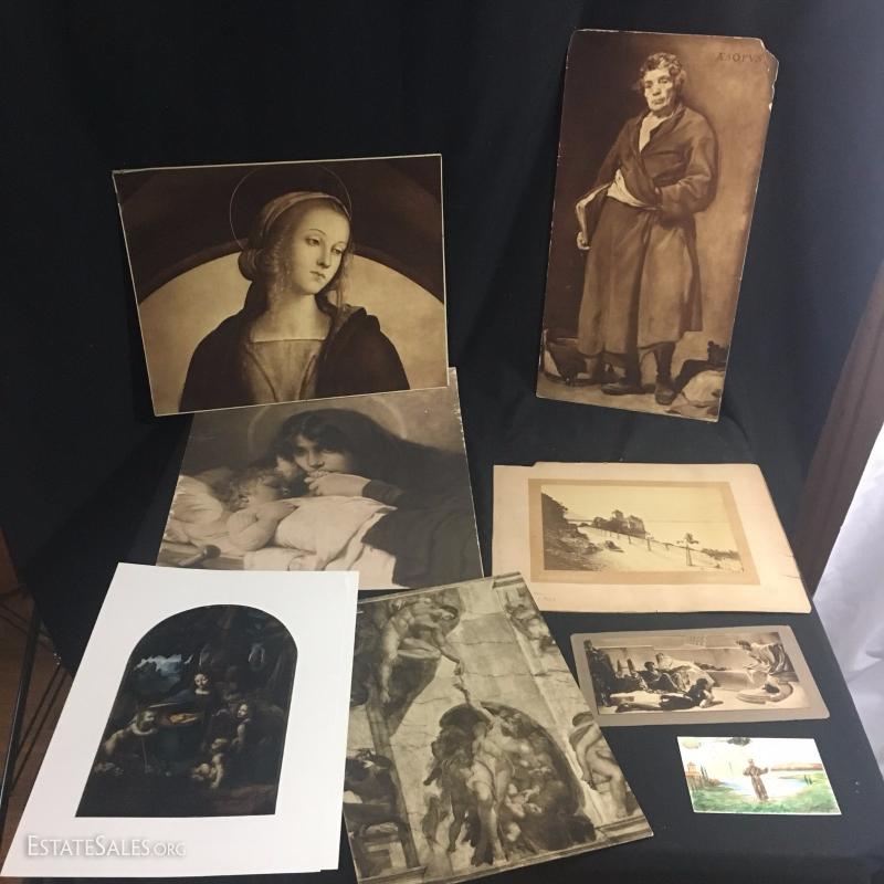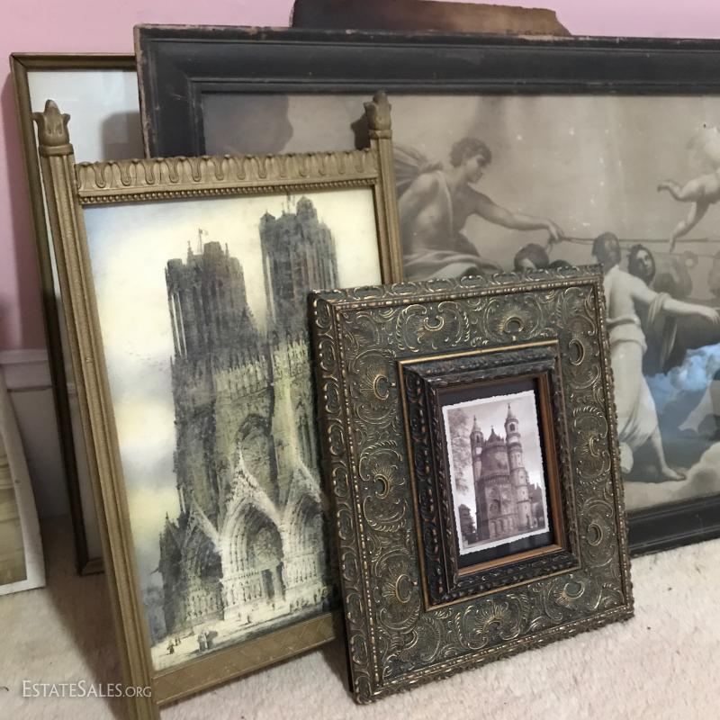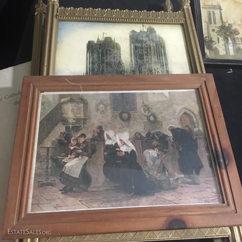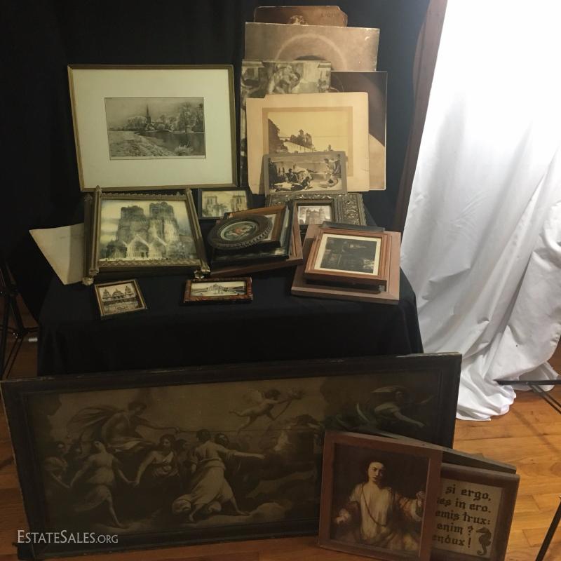 Large lot of various religious, Rome, Greek, Cathedrals and Castle themed art. Largest piece is 43.5"l x 21.5"w