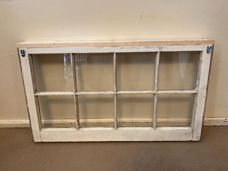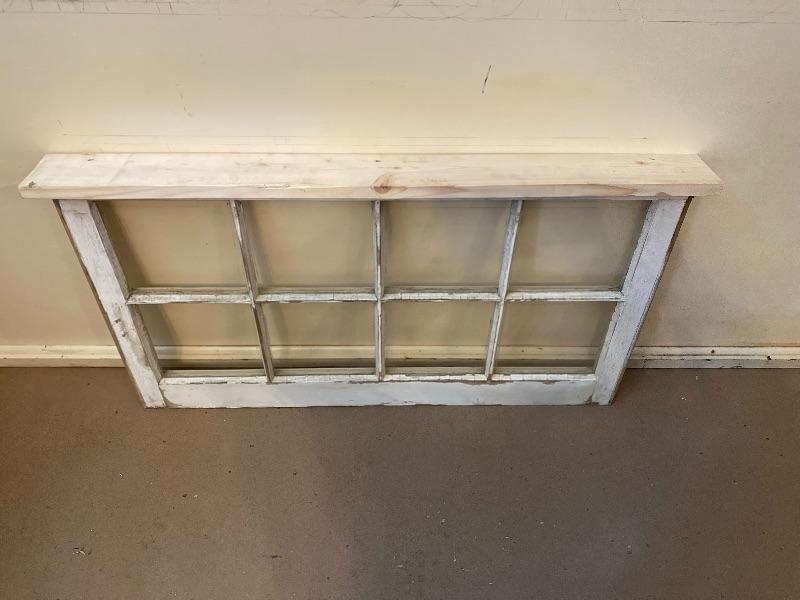 Lot# 99 Repurposed Wall Mount Shelf 8 pane Wondow Shabby Chic