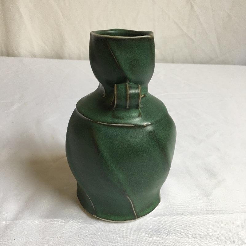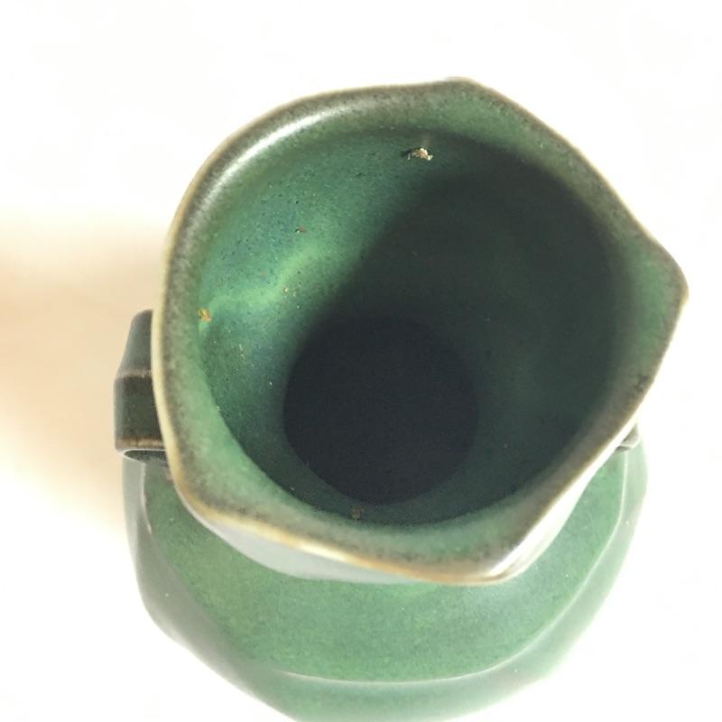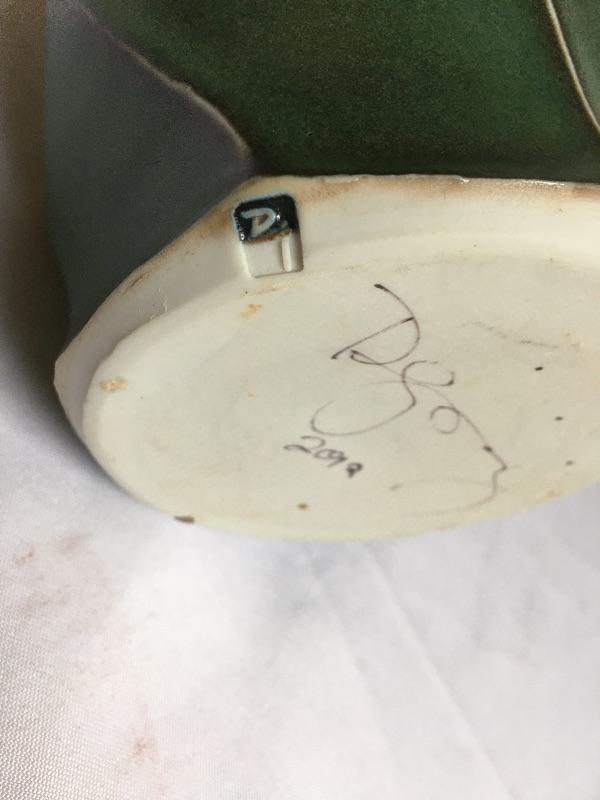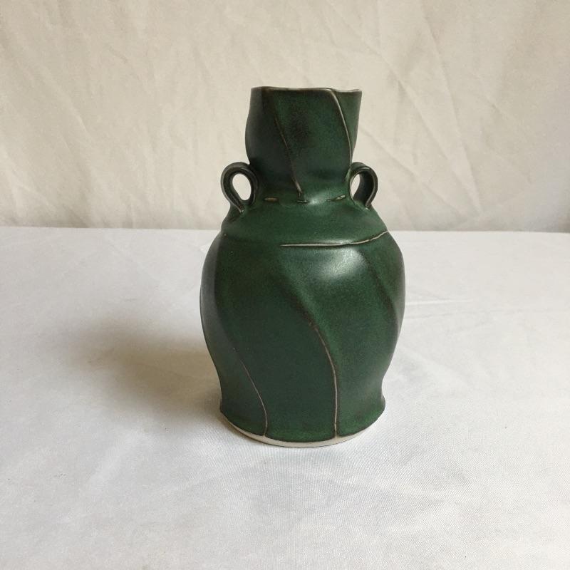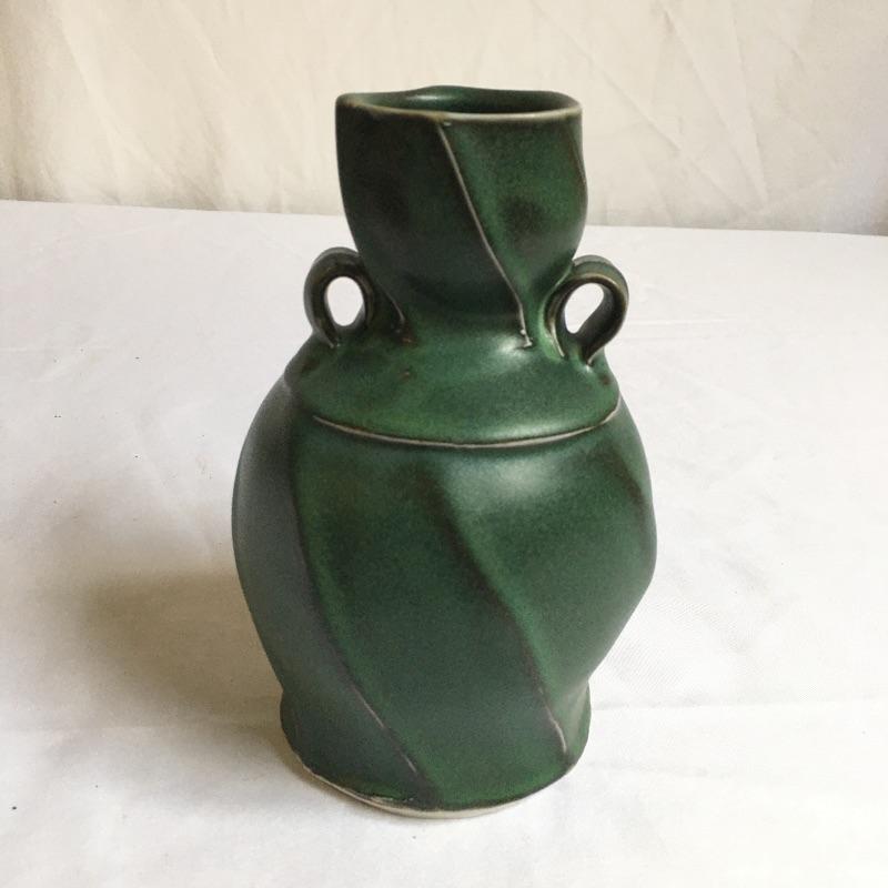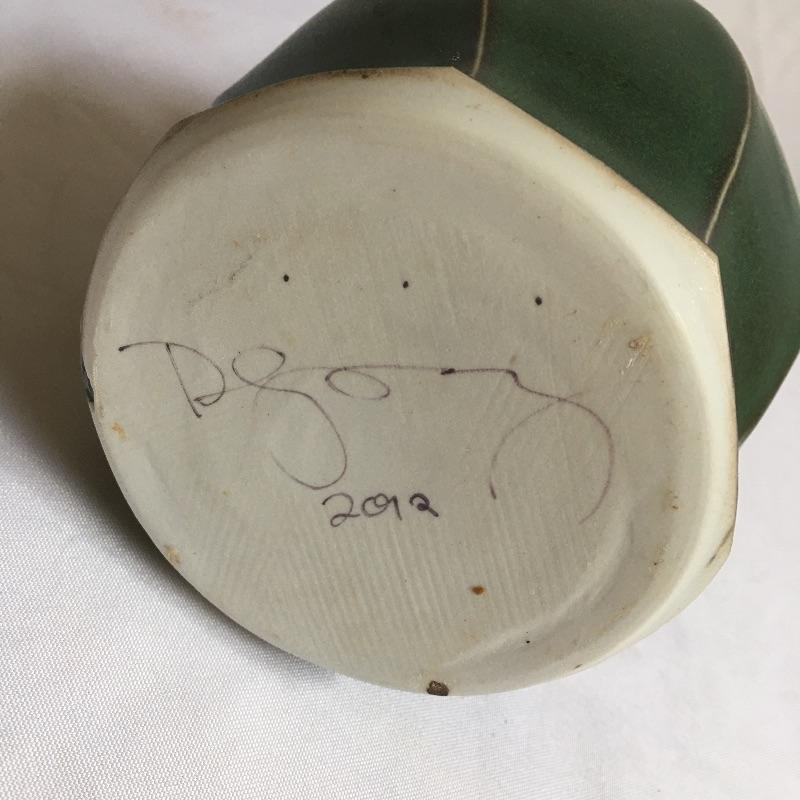 Gorgeous signed pottery vase that is dated 2012 with illegible artist signature. Wish we could make out who this artist is as it is a special piece. This unique dark green green vase is sure to add some color and style to your home. Vase measures 4”D x 7.75” tall. Shipping Available