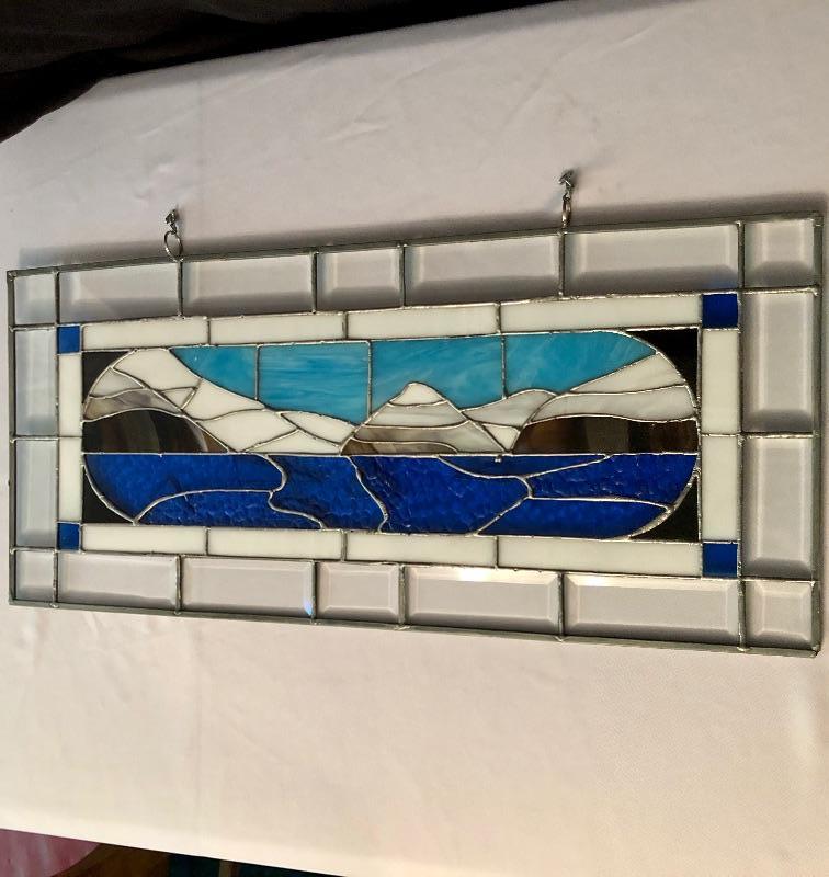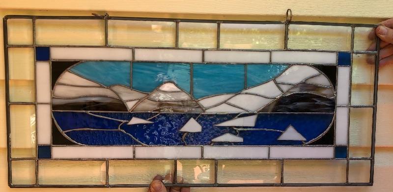 Lot 99 - Snowy Mountain Stained Glass Panel