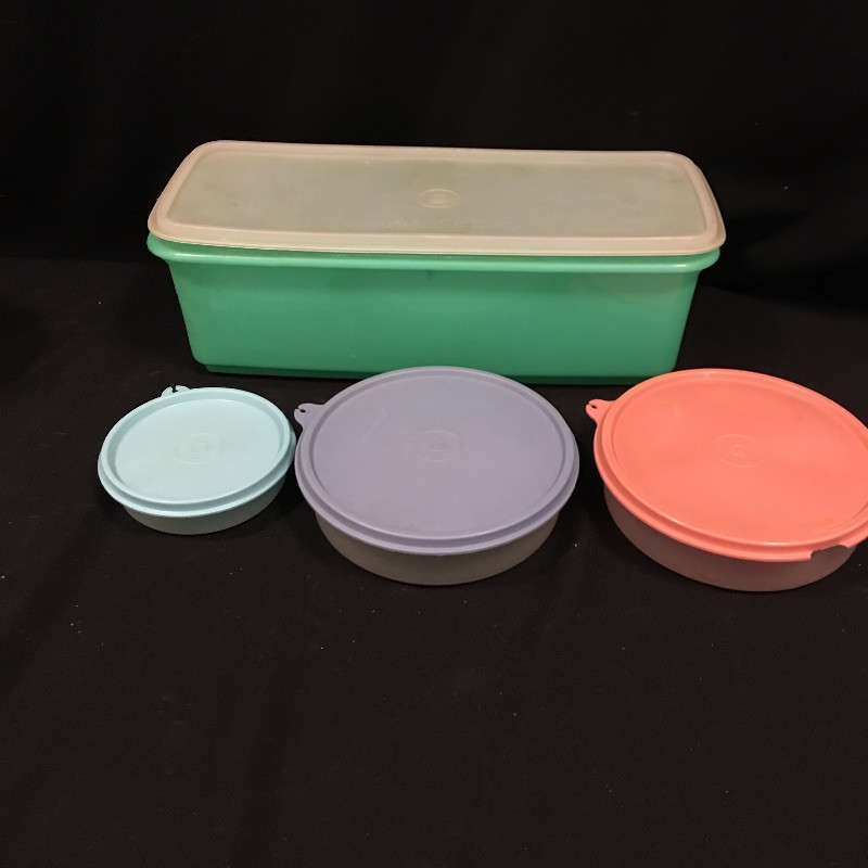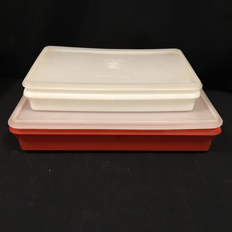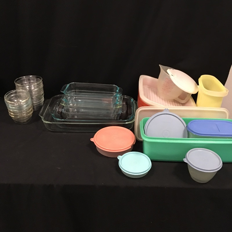 Large assortment of Tupperware and Pyrex and other glass bakeware. Be ready for many of your baking and cooking and storage needs needs with this variety of Bakeware and Tupperware.