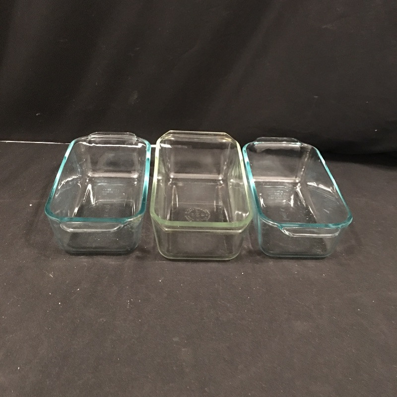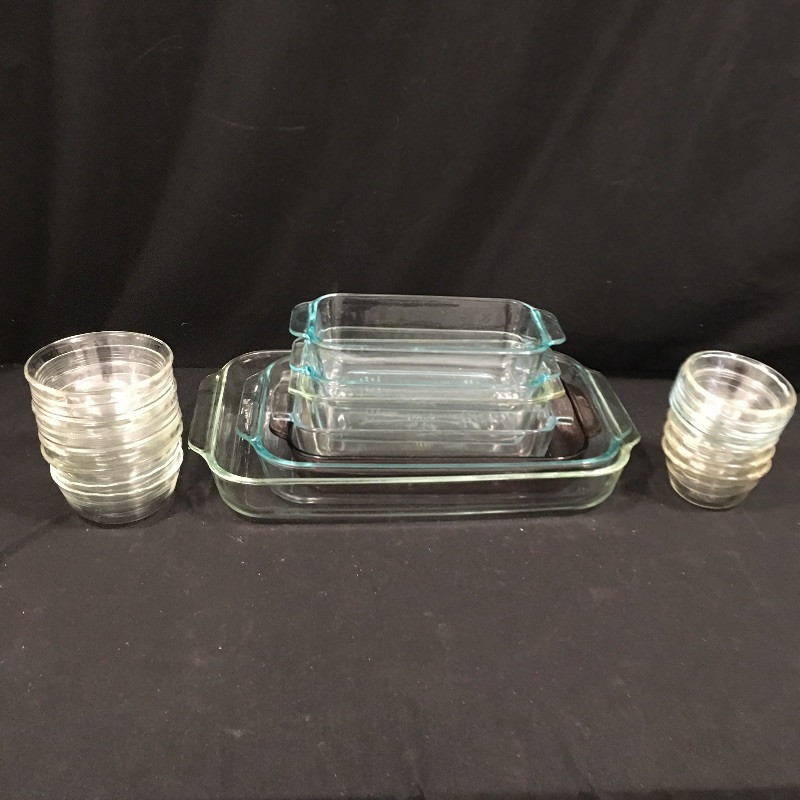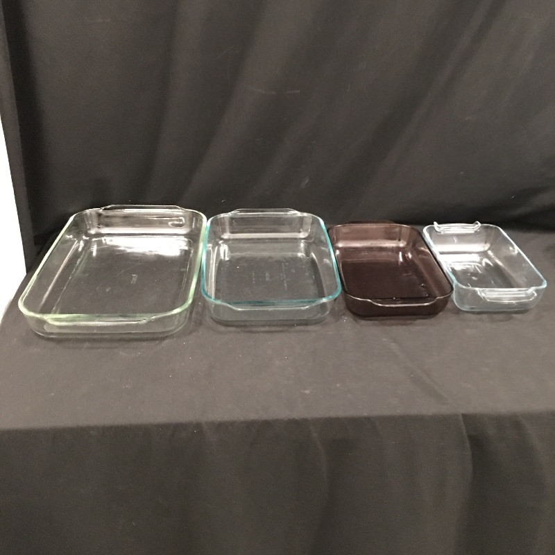 Largest Pyrex dish measures 10.75” x 16” x 2.25”. Local Pickup Only.