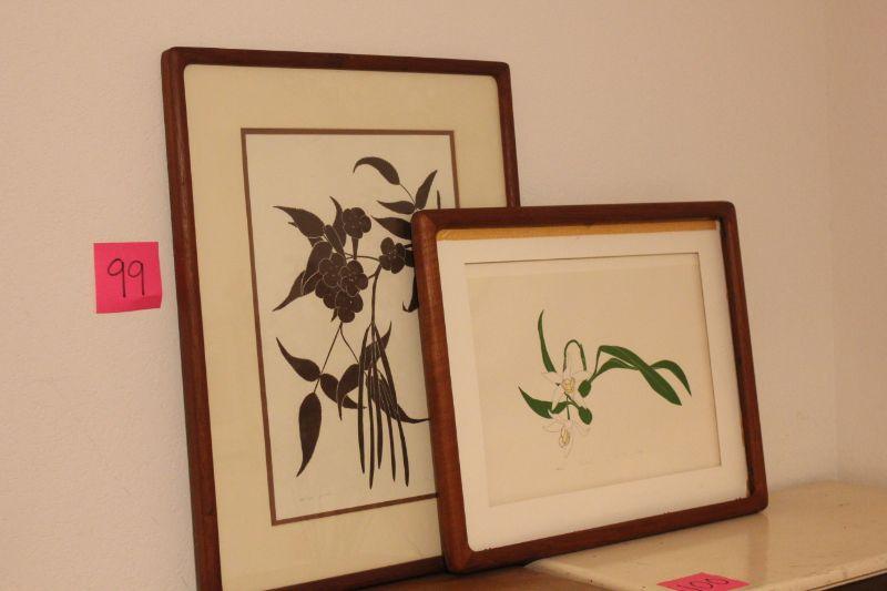 Lot 99 Two Wood Mid Century Frames with Signed Serigraphs Art