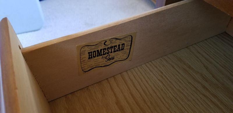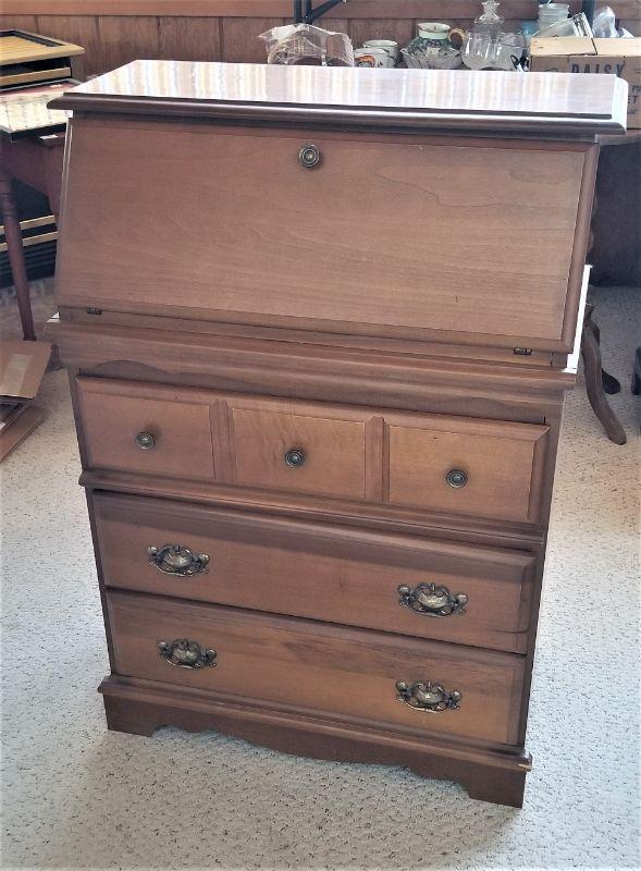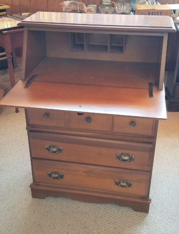 Sears "Homestead" drop leaf desk - 1970's - doubles as a chest of drawers - good vintage condition, 30" wide, 16" deep, 41" tall. A versatile piece of furniture.