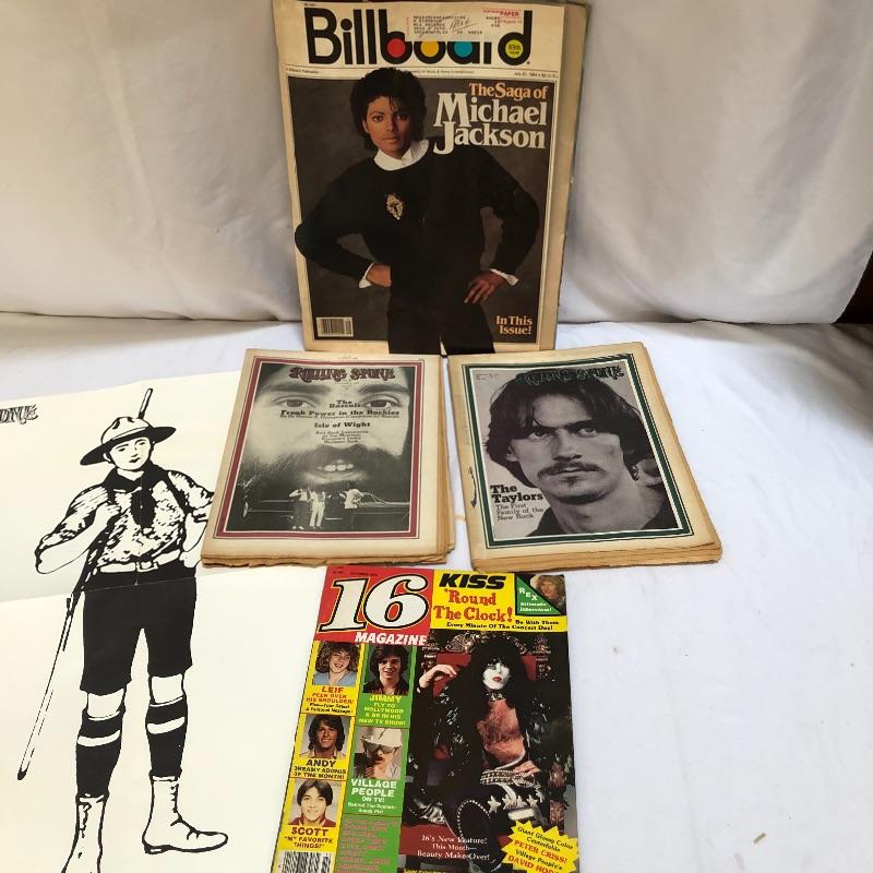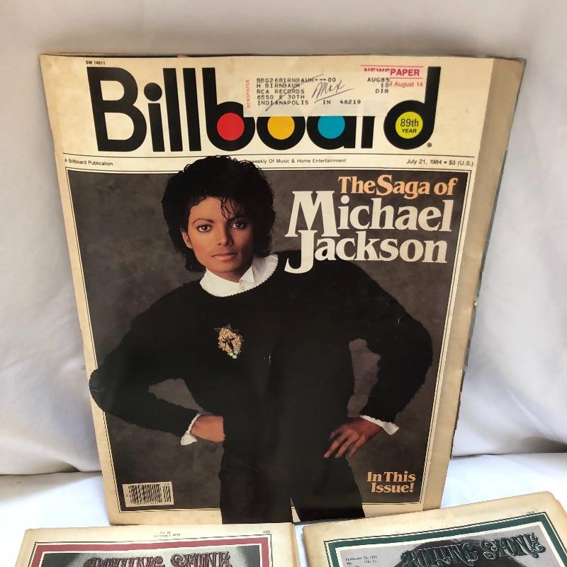 This great vintage lot includes a 1984 Billboard magazine featuring Michael Jackson that is in great condition. Lot also includes two Rolling Stones magazines from 1970 and 1971 and more.