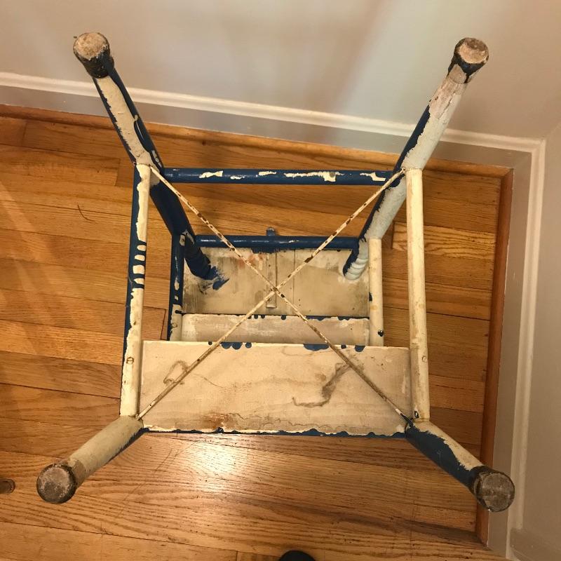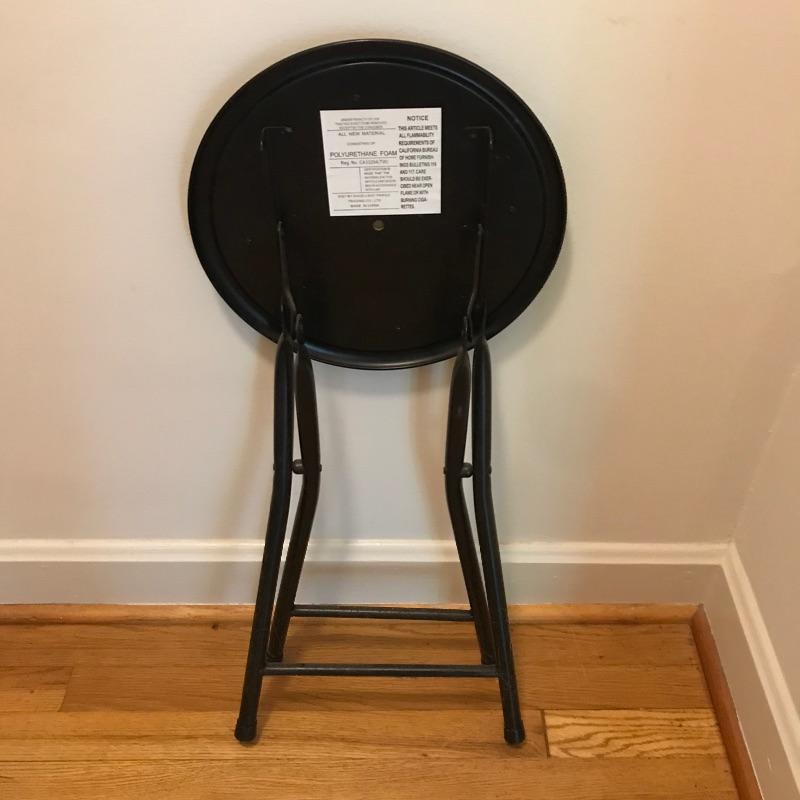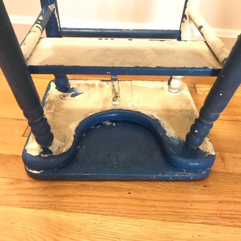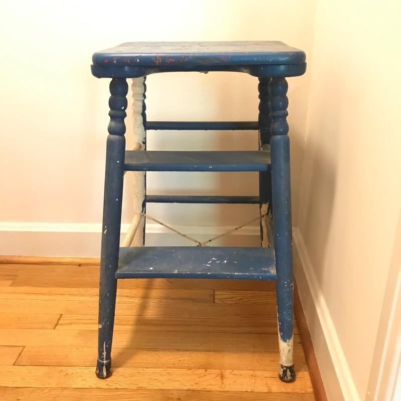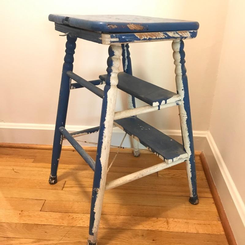 Four seats perfect for shop, basement or garage. For those artistic people out there... this lot has a lot of potential for you! We have one wooden step stool that is painted blue and white; the top won't currently open. This stool measures 14.5” x 12.5” x 24”. Two vintage metal stools are very sturdy and have a lot more life to give. The last black folding stool is versatile and easy to move and store. All stools need some cleaning as they were found in the basement and garage. See photos. Local pick up only.