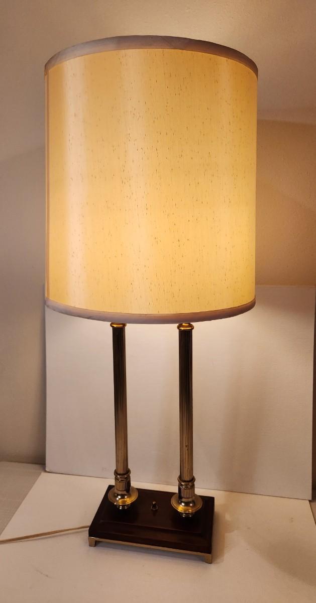 Vintage 1970's table lamp - dual column style - works. 32.5" tall, base is 9" x 5".