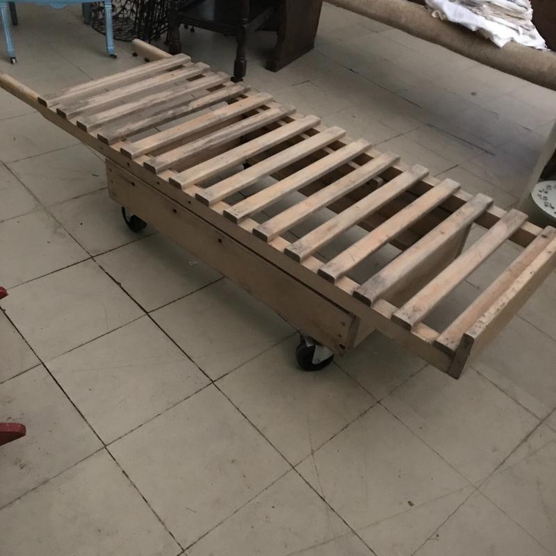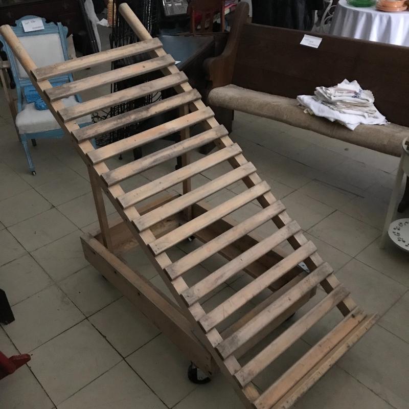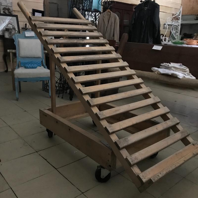 This all-wood slatted rack has metal hardware and is used for drying flowers or harvest. Also used for display of quilts or linens. Folds down for easy moving and measures 70” x 24” x 16”. When set up it stands 45” at tall end. Lot is available for local pick up only in Maggie Valley, NC.