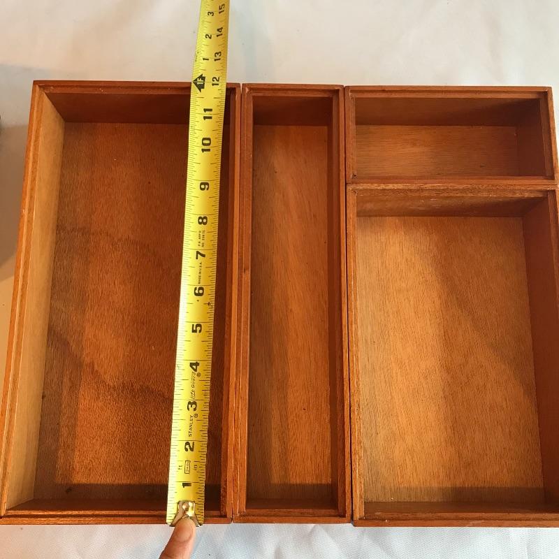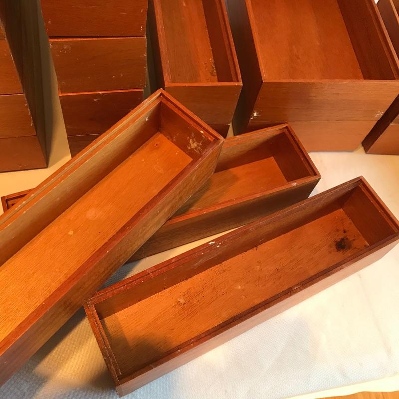 Say goodbye to all of your junk drawers! Wood and bamboo compartments to make your organizational dreams come true! Their traditional use may be kitchen or office drawers, but let’s not forget about crafts and homeschooling potential! Lot includes a traditional cutlery tray made of sturdy and handsome bamboo. Next we have a huge set of mix & match compartments. Measurements of boxes include five 6” x 12”, ten 3” x 12”, three 6” x 9” and three 3” x 6”. You may mix & match or even Tetris to your hearts content! Lastly, a pine like expandable wood tray starting at 13” x 18” and expanding to 23” x 18”. Most pieces need to be cleaned, all appear to be in great shape. Local pick up only.