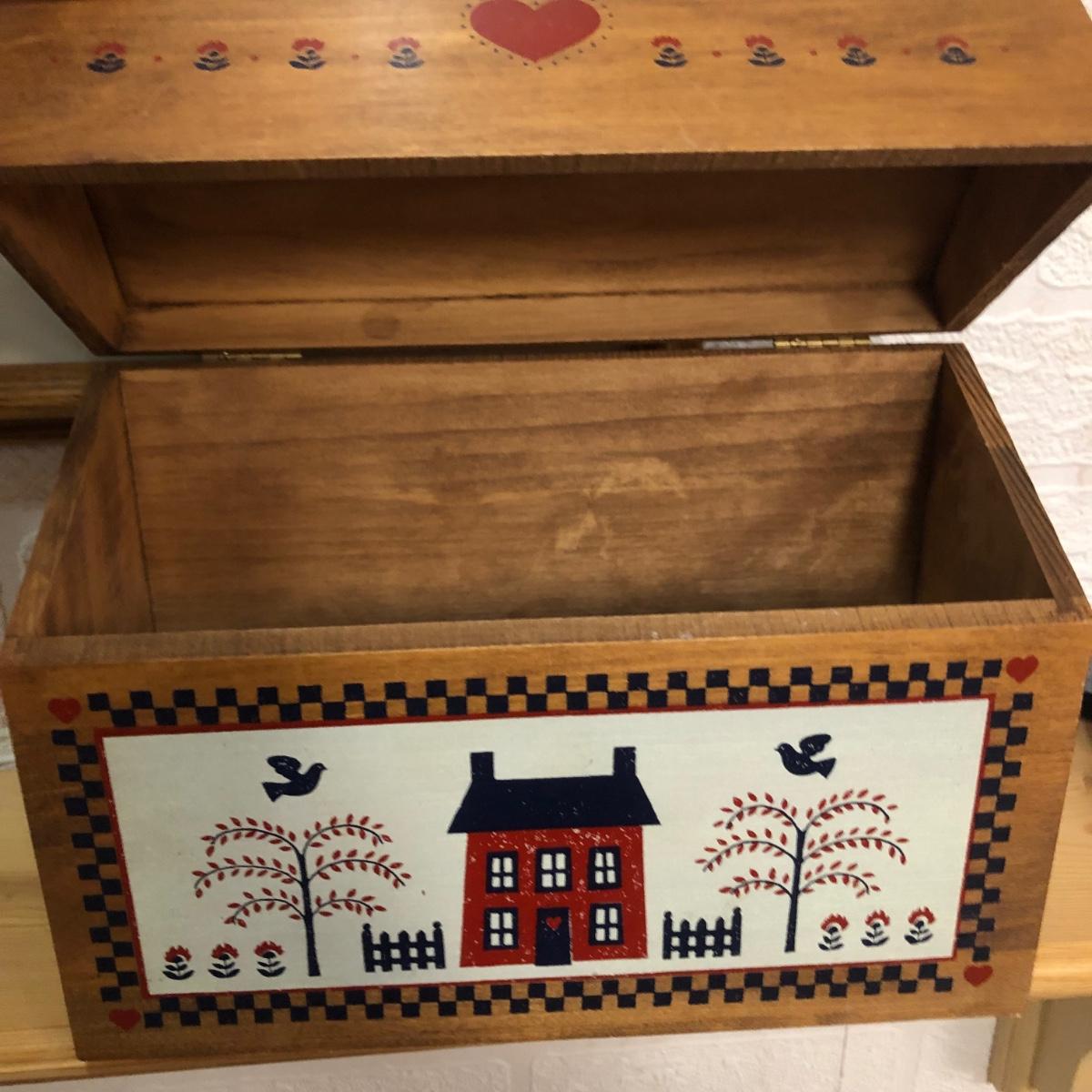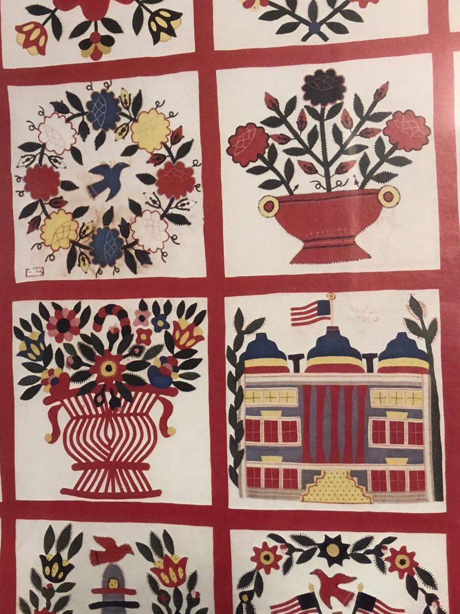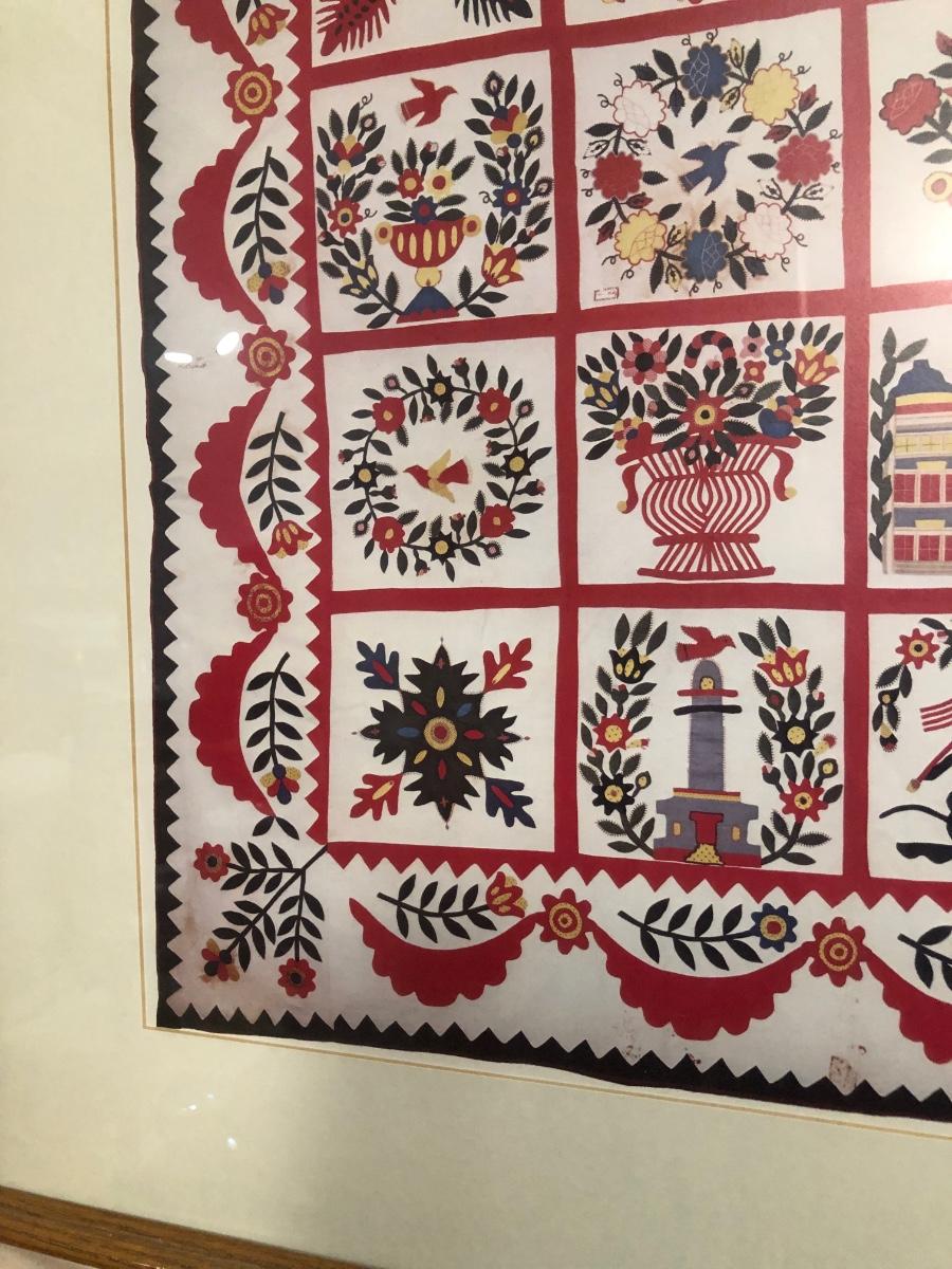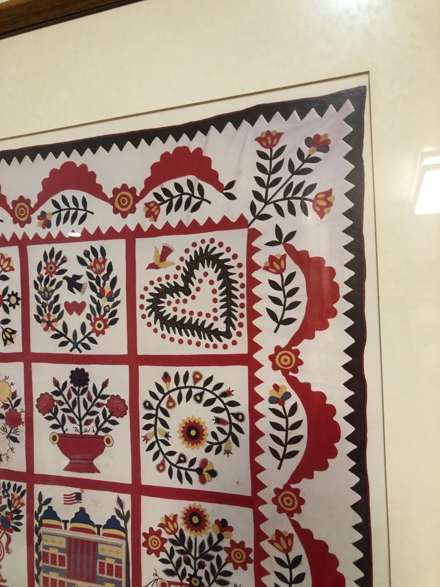 LOT 2K: Red Home Decor - Framed Baltimore Brides Quilt Print, Wooden Recipe Box & GHA Pottery Pieces