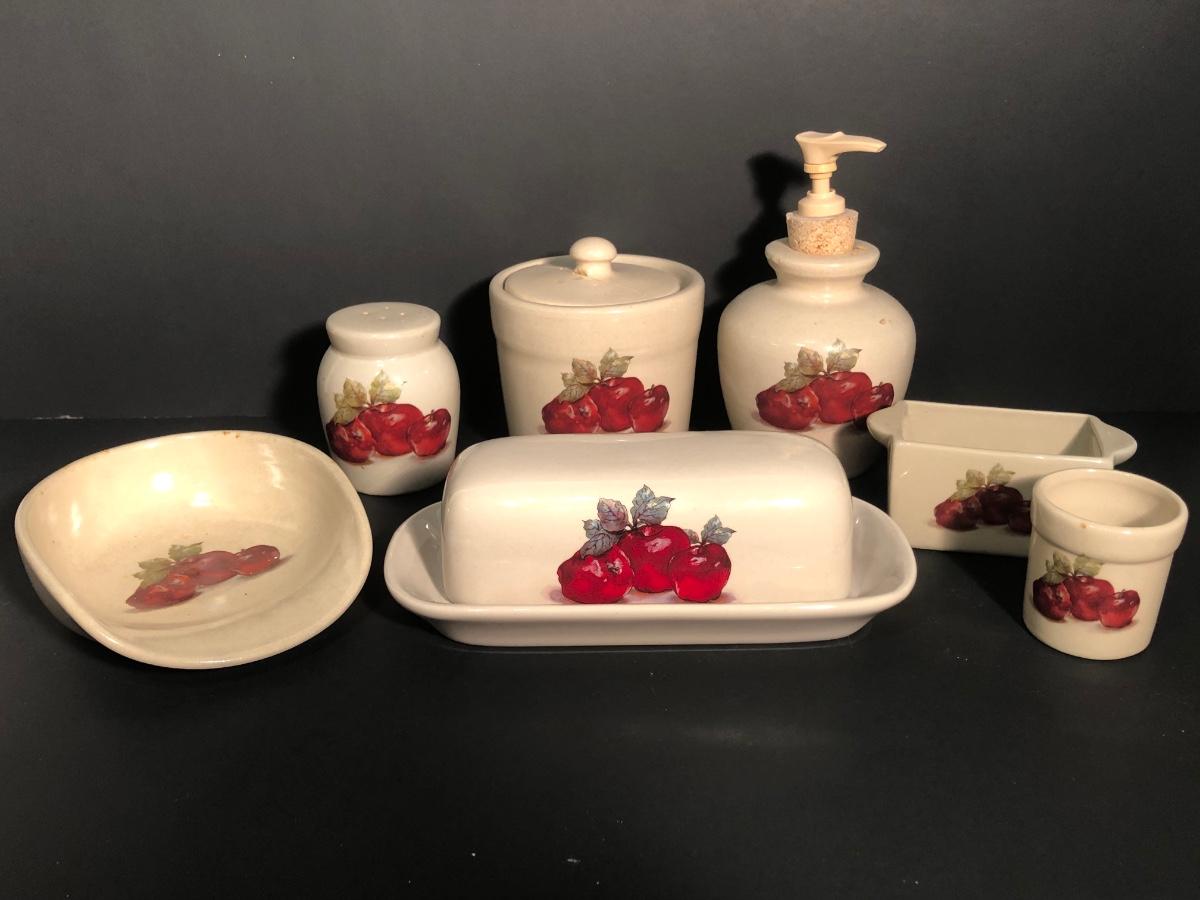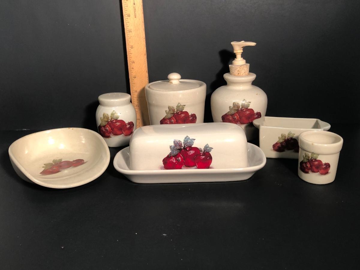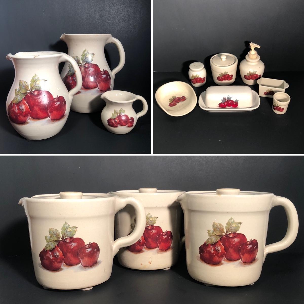 LOT 4L: Apple Themed Shaker & Thangs Pottery - Pitchers, Soap Dispenser & More