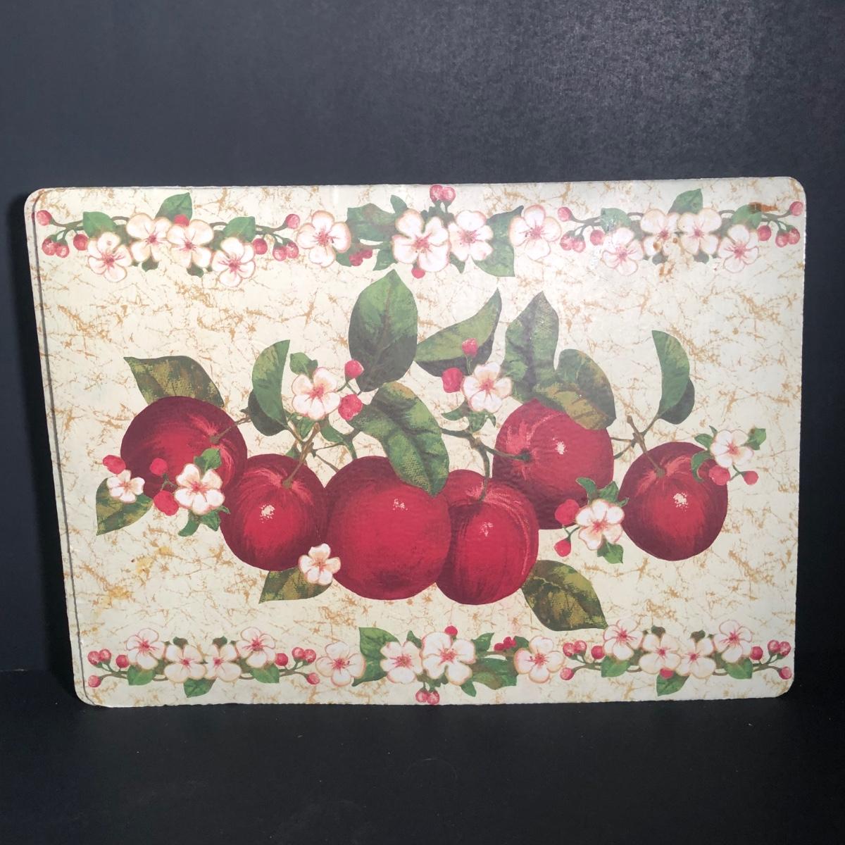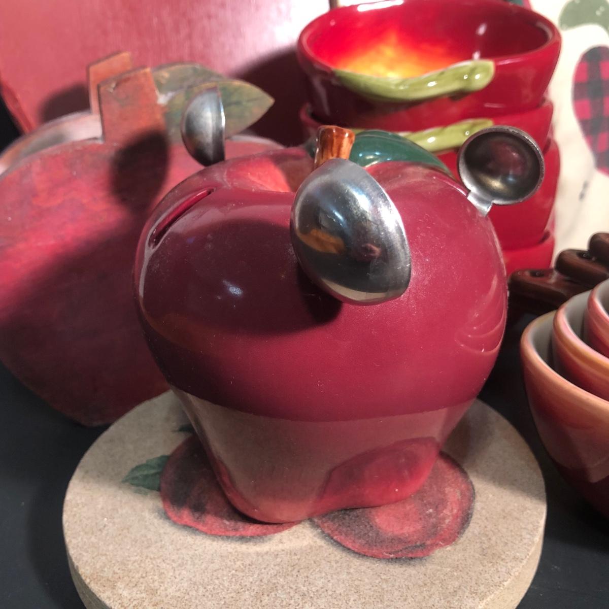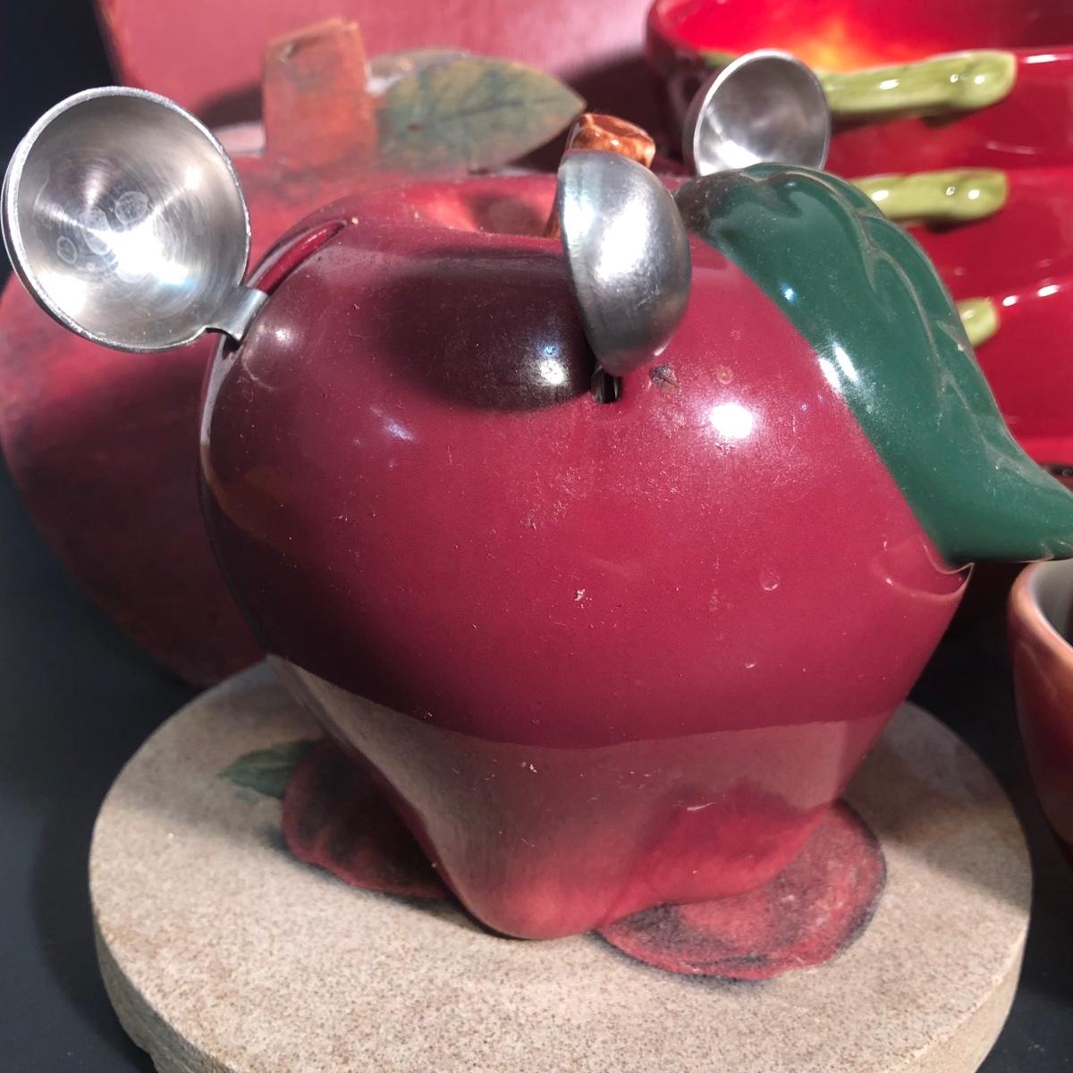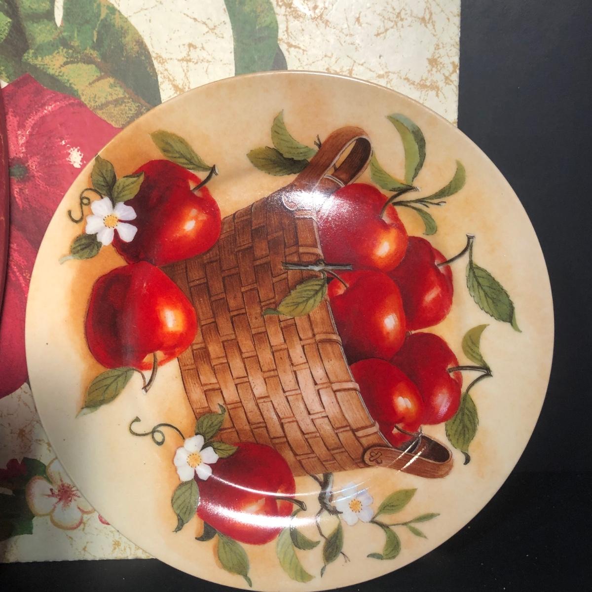 LOT 11L: Apple Themed Kitchen Collection - Placemats, Lazy Susan, Plates, Bowls, Measuring Cups & More