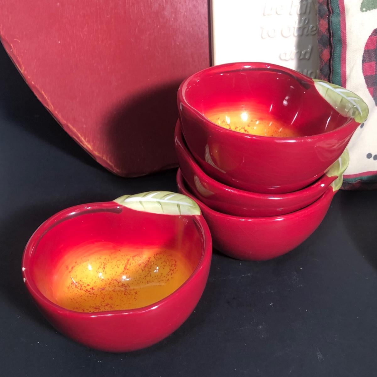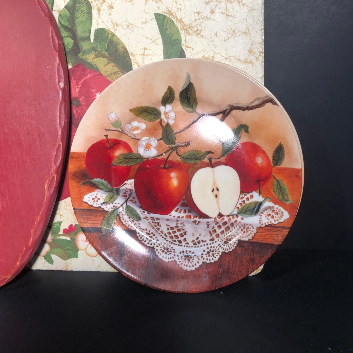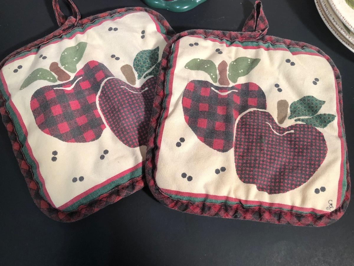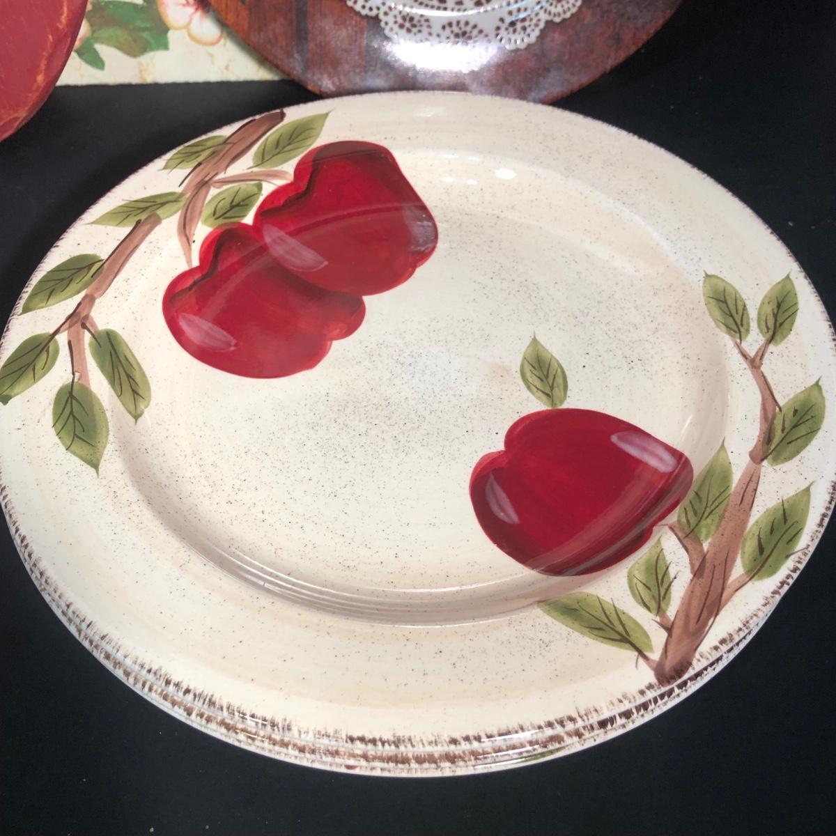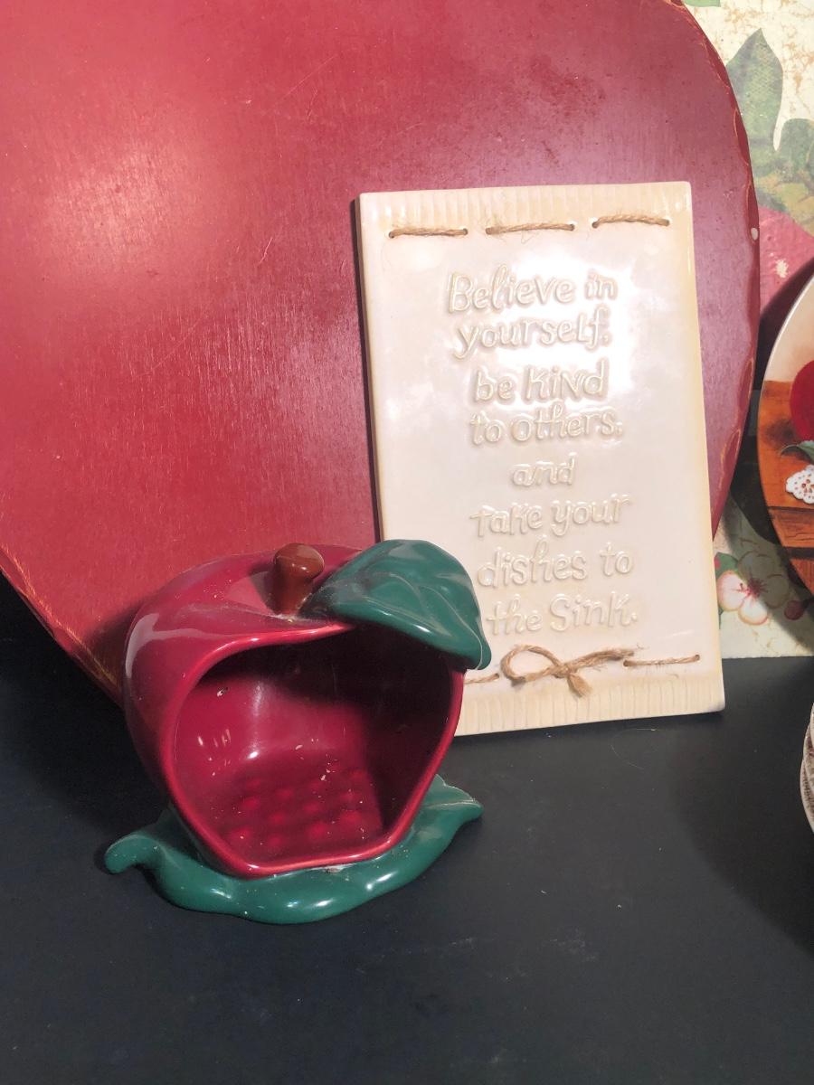 LOT 11L: Apple Themed Kitchen Collection - Placemats, Lazy Susan, Plates, Bowls, Measuring Cups & More