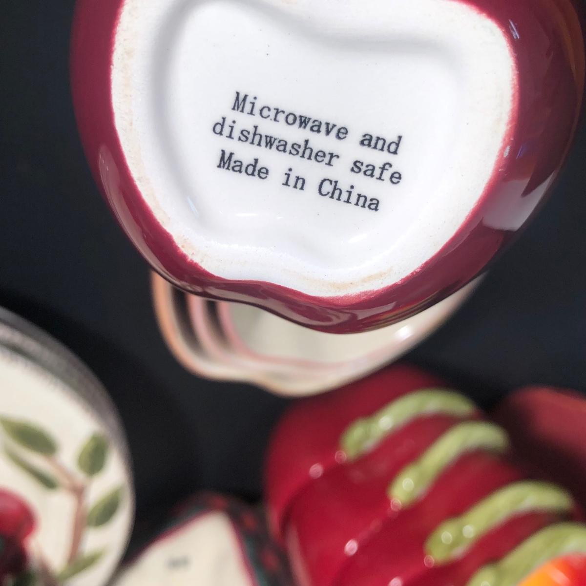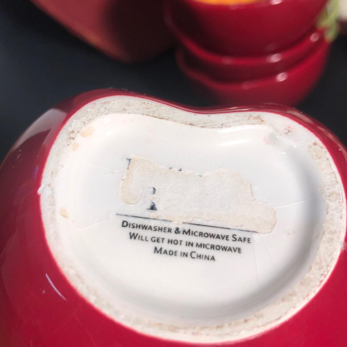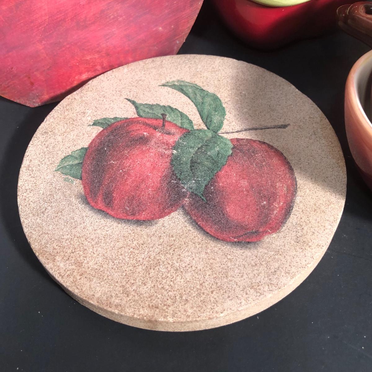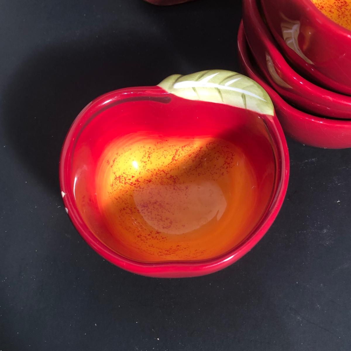 LOT 11L: Apple Themed Kitchen Collection - Placemats, Lazy Susan, Plates, Bowls, Measuring Cups & More