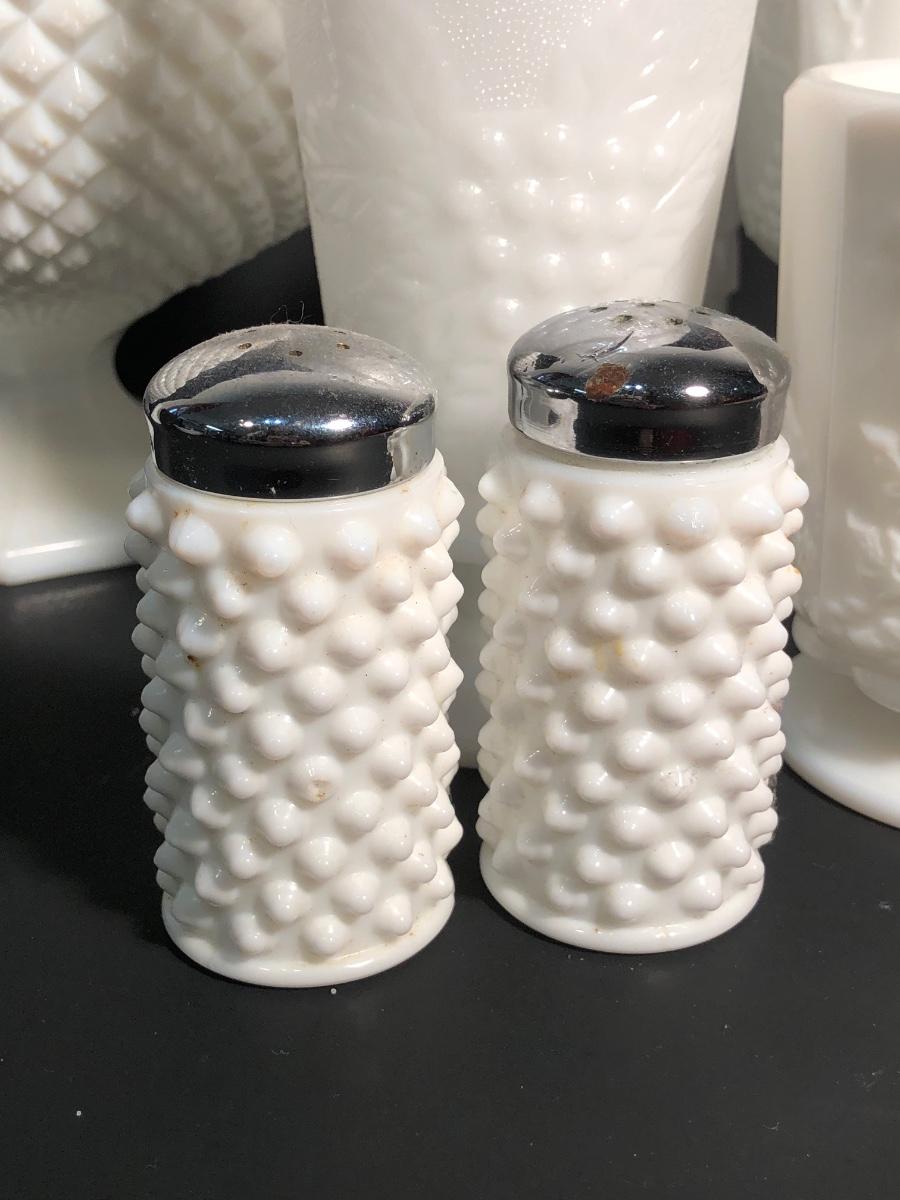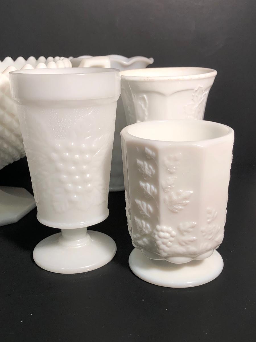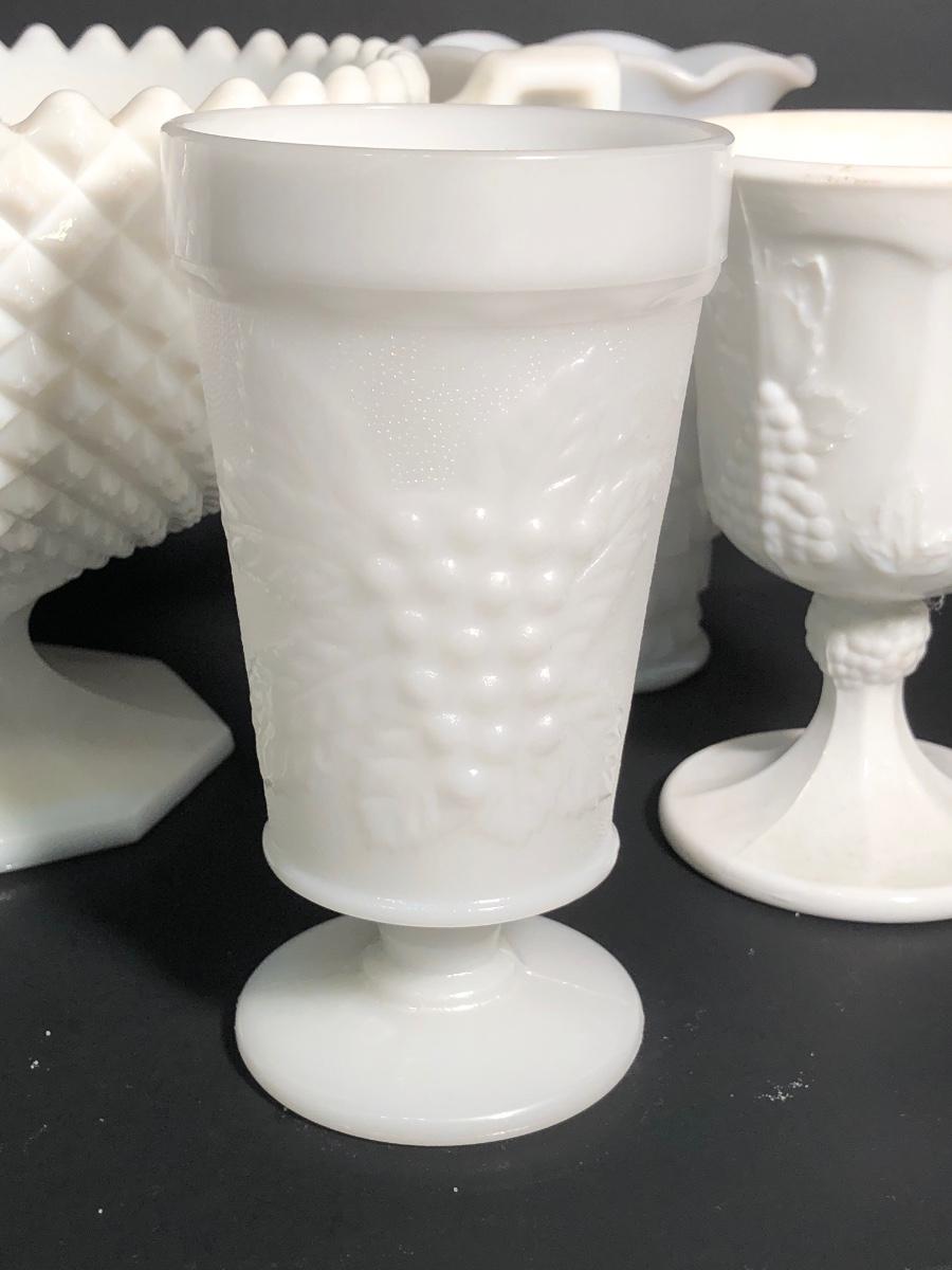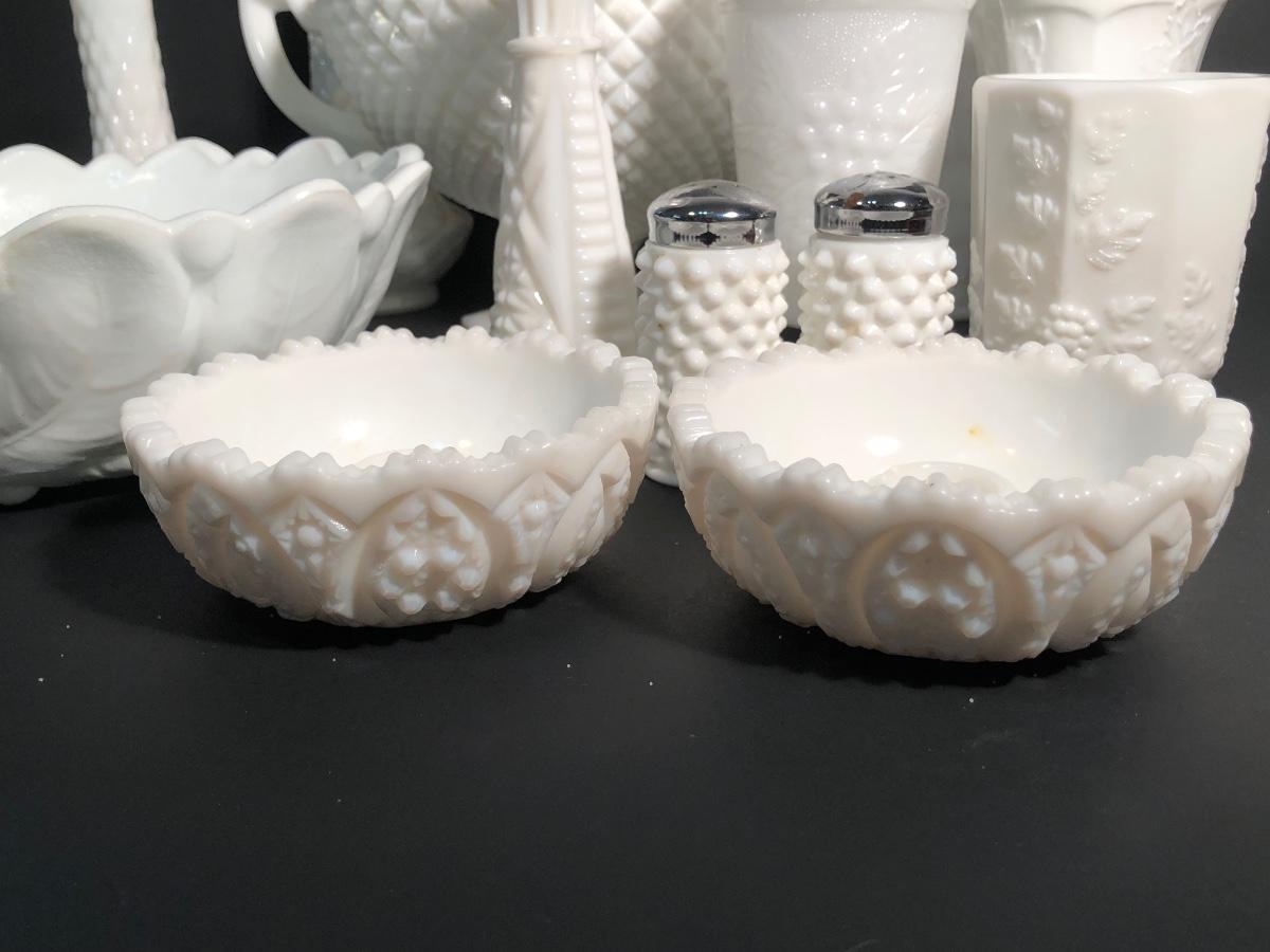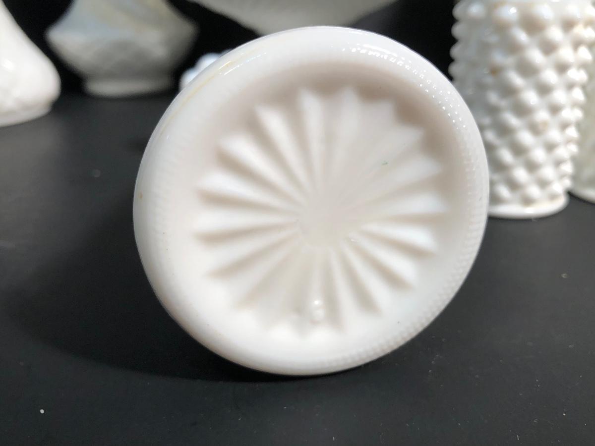 LOT 18L: Milk Glass Collection - Vases, Pedestal Bowl, Candle Holders & More