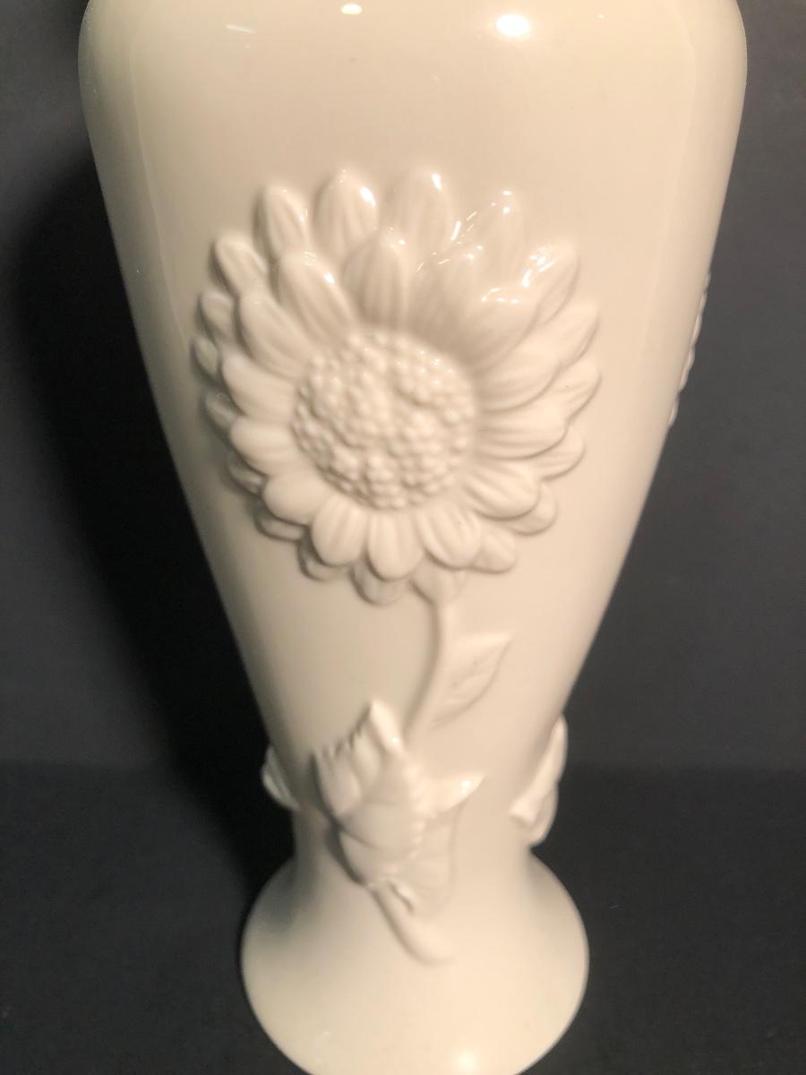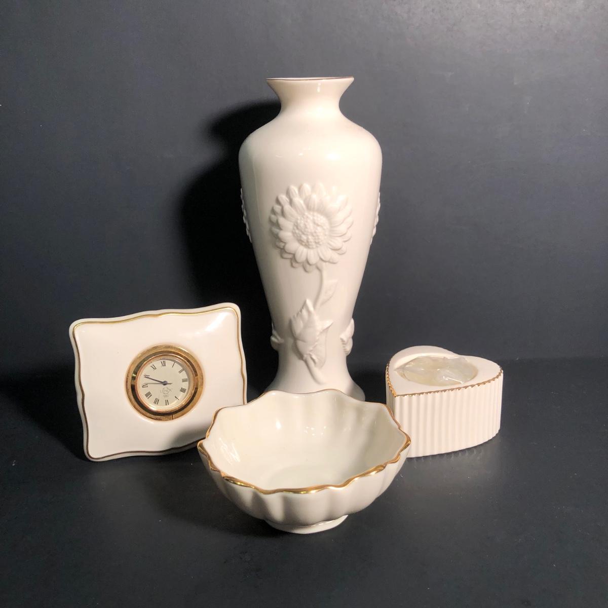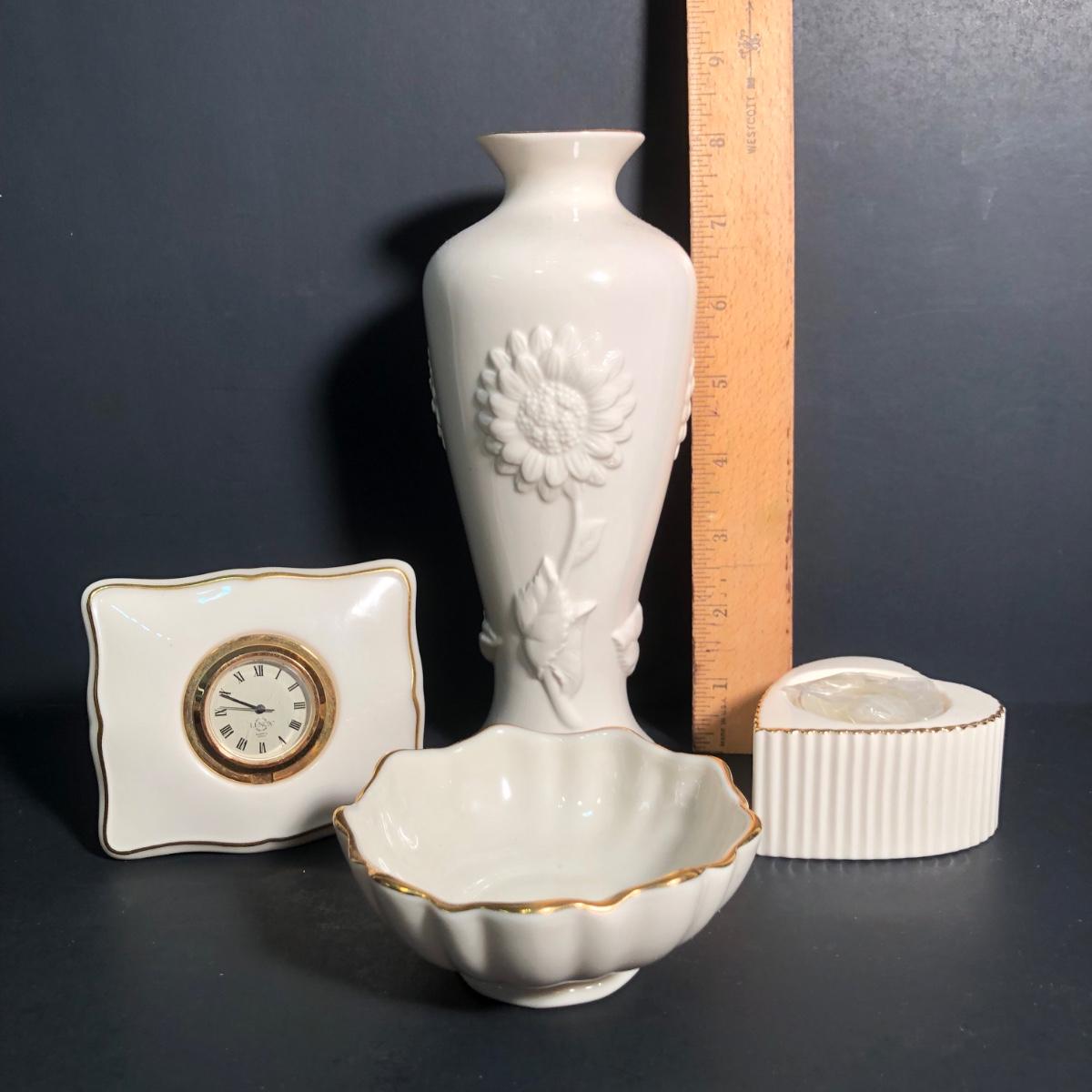 LOT 19L: Lenox Collection - Sunflower Bud Vase, Quartz Clock, Heart Votive & Scalloped Bowl