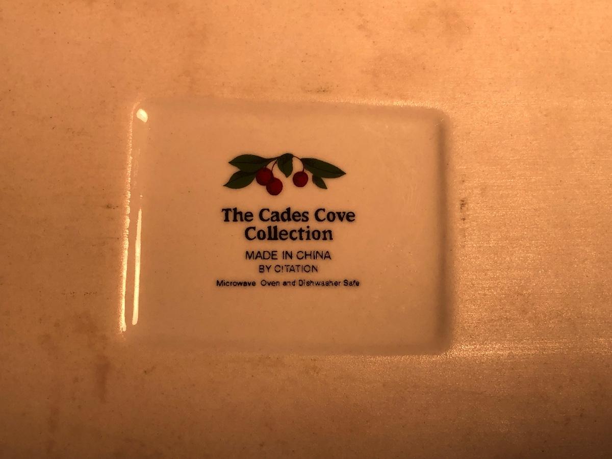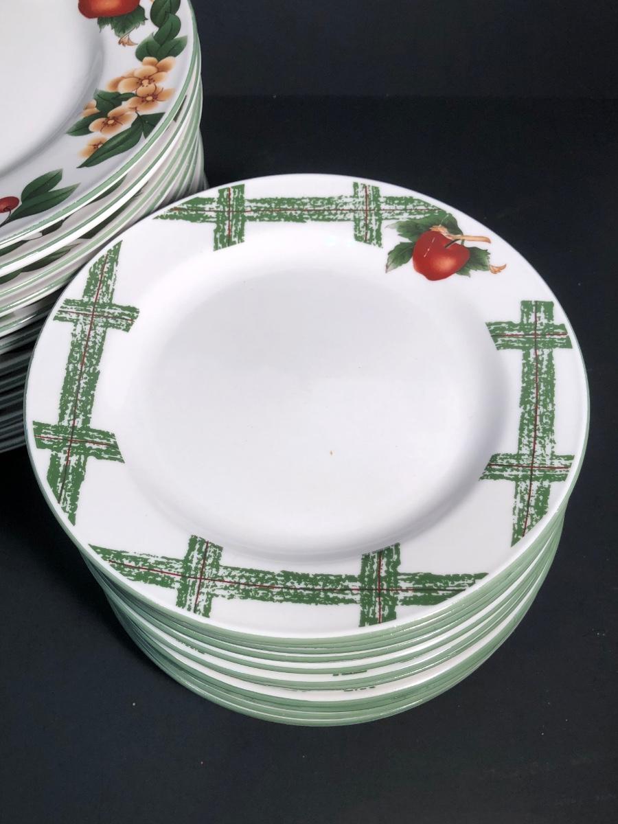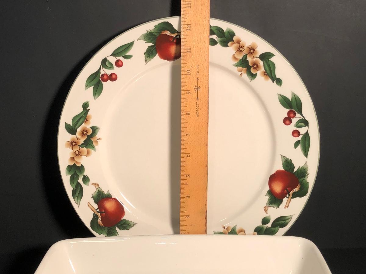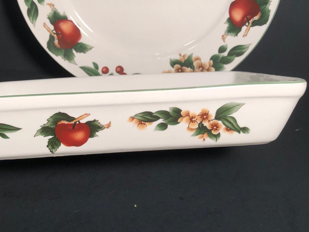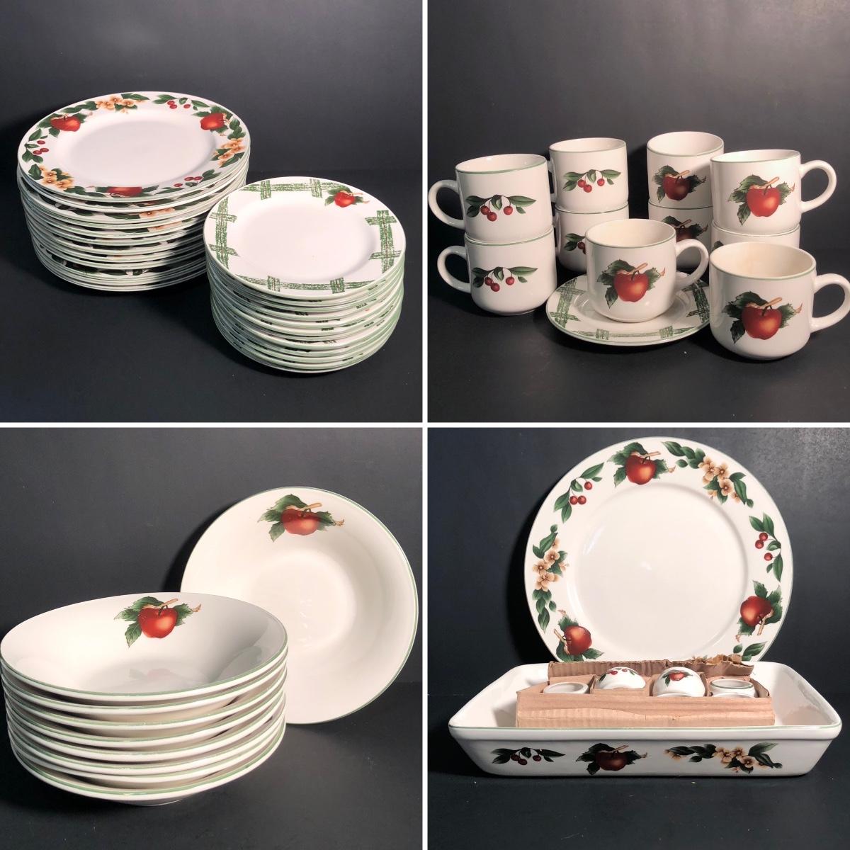 LOT 21L: The Cades Cove Collection Apple Themed Plates, Mugs, Bowls, Serving Dishes & Napkin Rings