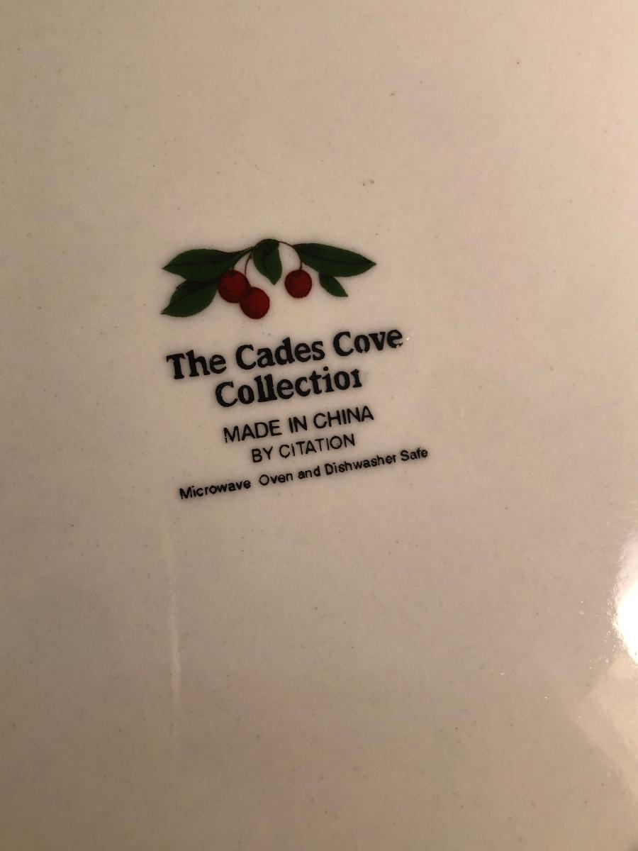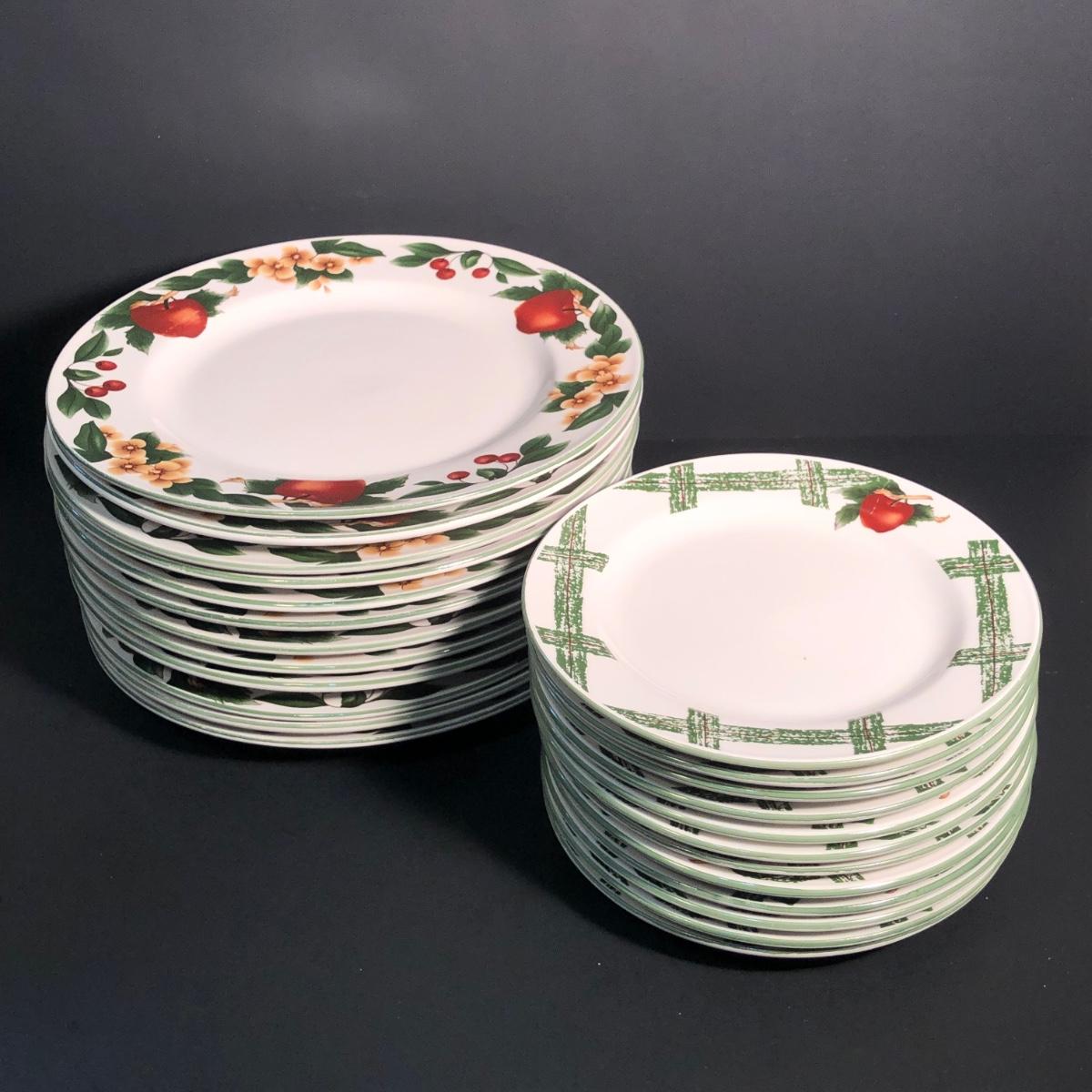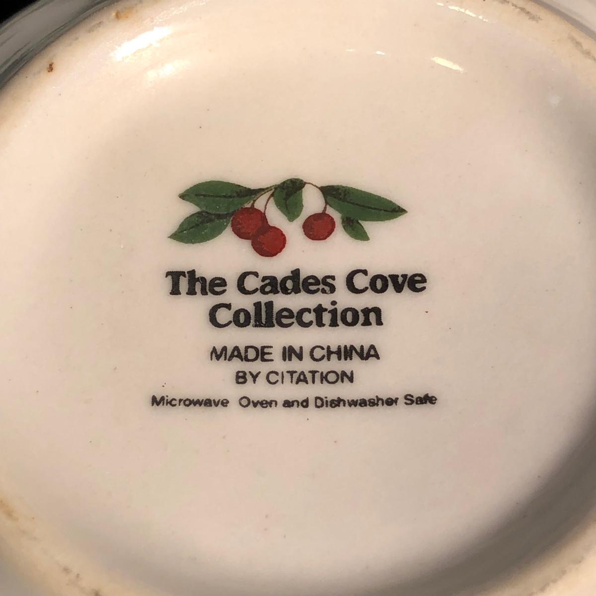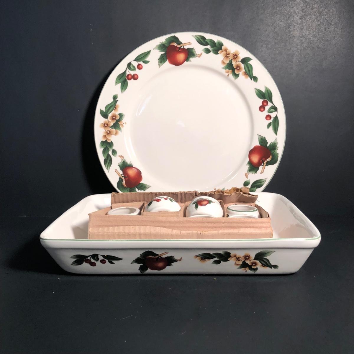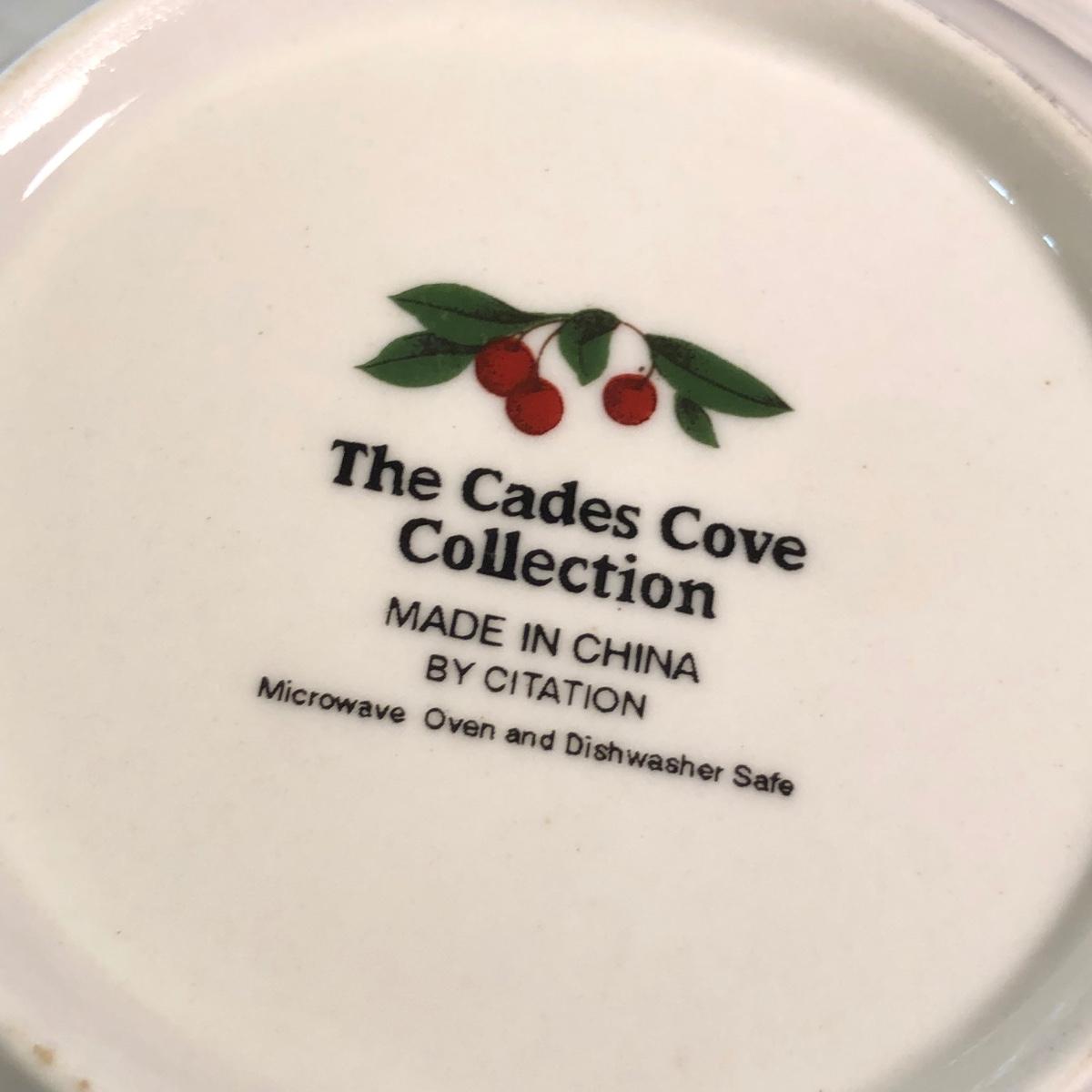 LOT 21L: The Cades Cove Collection Apple Themed Plates, Mugs, Bowls, Serving Dishes & Napkin Rings