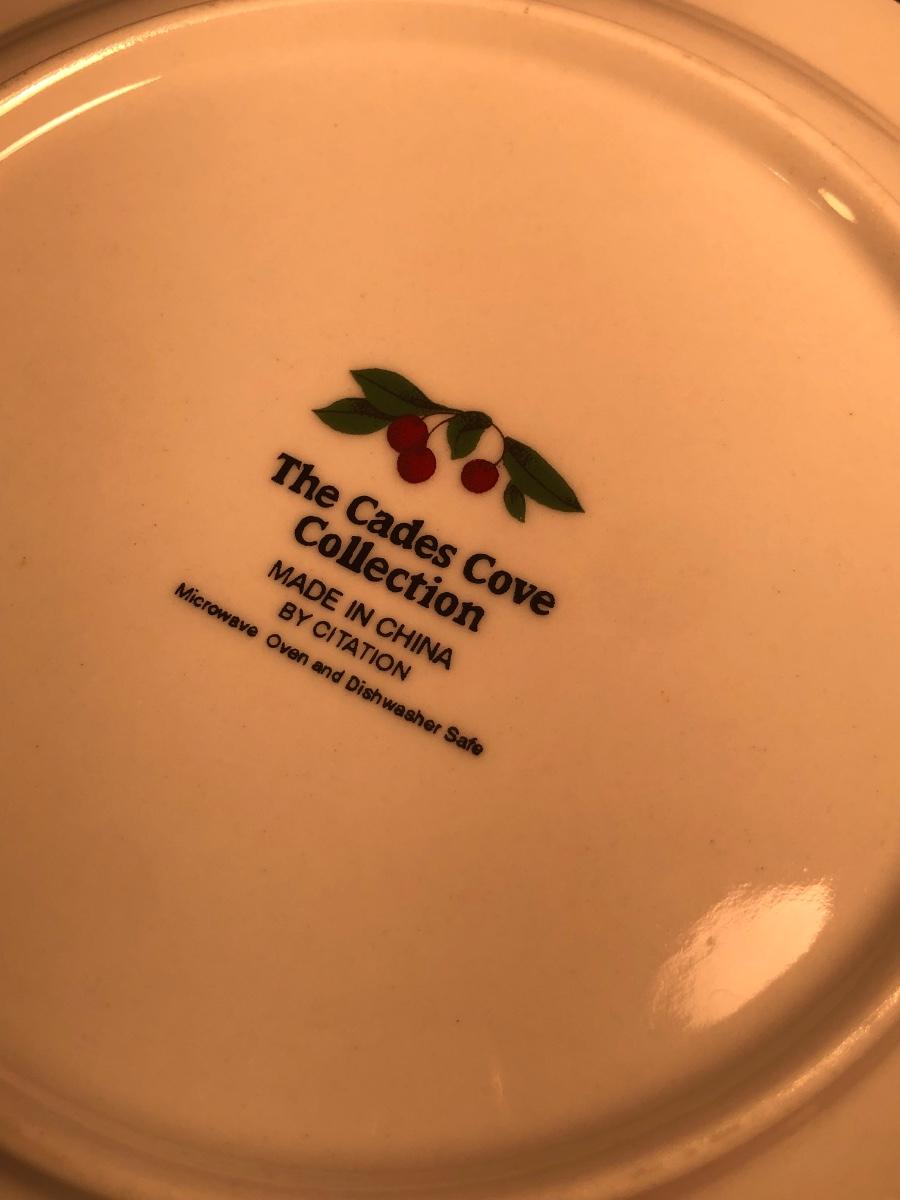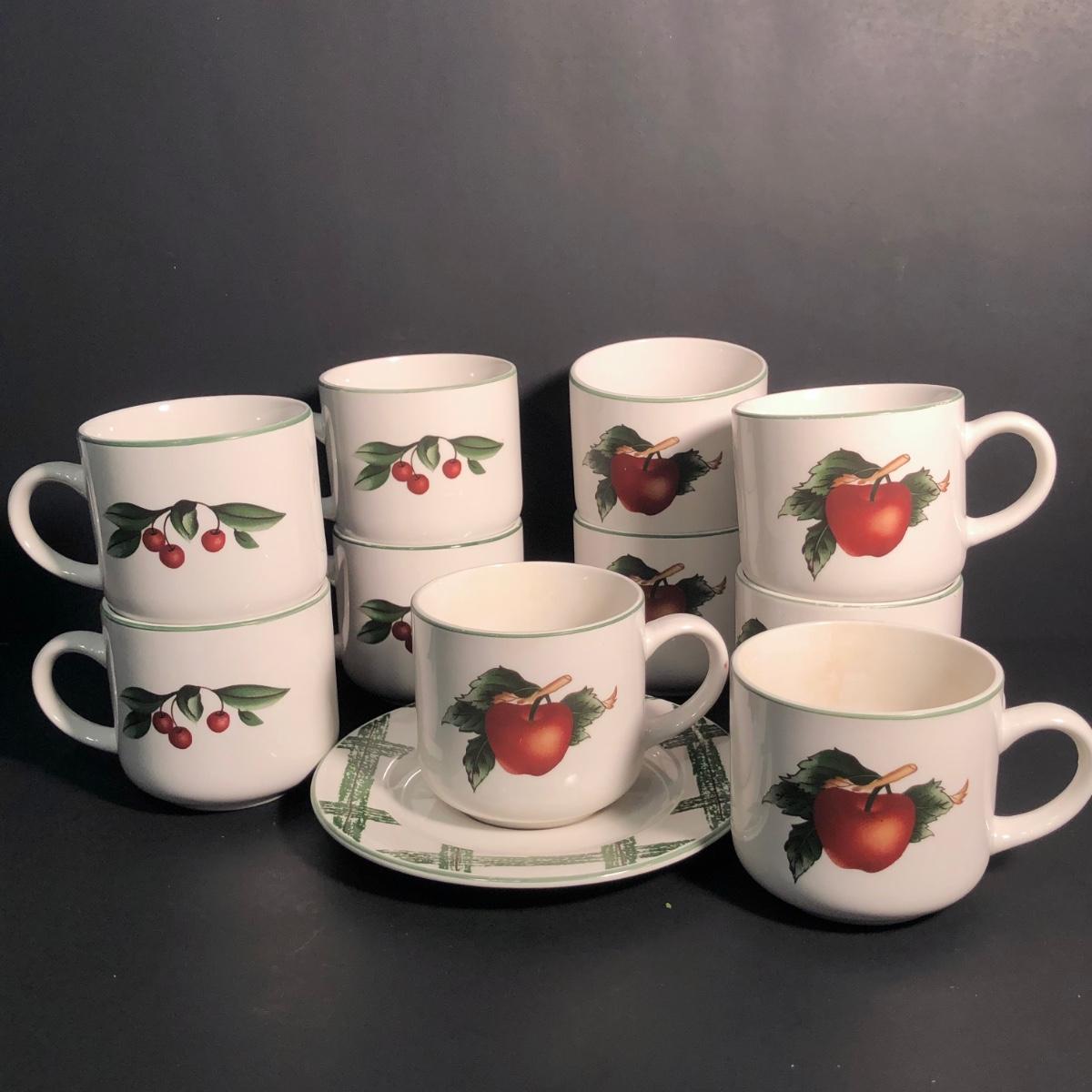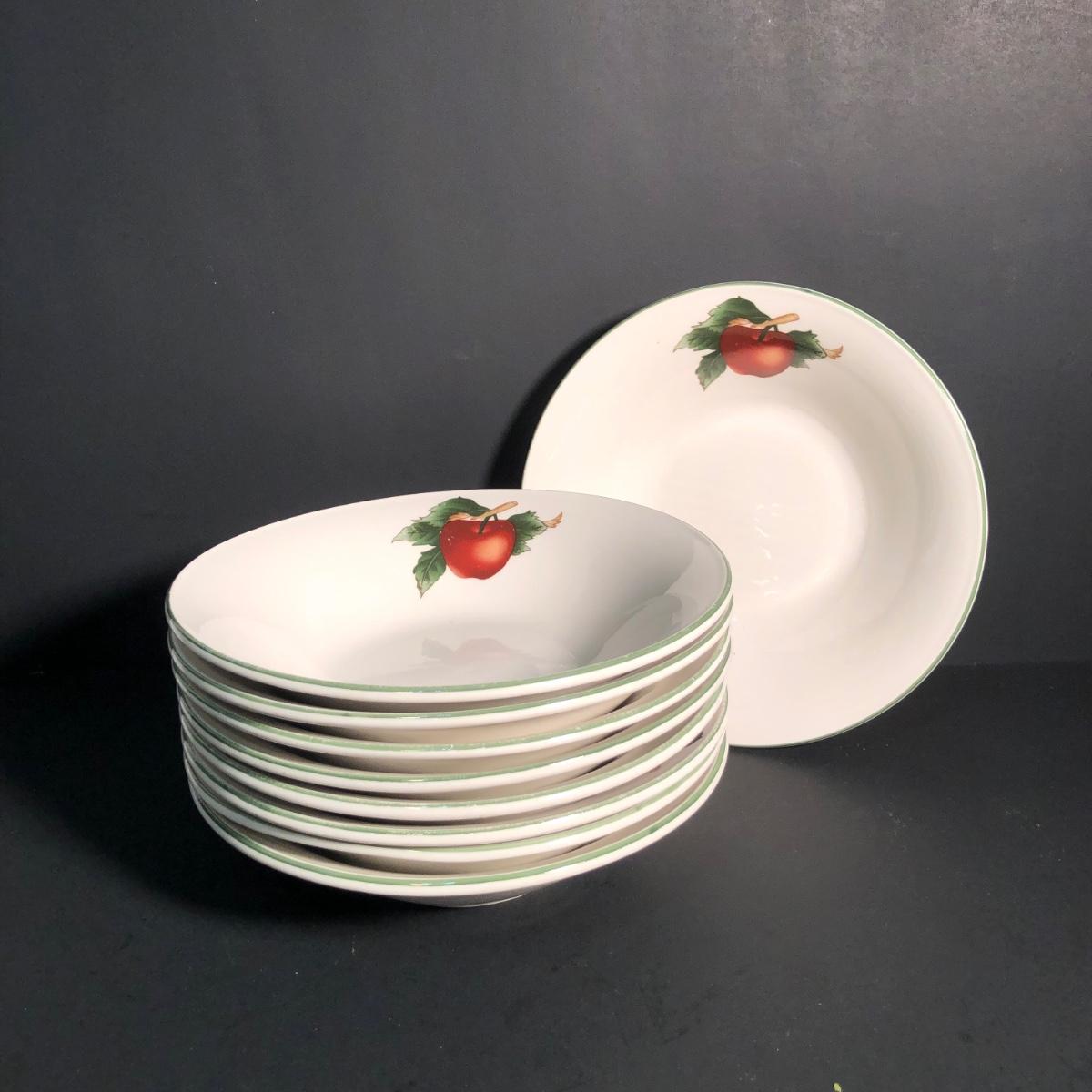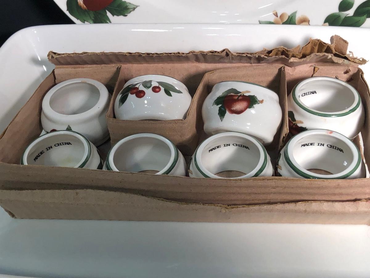 LOT 21L: The Cades Cove Collection Apple Themed Plates, Mugs, Bowls, Serving Dishes & Napkin Rings