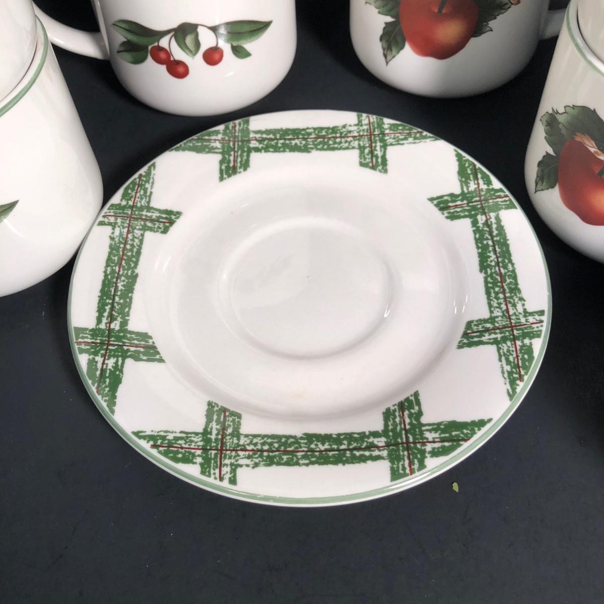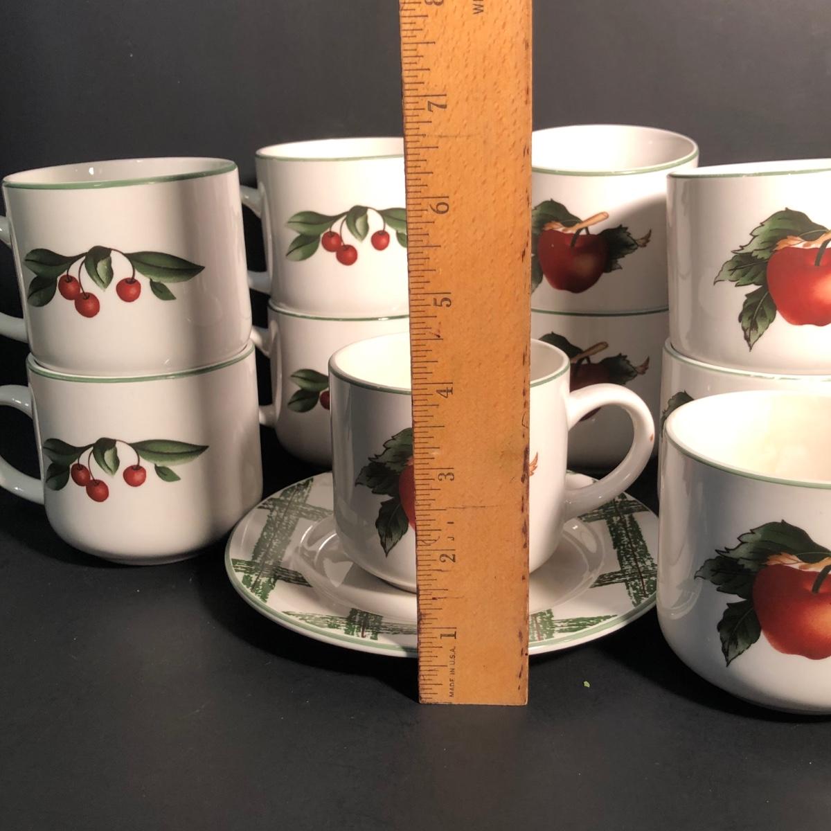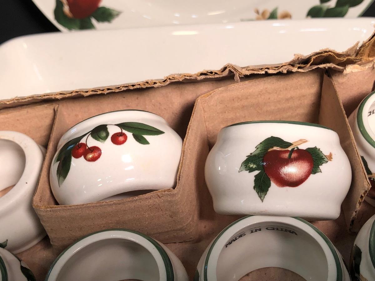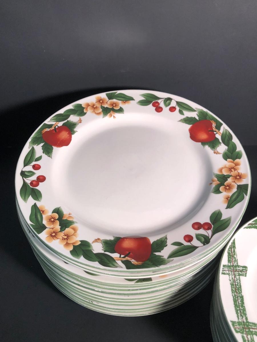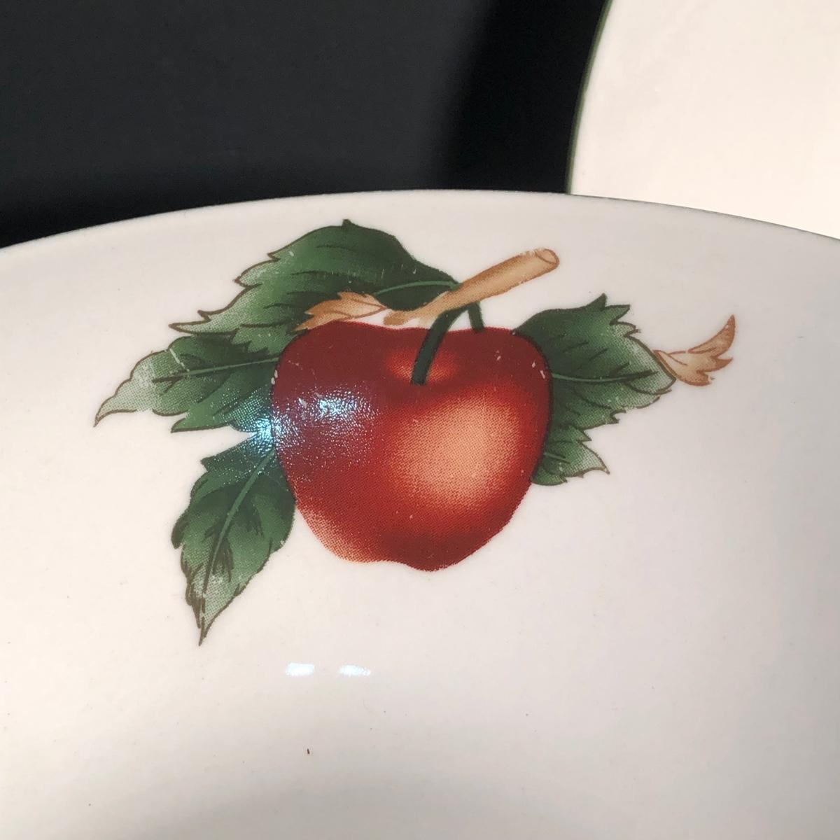 LOT 21L: The Cades Cove Collection Apple Themed Plates, Mugs, Bowls, Serving Dishes & Napkin Rings