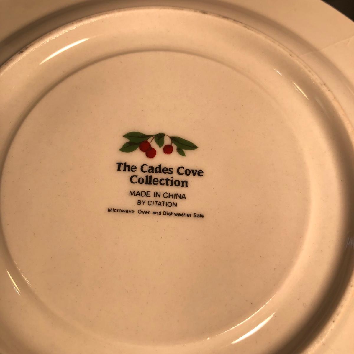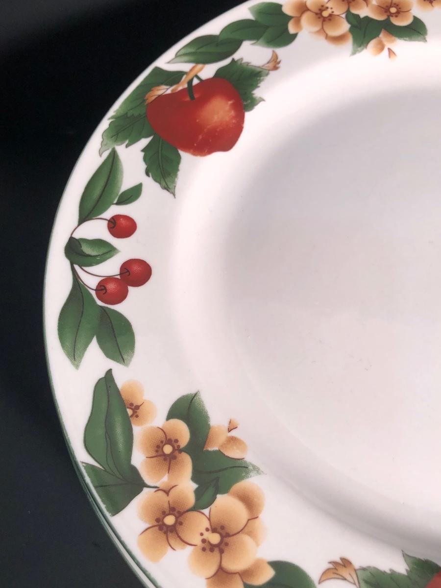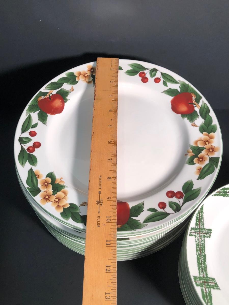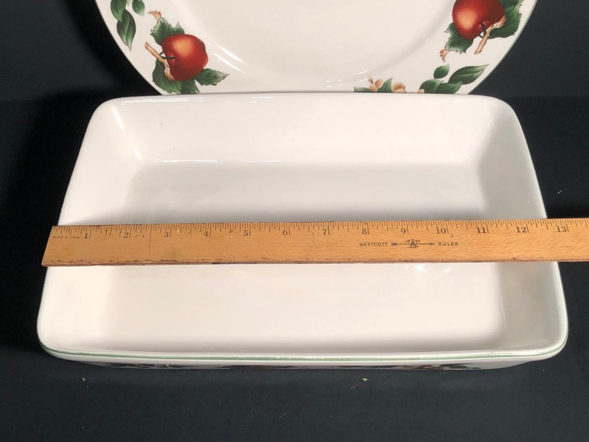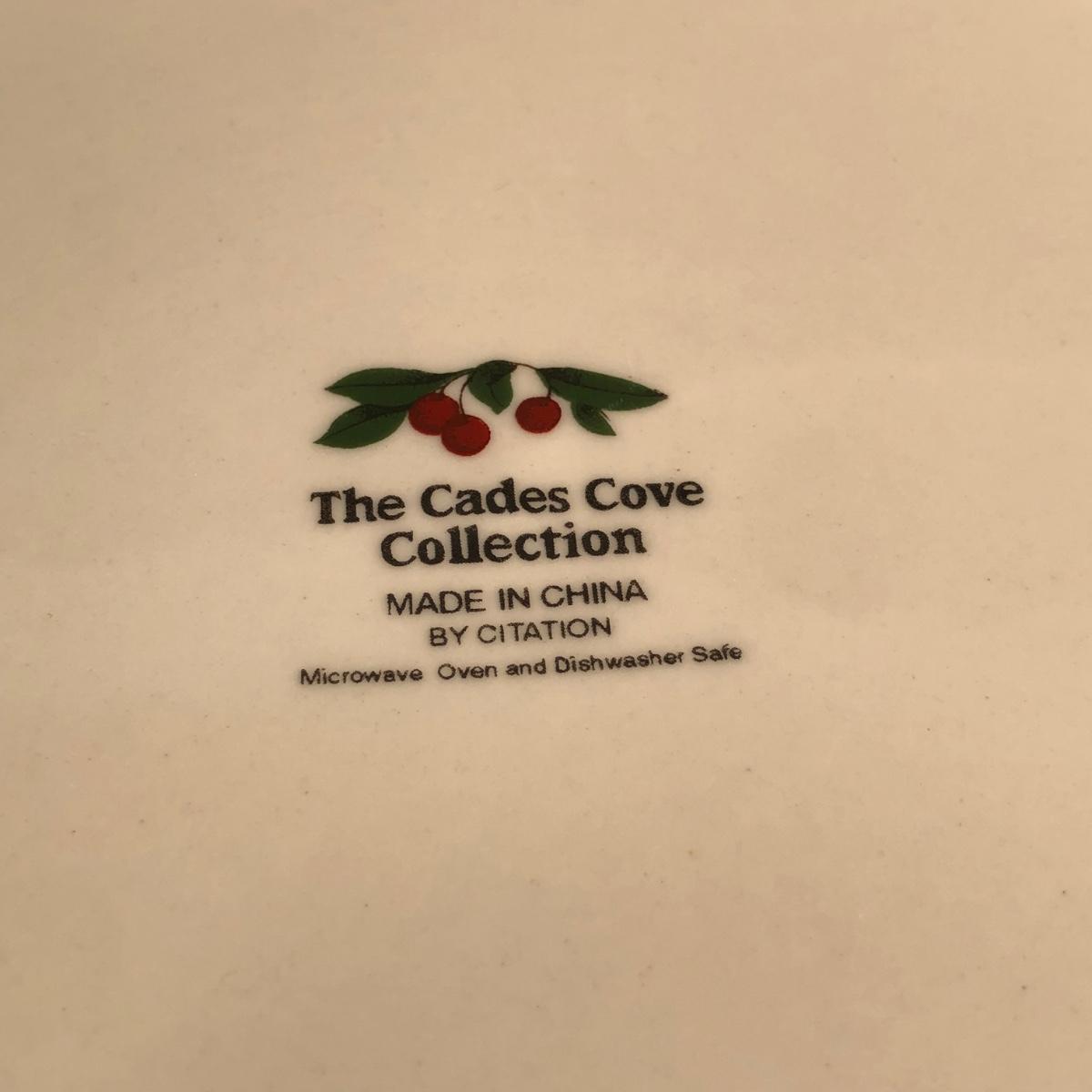 LOT 21L: The Cades Cove Collection Apple Themed Plates, Mugs, Bowls, Serving Dishes & Napkin Rings