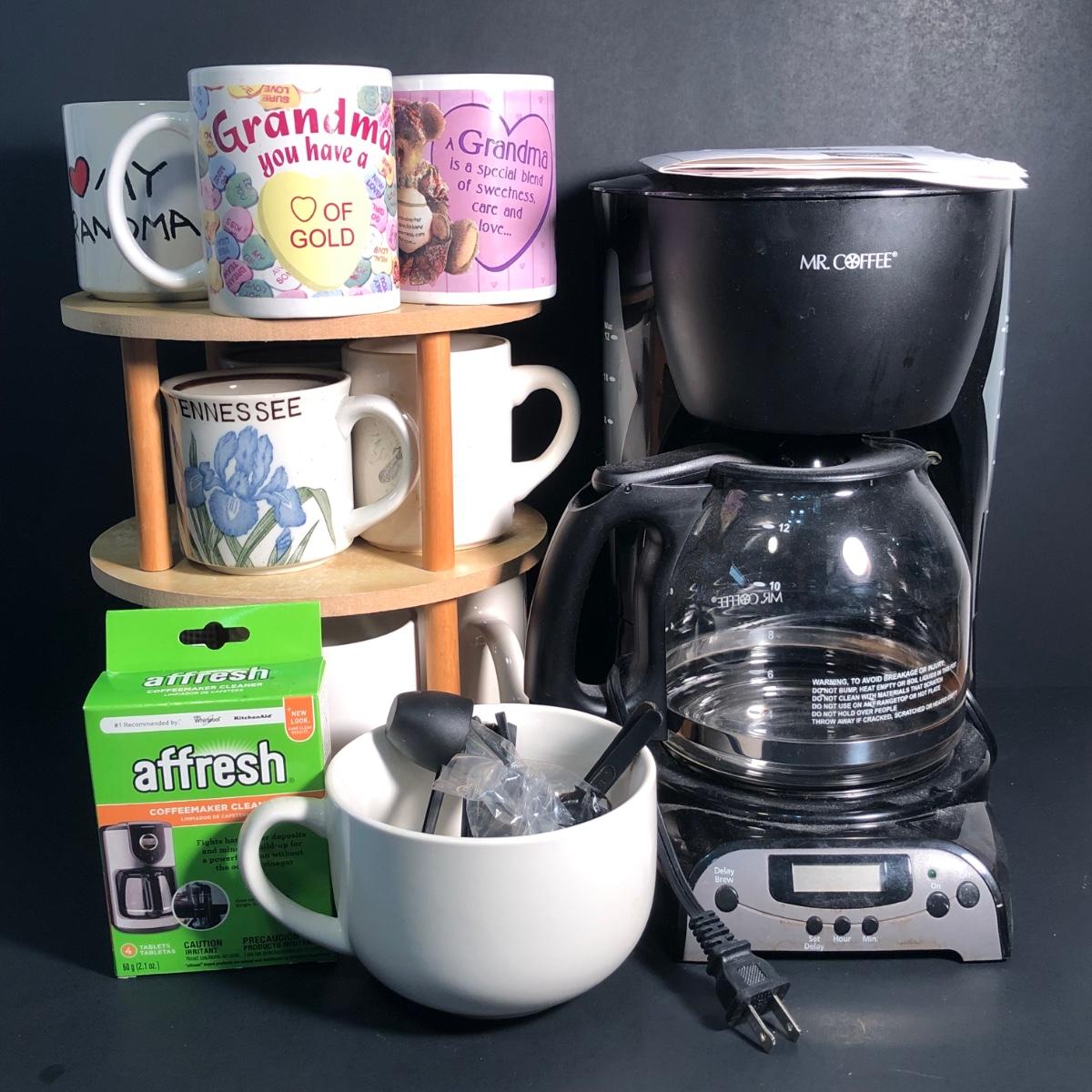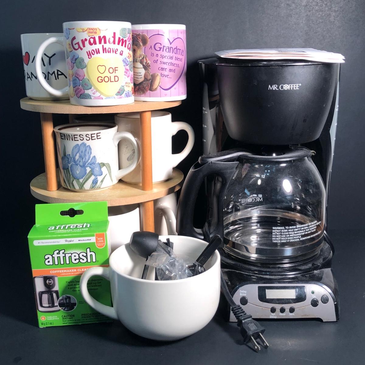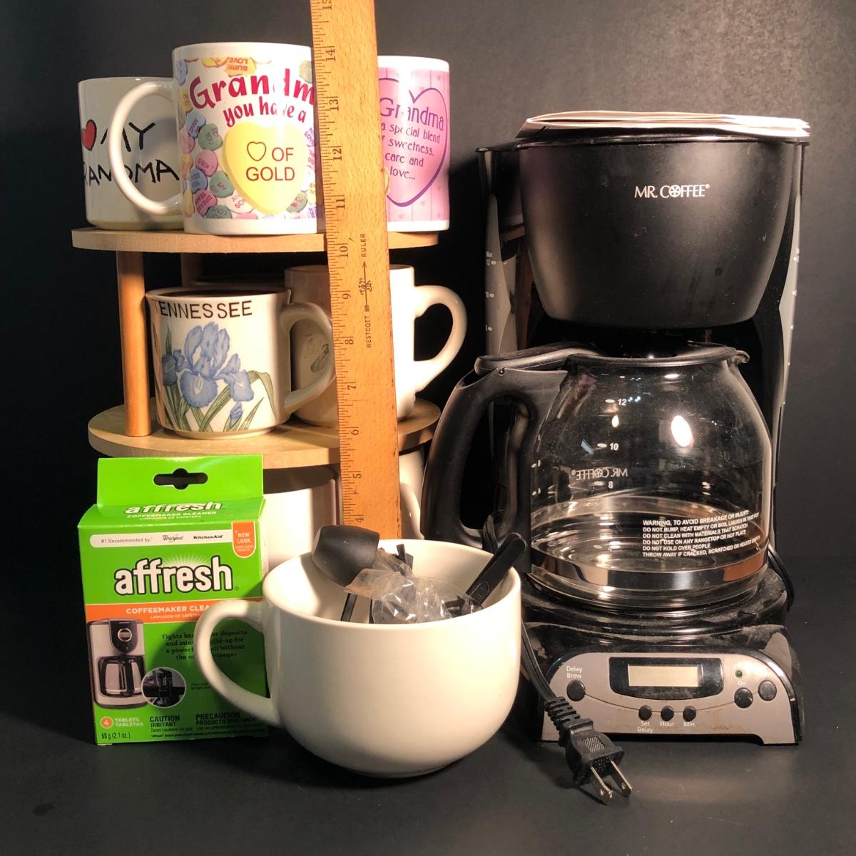 LOT 22L: Mr. Coffee Coffee Maker Model DRX23 w/ Mugs, Rotating Mug Rack & More