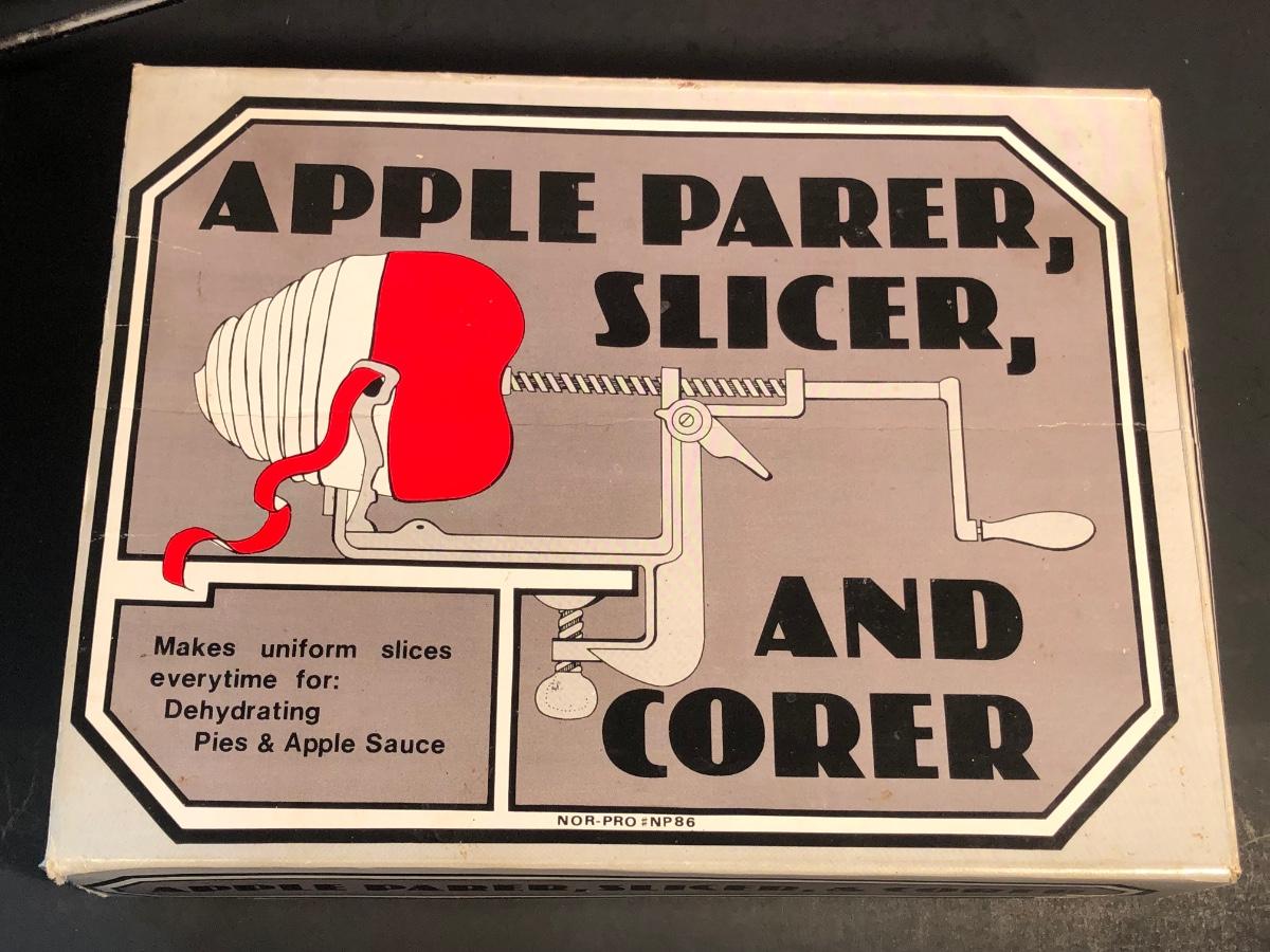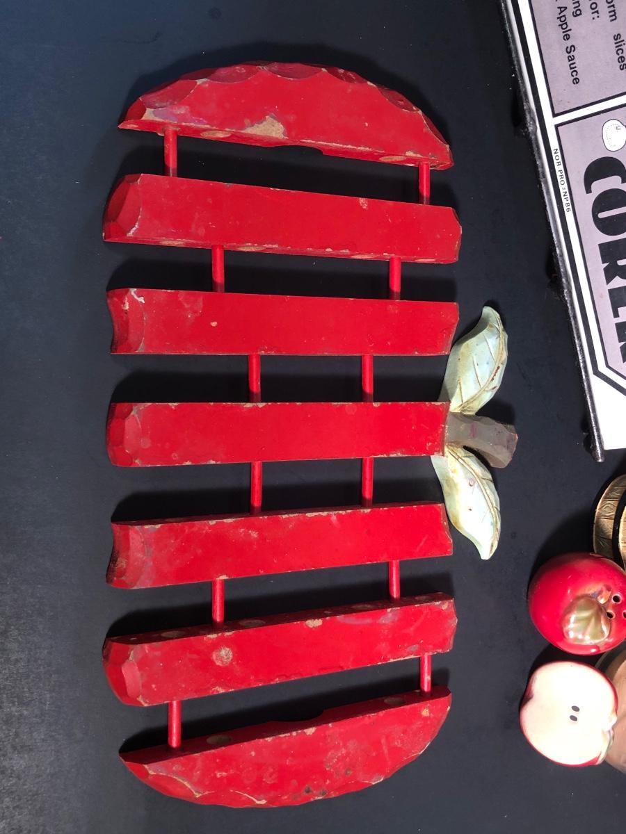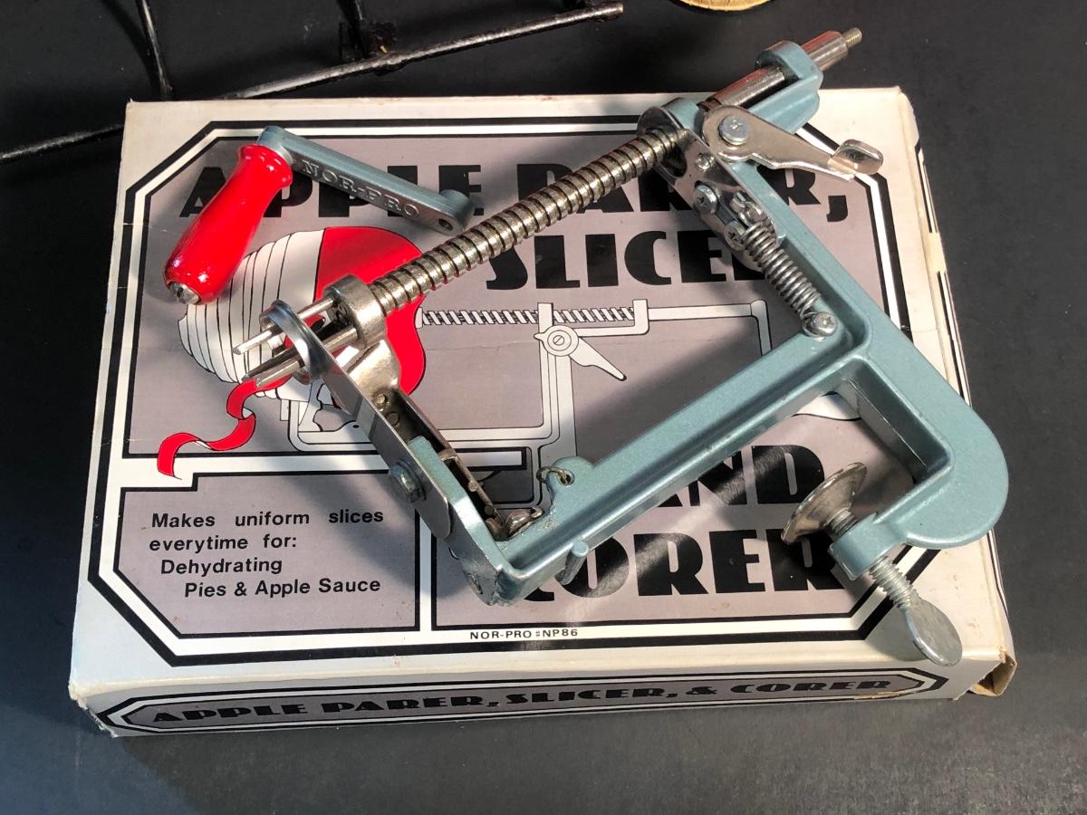 LOT 23L: Vintage Apple Parer, Slicer, and Corer, Expandable Wooden Trivet, Kitchen Timer, S&P Shakers, Counter Saver, Recipe Book Holder & More