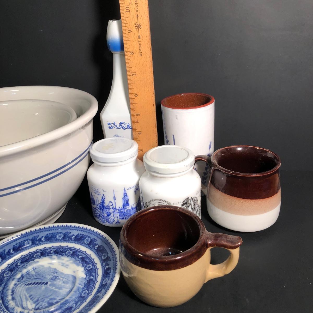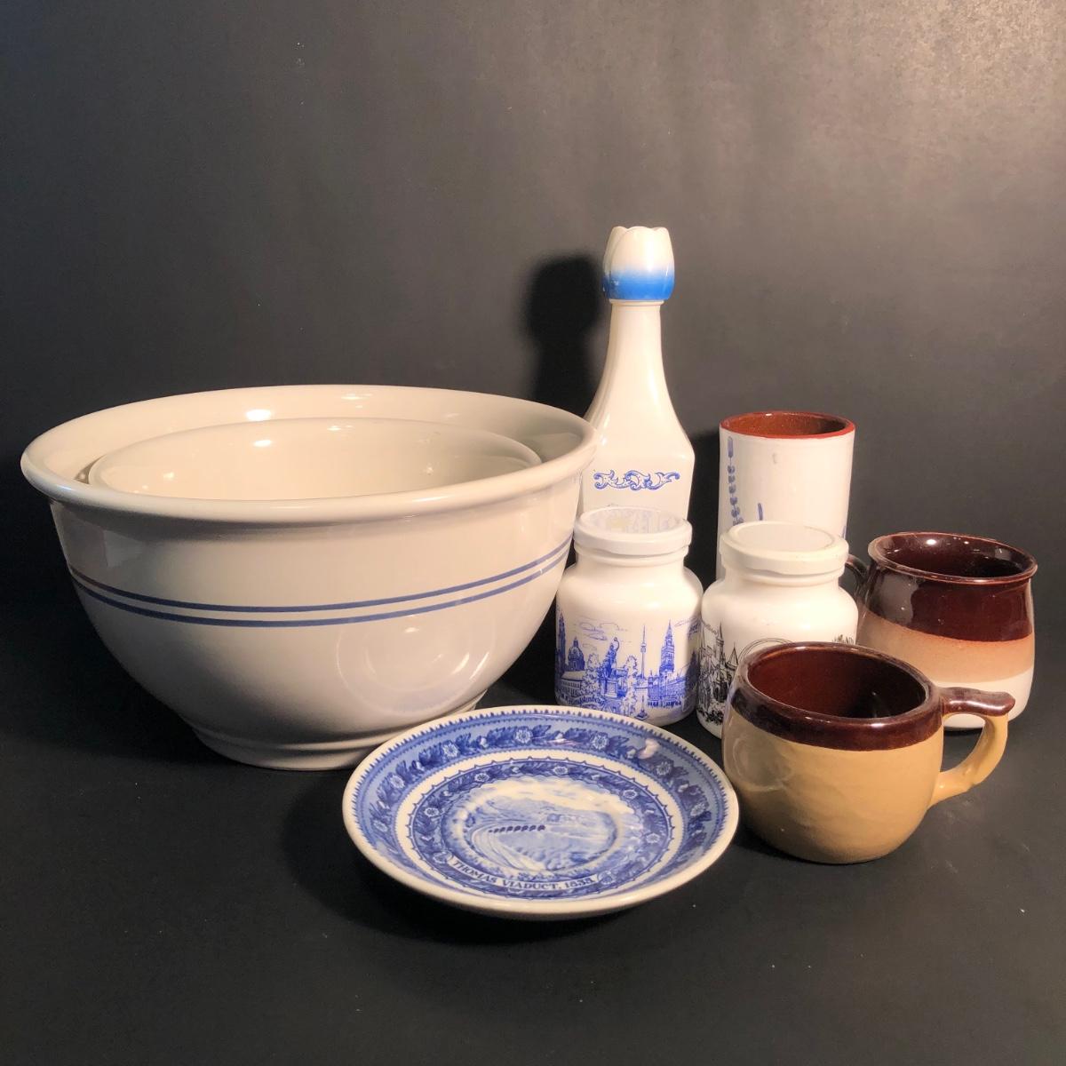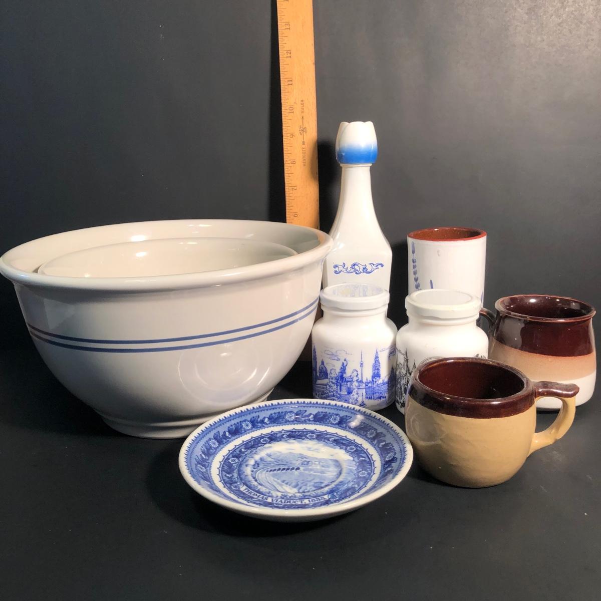 LOT 26L: Gibson China Pottery Mixing Bowls, Vintage Vandermint Liqueur Bottle, Pottery Mugs, Portugal Vase & More