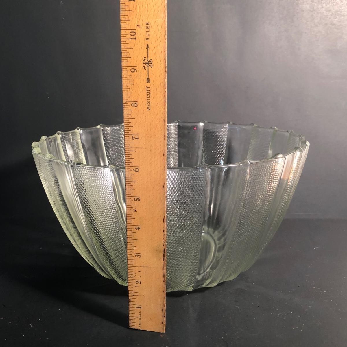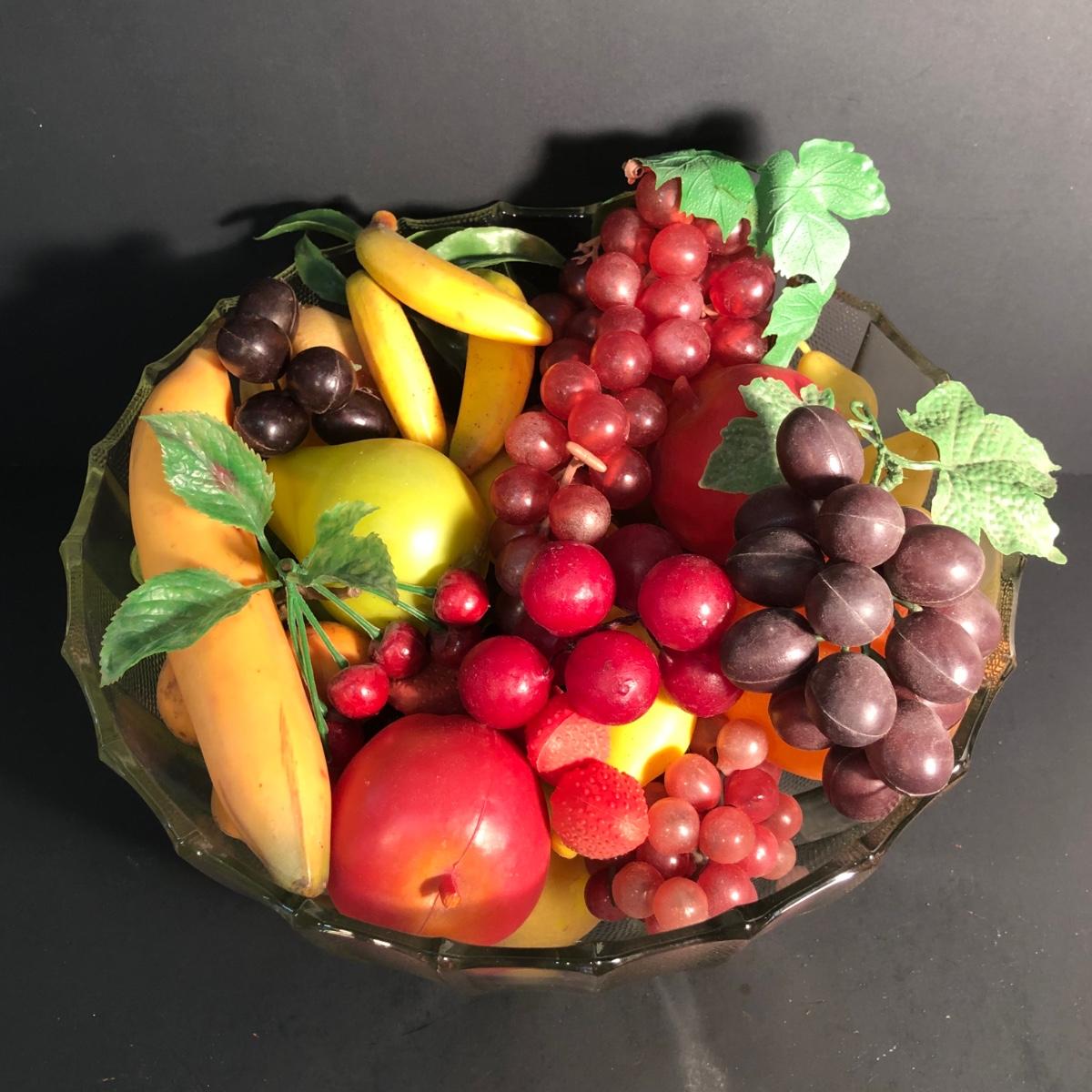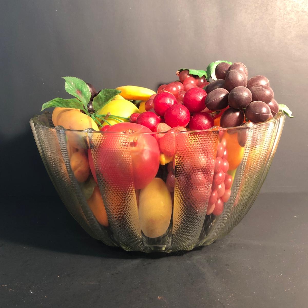 LOT 28L: Vintage Jeanette Glass Dewdrop Punch Bowl w/ 12 Matching Cups & Faux Fruit