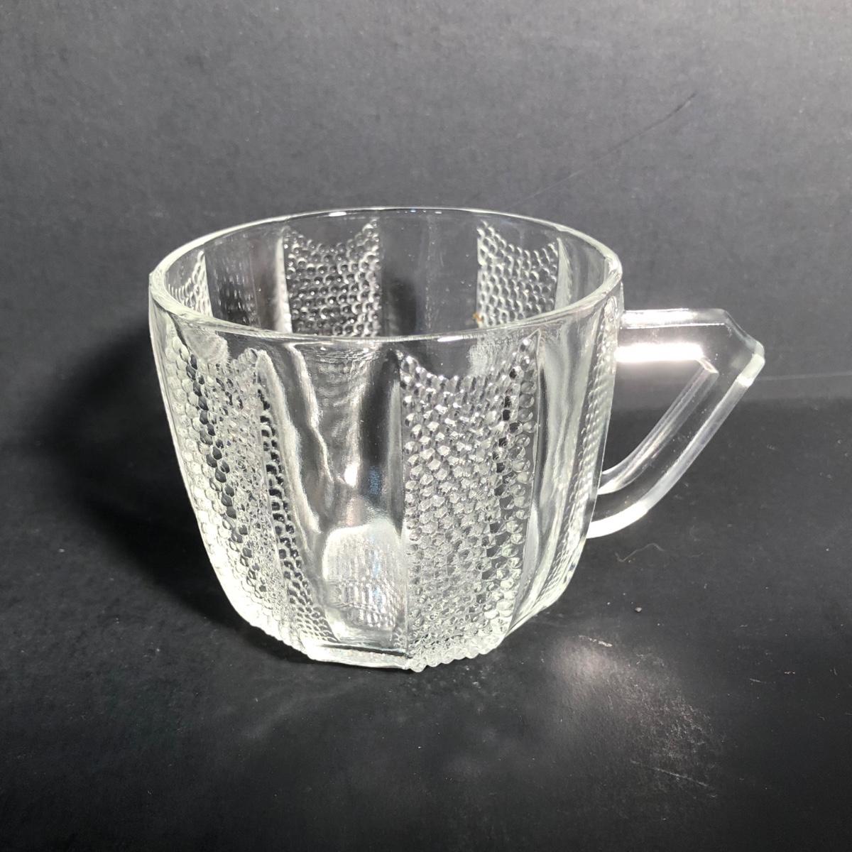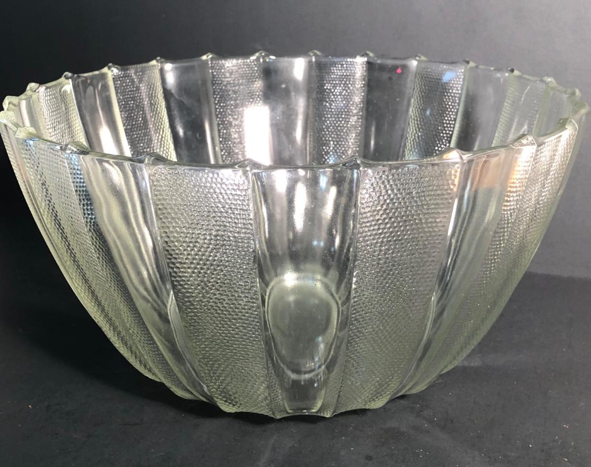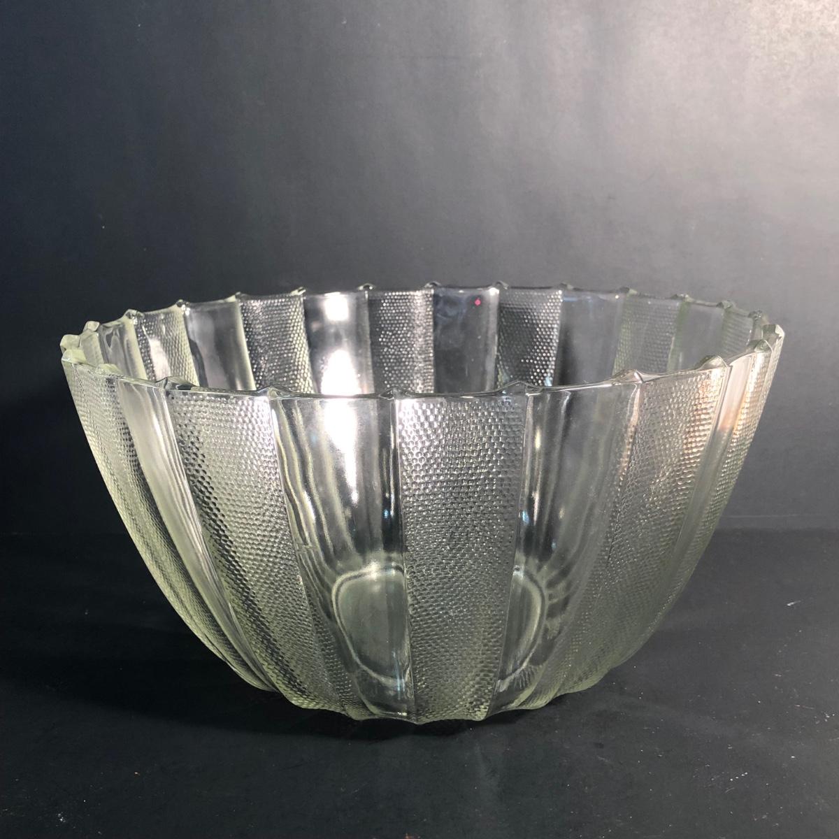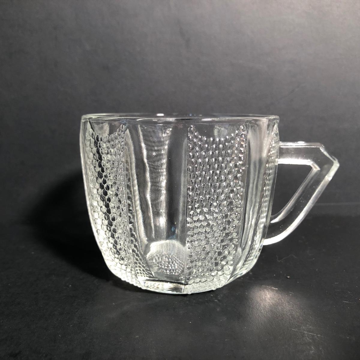 LOT 28L: Vintage Jeanette Glass Dewdrop Punch Bowl w/ 12 Matching Cups & Faux Fruit