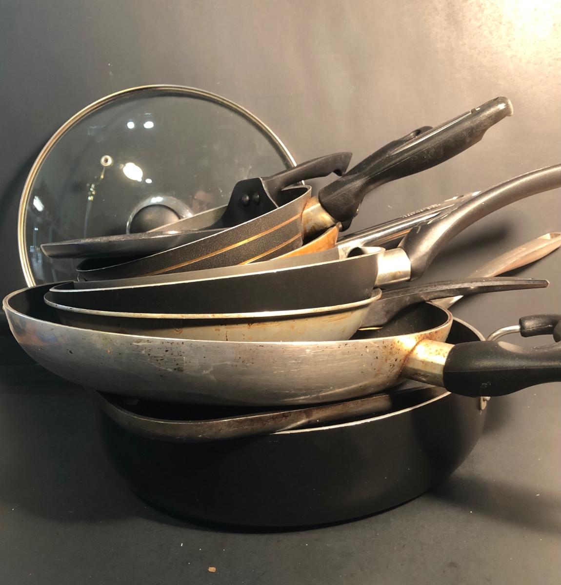 LOT 29K: Kitchen Pans - T-Fal, Thomas, Mirro & Calphalon