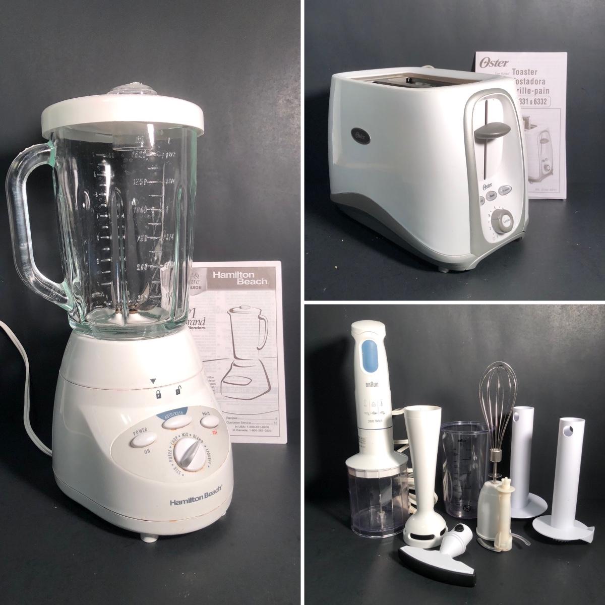 LOT 35K: Small Kitchen Appliances - Hamilton Beach Blender Model 5540, Oster Toaster Model 6331-000 & Braun MultiQuick Hand Blender