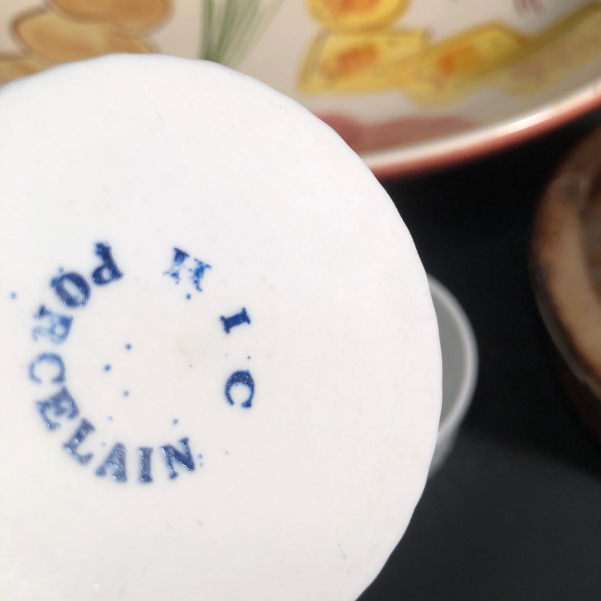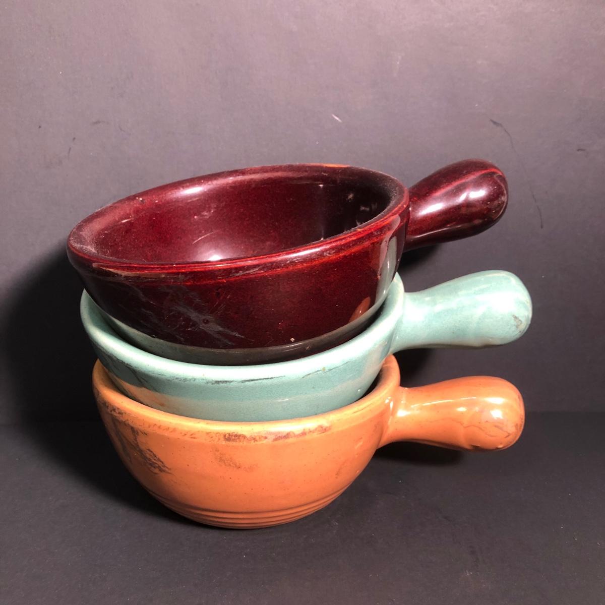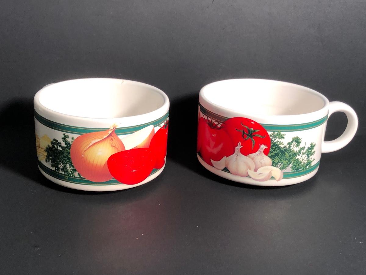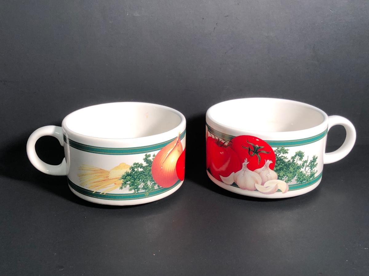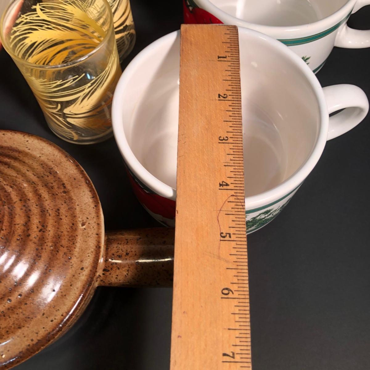 LOT 36K: Large Painted Chip 'N Dip Bowl, Libbey Wheat Glasses (2), Hickory Farms Soup Bowls & More
