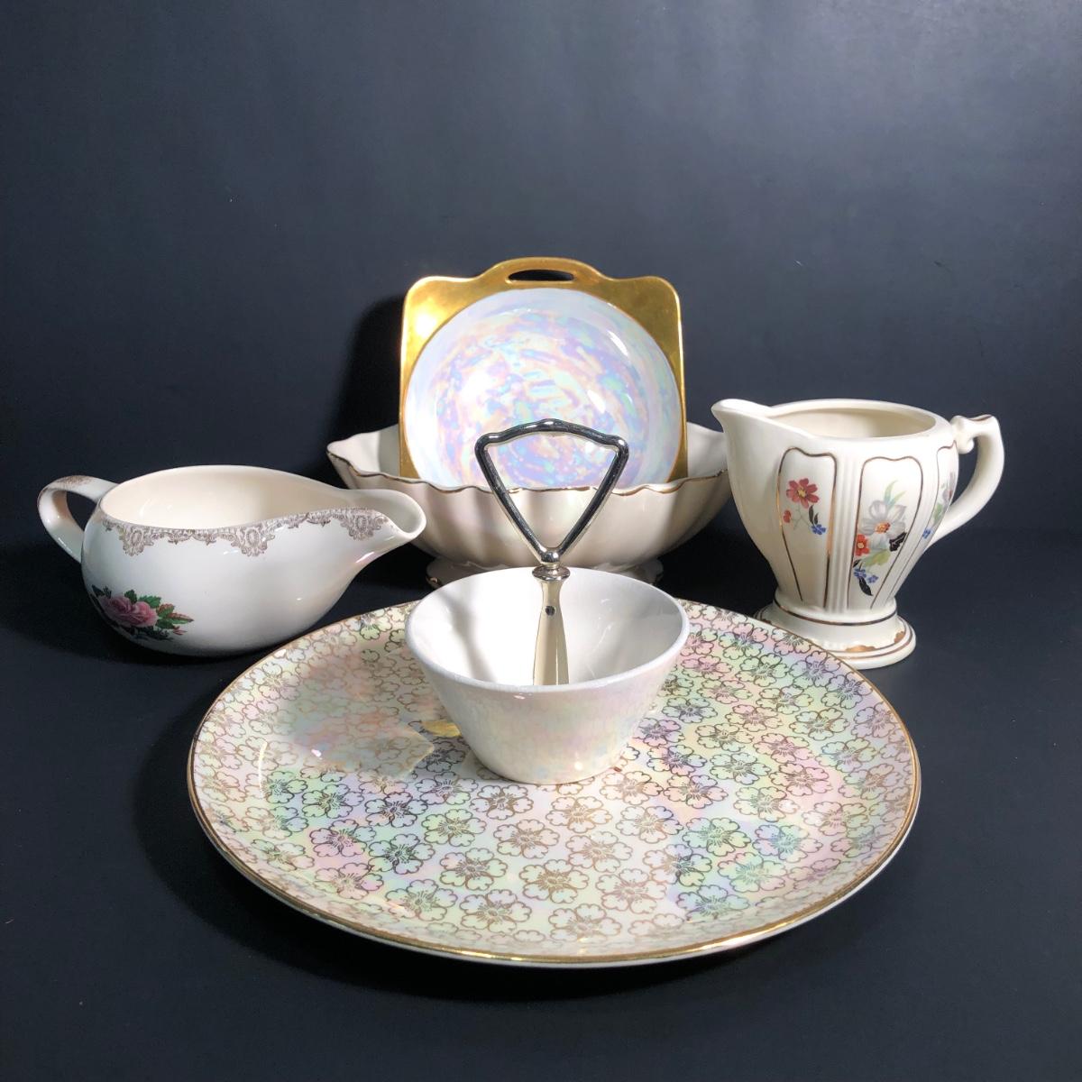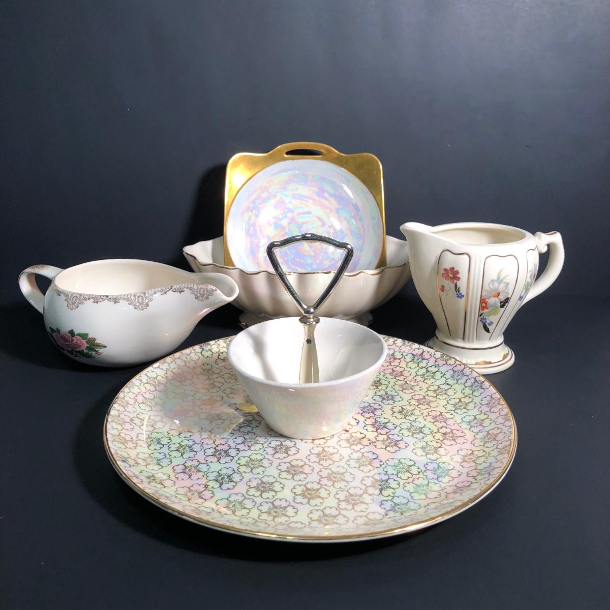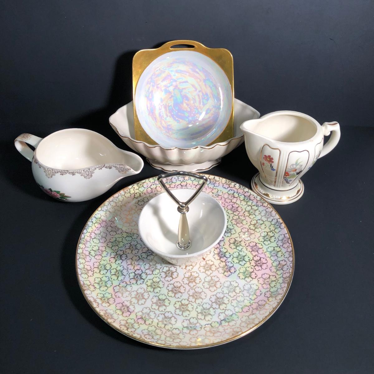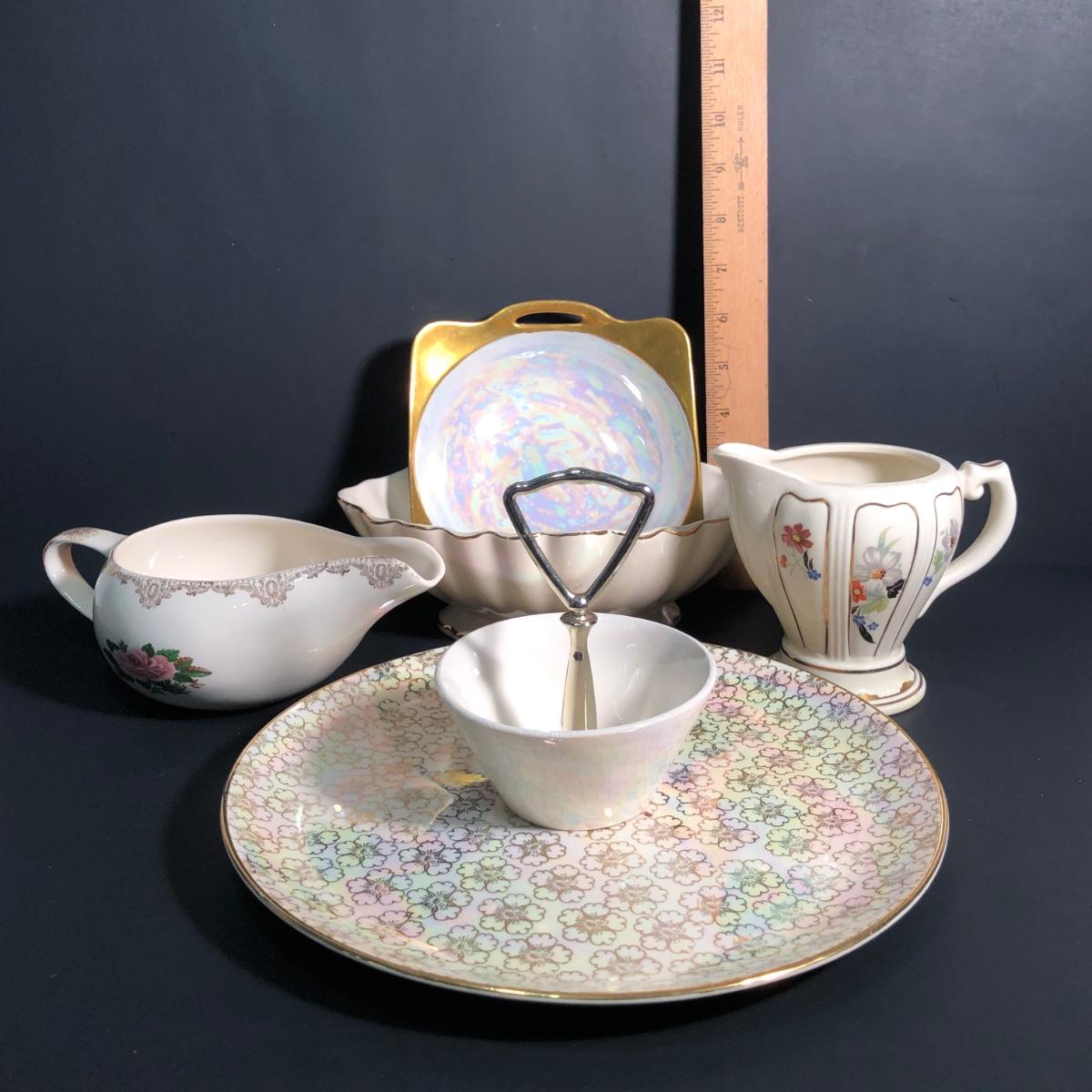 LOT 37L: Pearl China Co. Iridescent Serving Platter, Floral China Pitchers & More