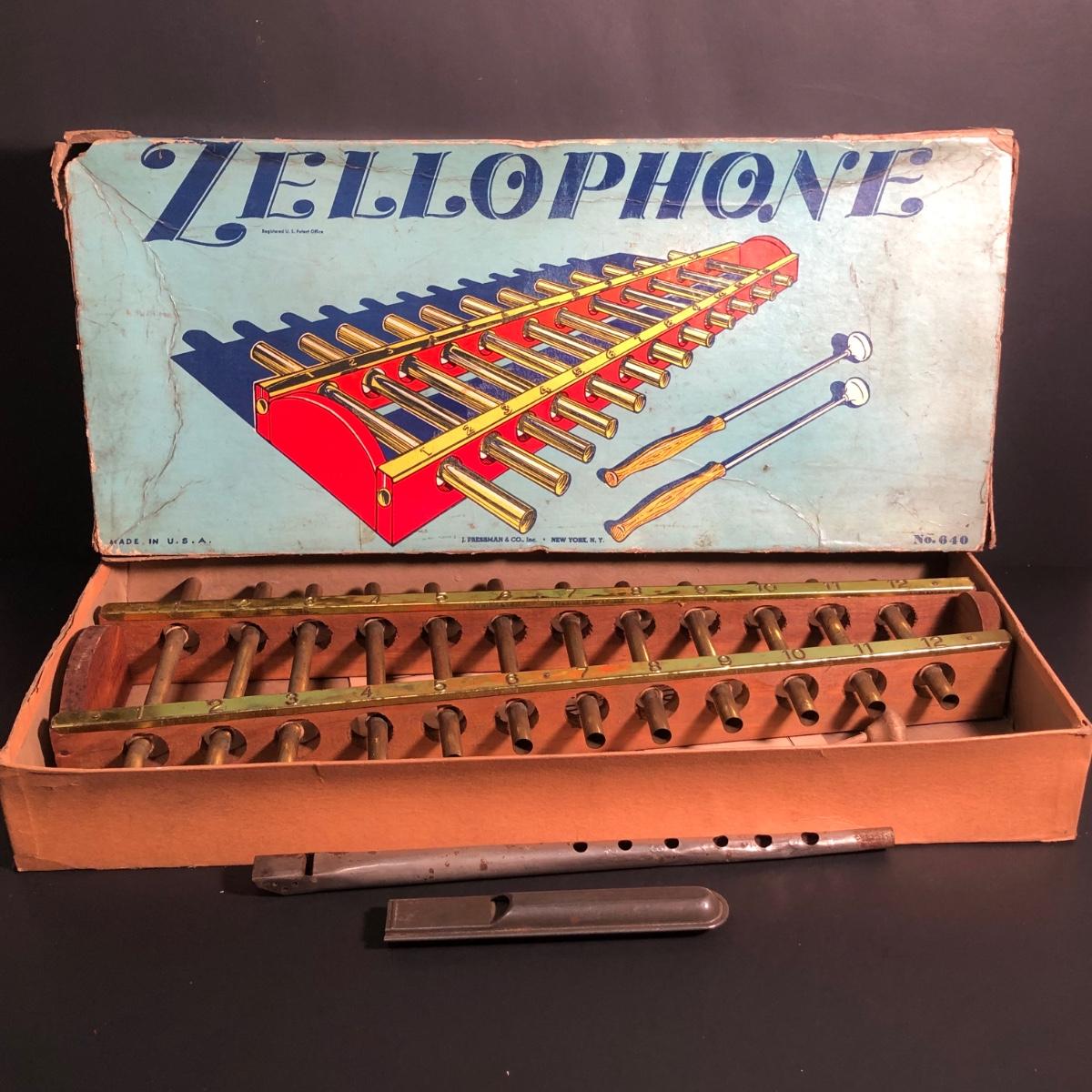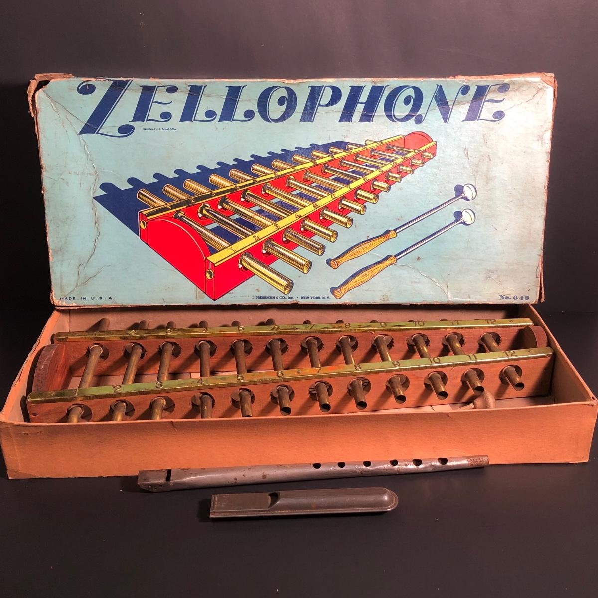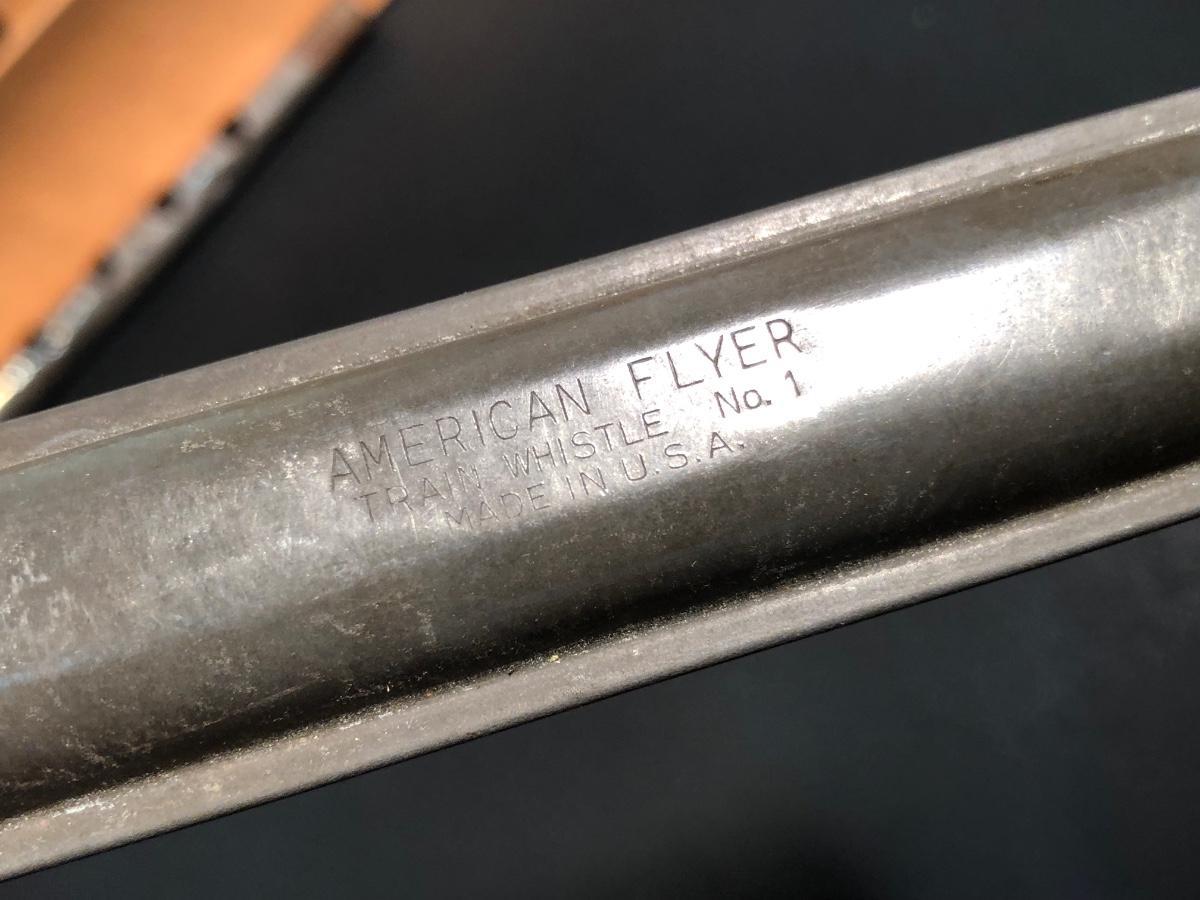 LOT 38L: Vintage Zellophone w/ Box (No Sticks), American Flyer Train Whistle No. 1 & Metal Wind Instrument