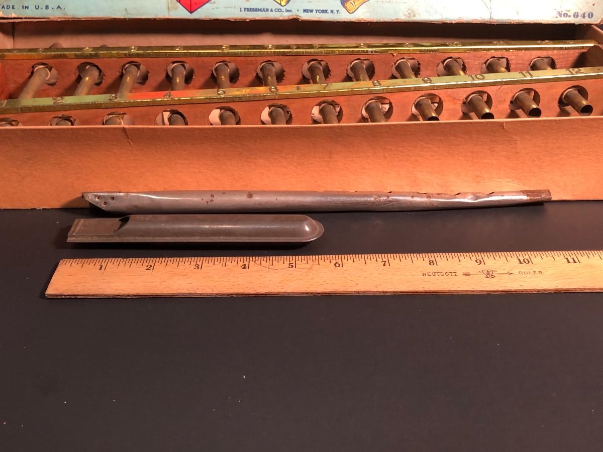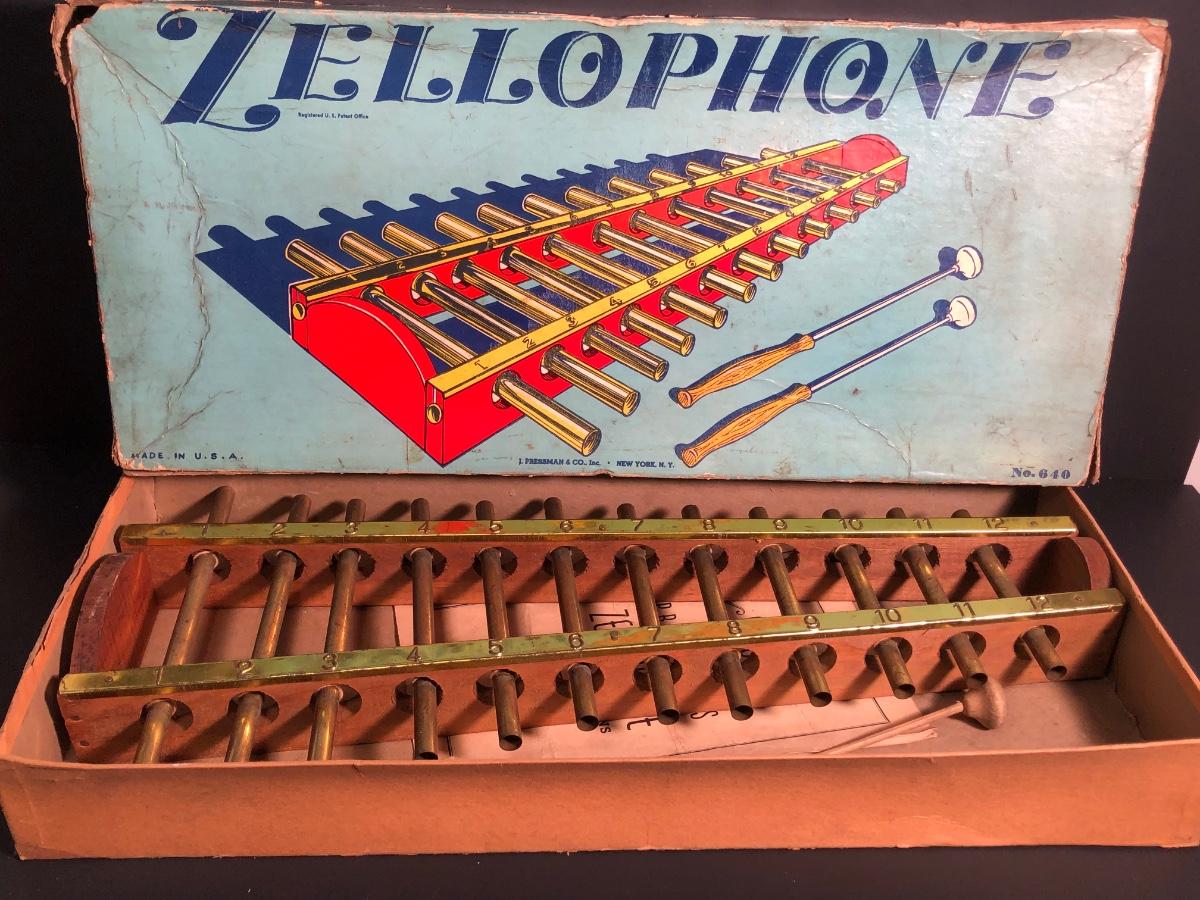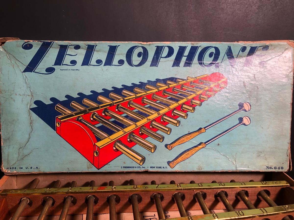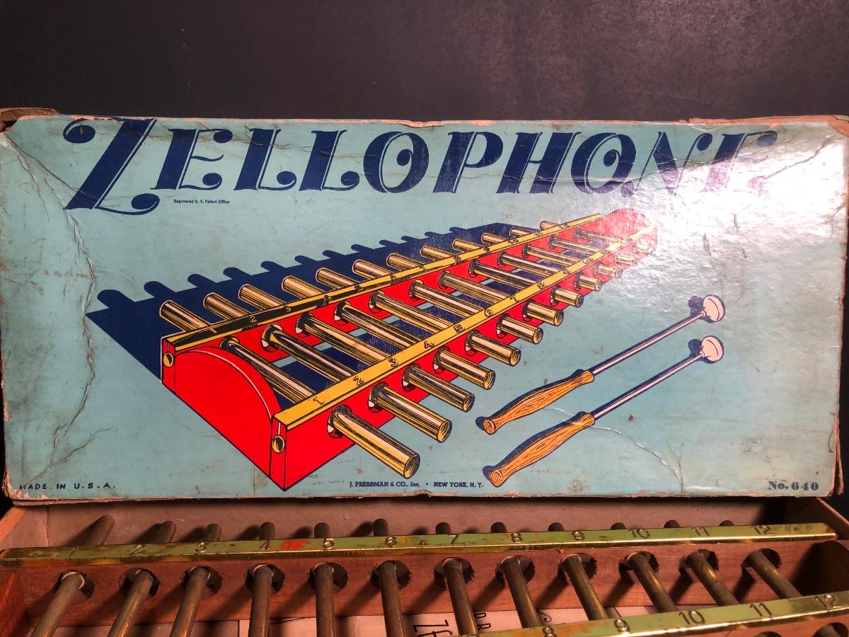 LOT 38L: Vintage Zellophone w/ Box (No Sticks), American Flyer Train Whistle No. 1 & Metal Wind Instrument
