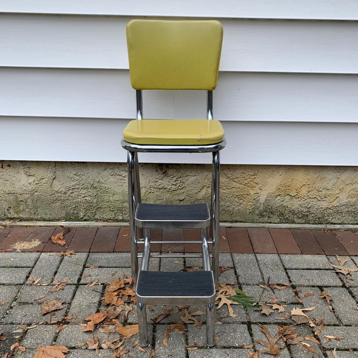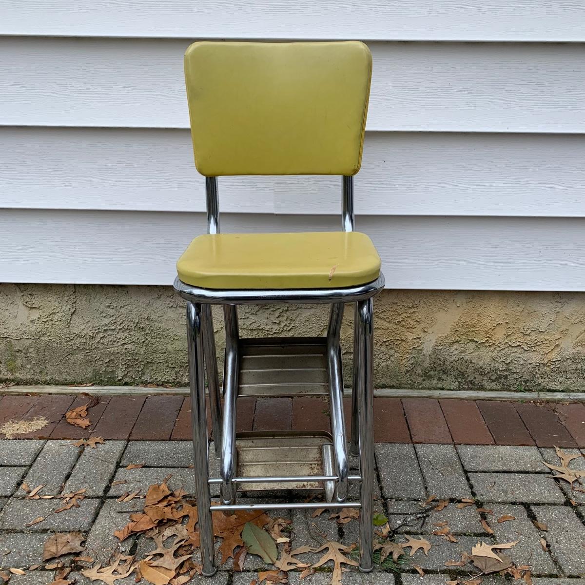 LOT 44 P: Vintage Yellow & Chrome Step Stool Chair