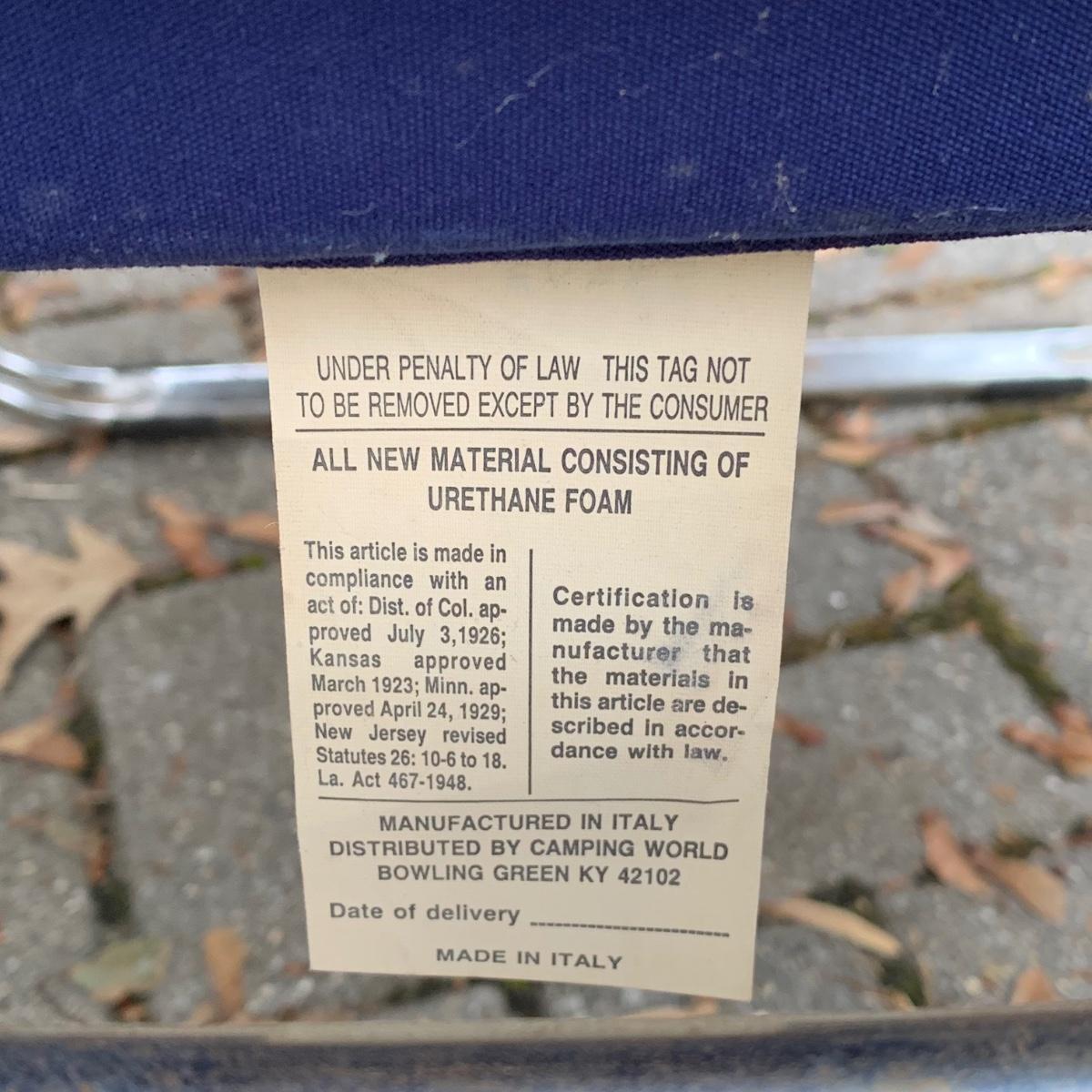 LOT 47 P: Marga Reclining Airstream Camper Chairs W/ Foot Rest Made In Italy