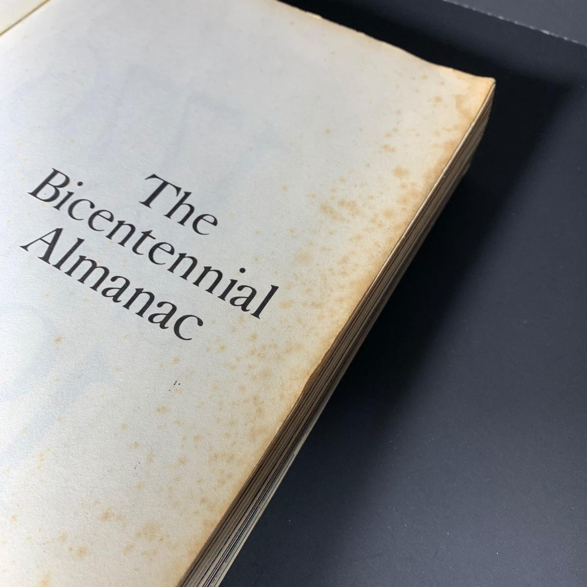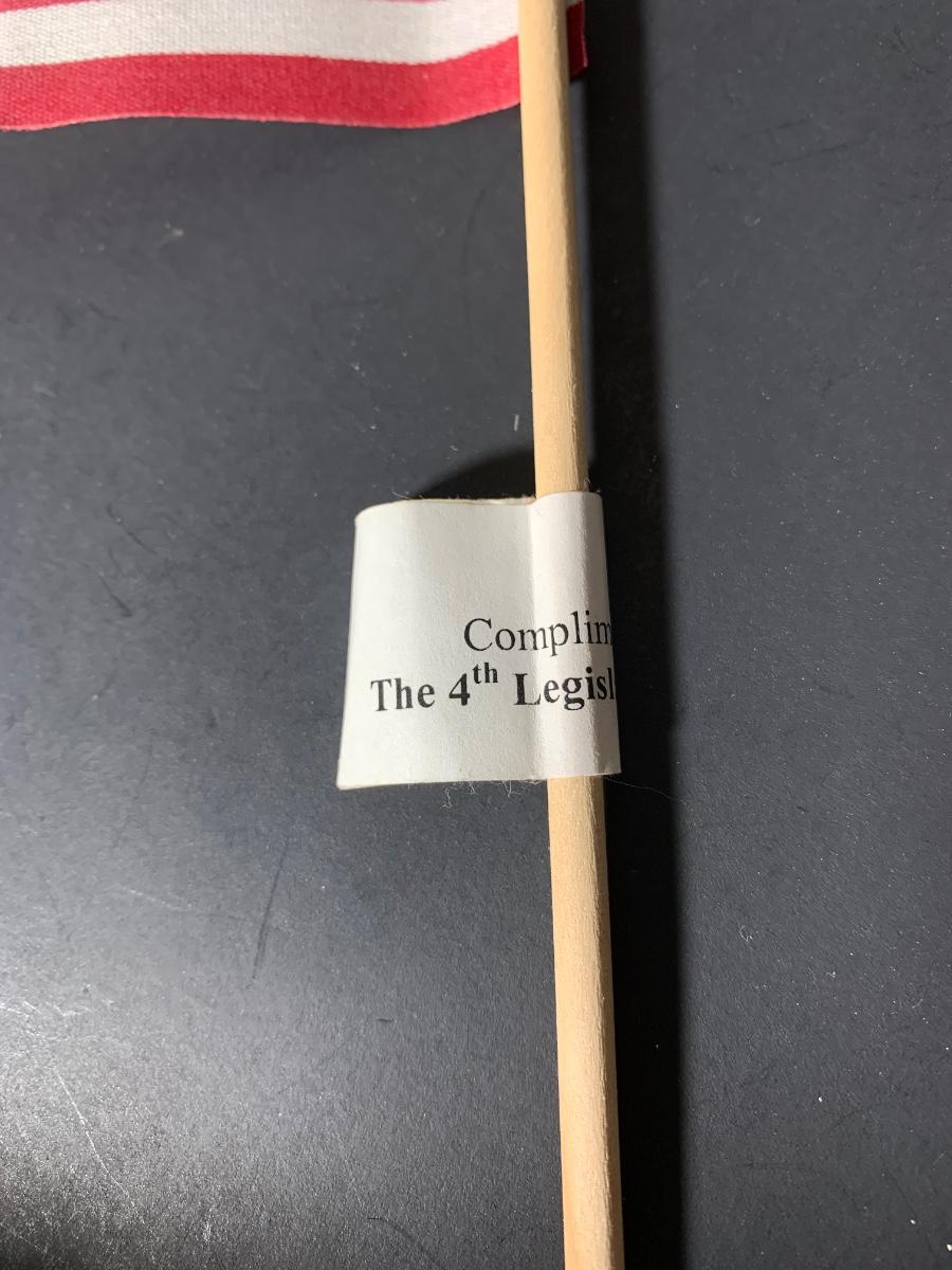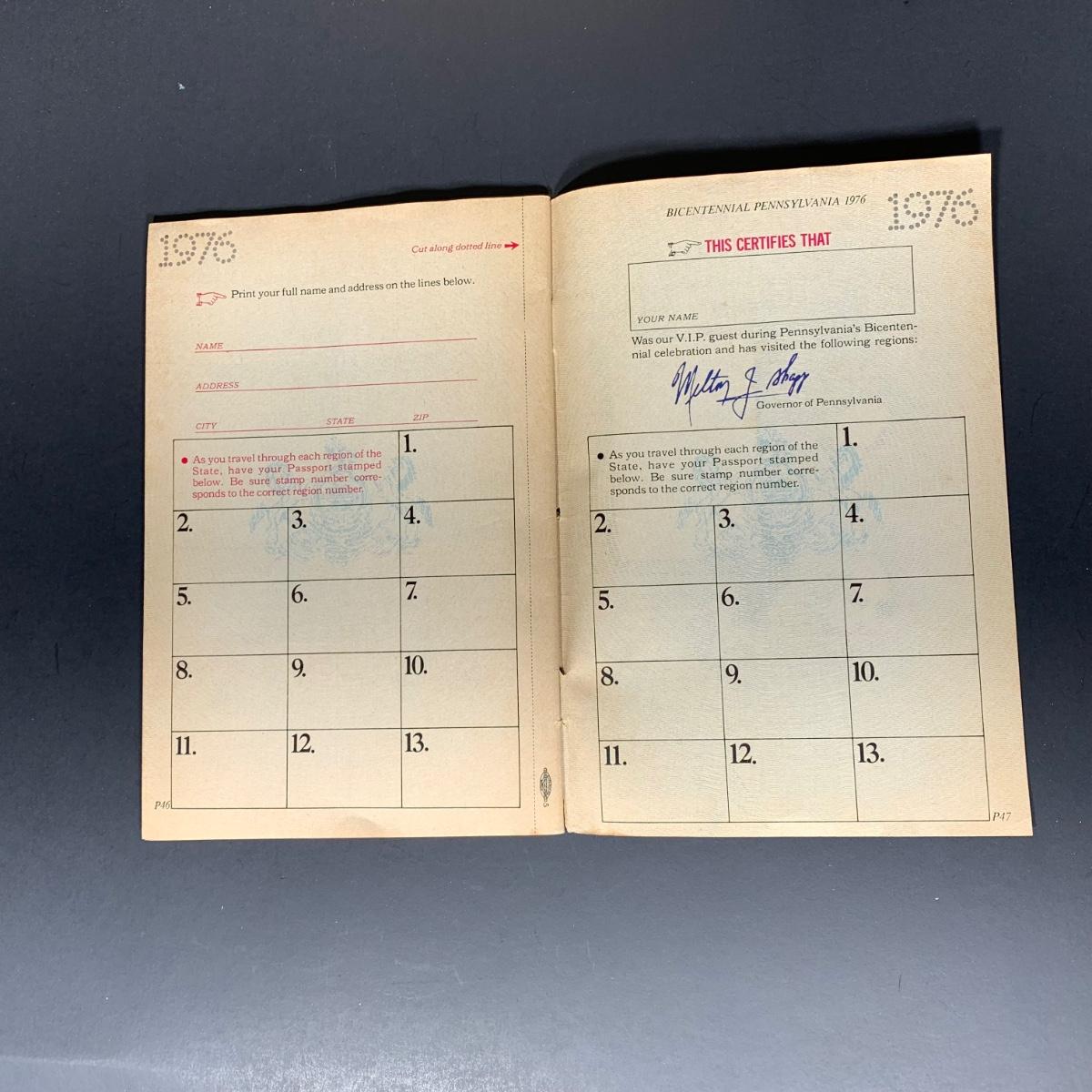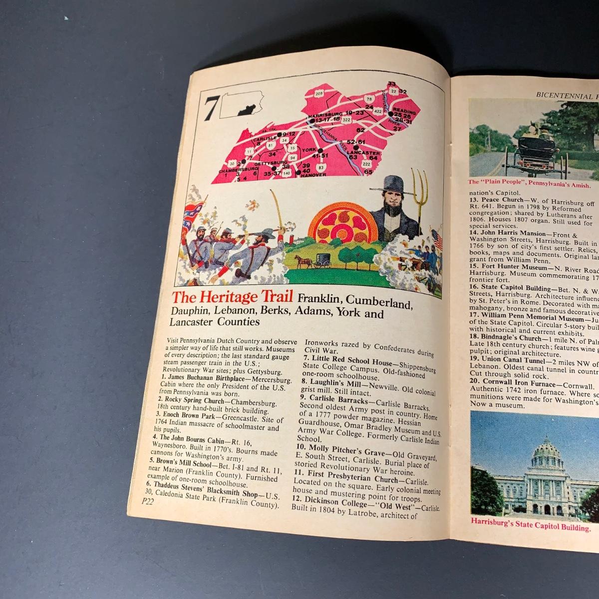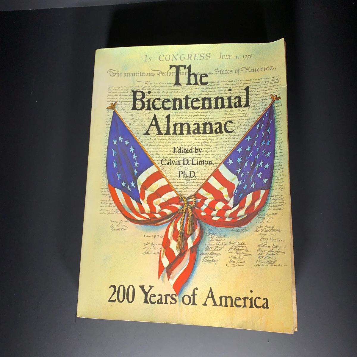 LOT 50 L: Bicentennial Almanac, Passport To History Booklet, White Ceramic Cup W/ Eagle, Glass Bicentennial Bottle, & Flag