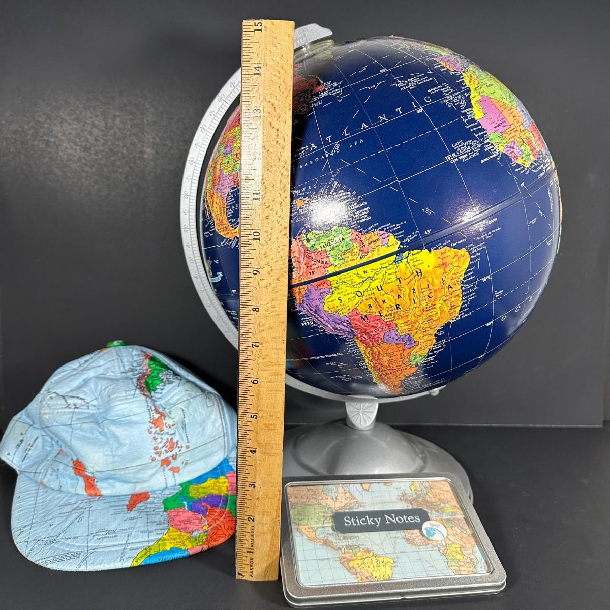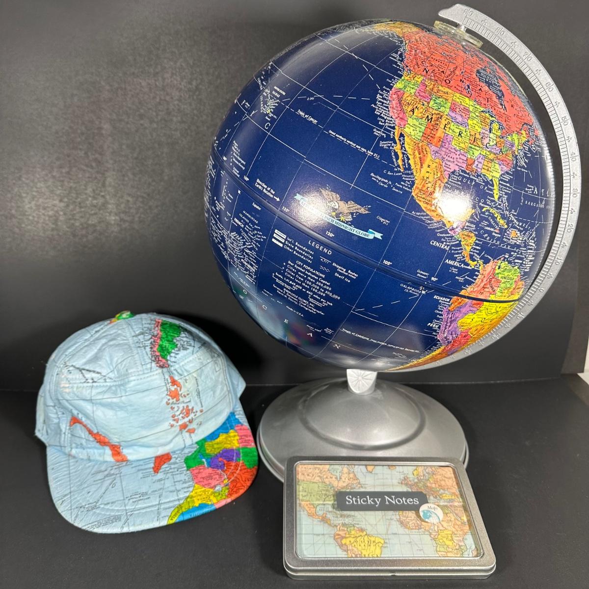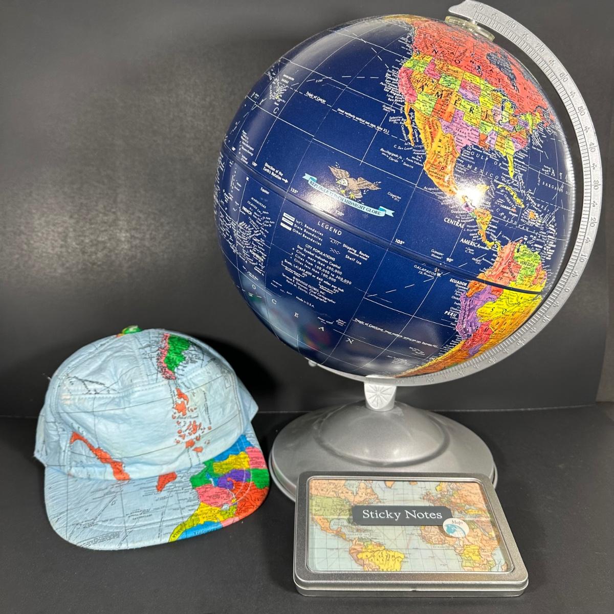 LOT 99F: Map/Globe Themed Collection - Hat, Sticky Notes & Globe