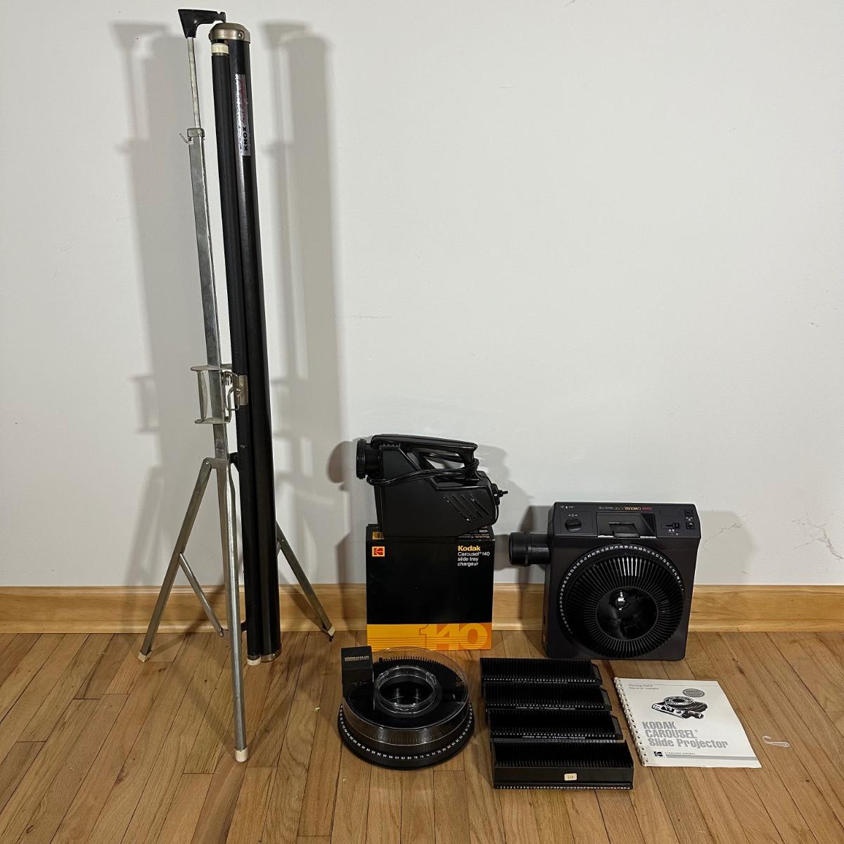 LOT 100F: Kodak Carousel 4200 Projector w/ 2 Slide Carousels, Projector Screen & More