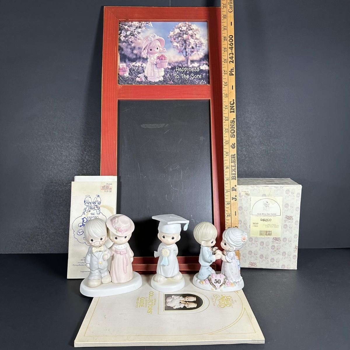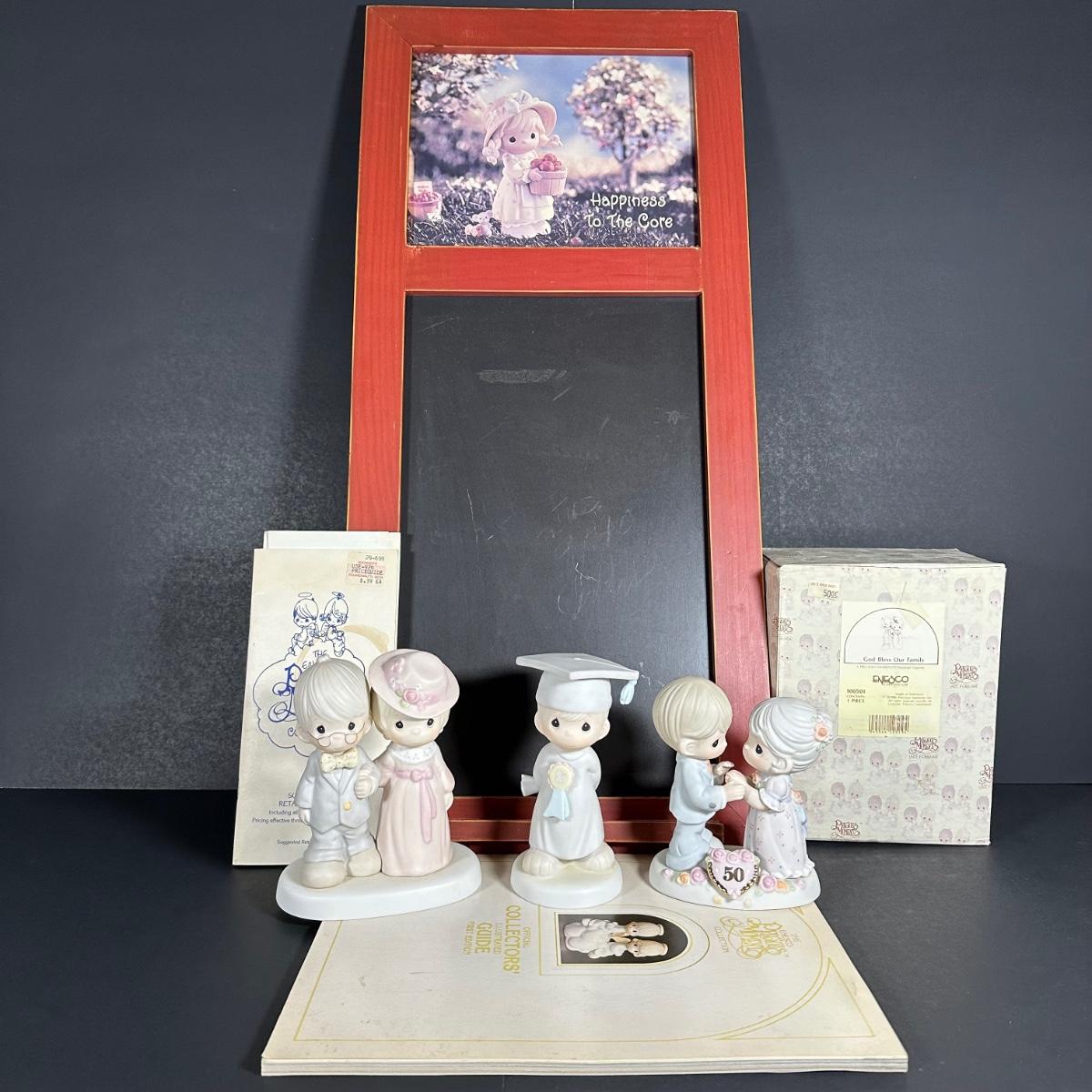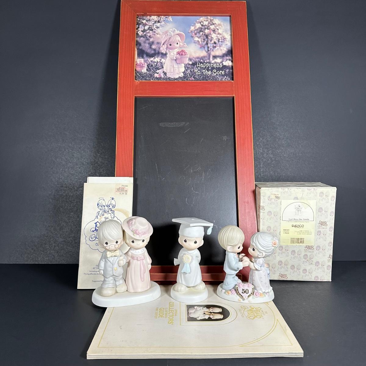 LOT 101F: Precious Moments Collection - Figurines, Collectors Guide & Chalk Board
