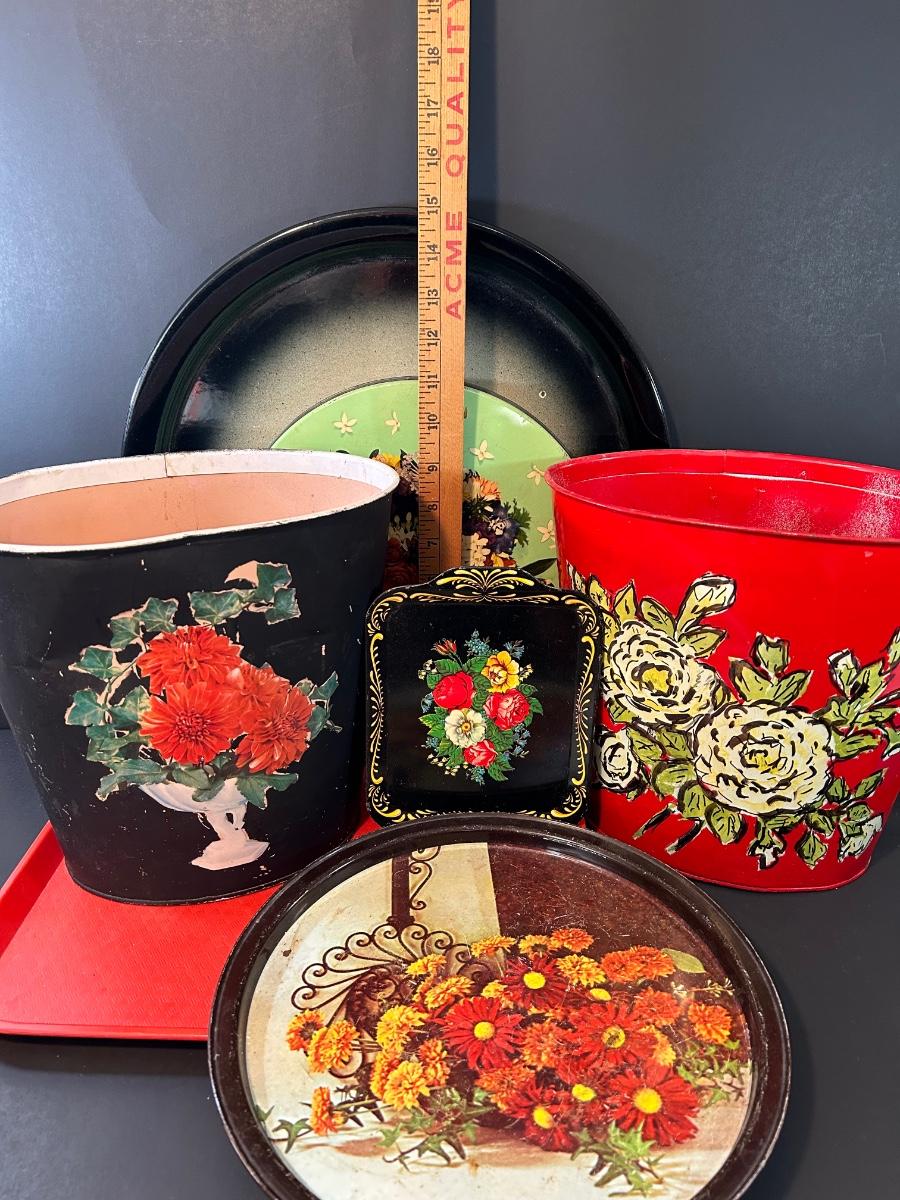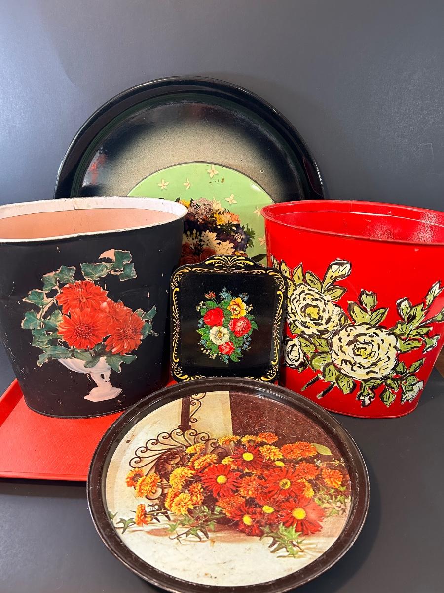 LOT 135L: Vintage Tin Trays And Trash Cans