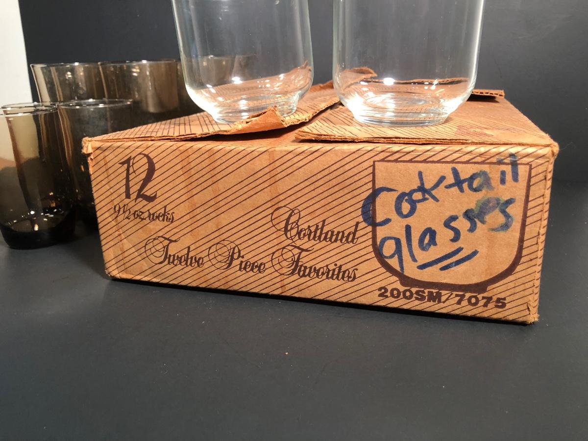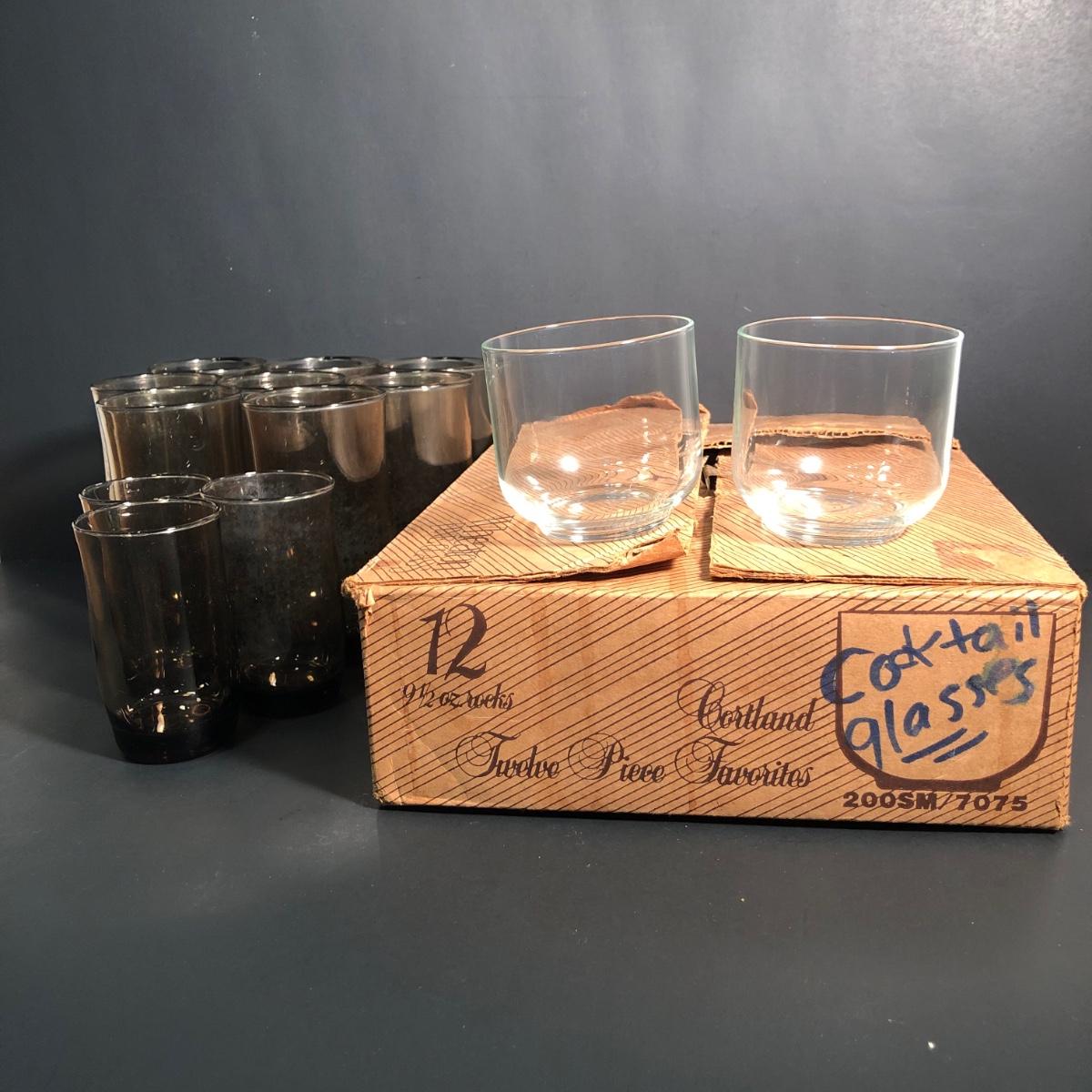 LOT 161L: Wheaton Cortland Cocktail Glasses & Smokey Glasses in 2 Sizes