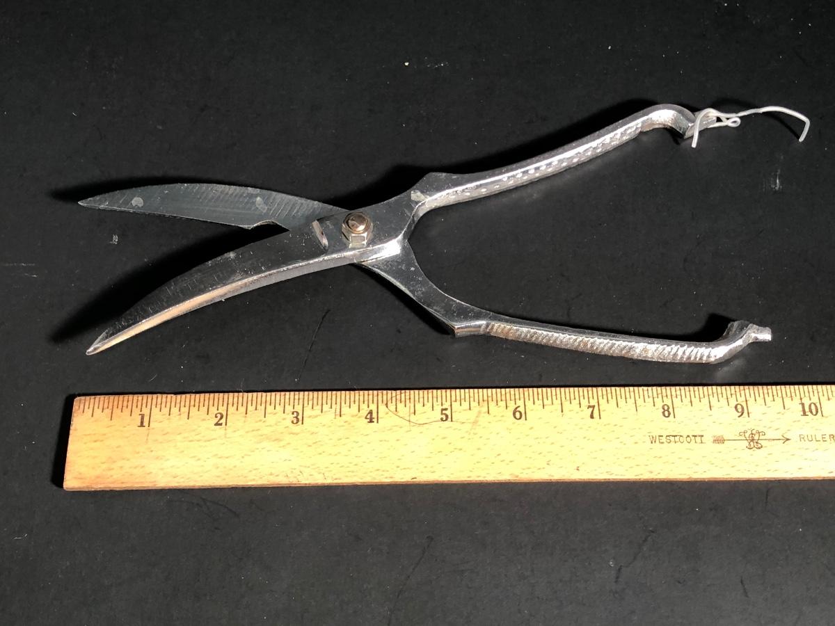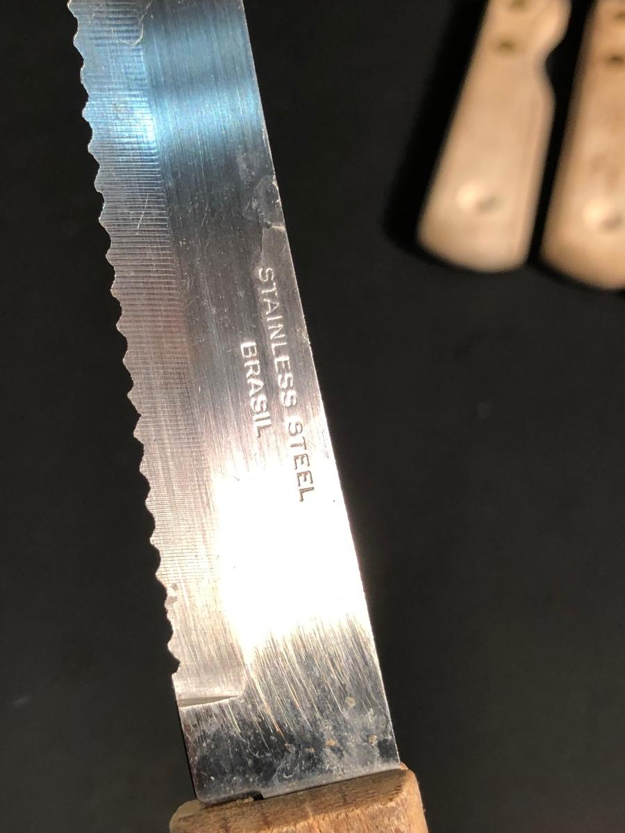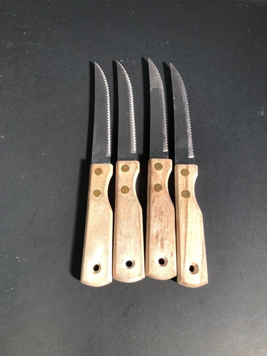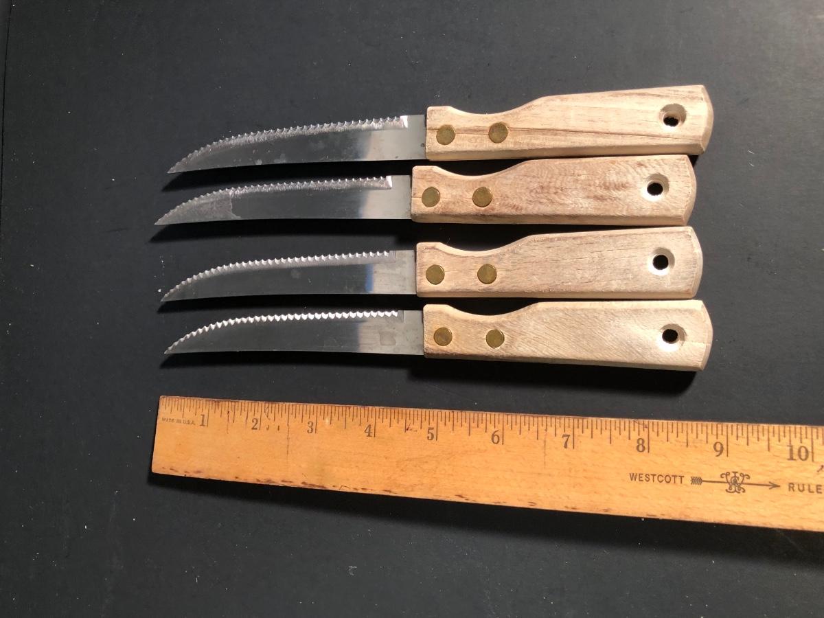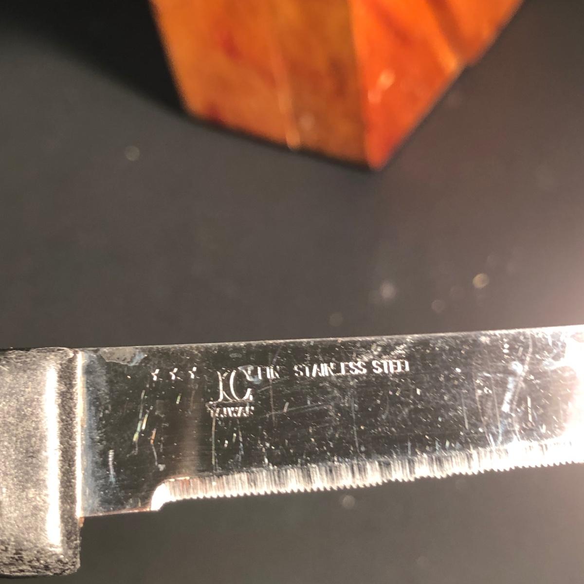 LOT 164L: Knife Collection - Stainless Steel Magna Wonder Knife in Box, Poultry Scissors, Knife Block, Black Knight Stainless Steel Steak Knives (6), Kitchen IQ Knife Sharpener & More