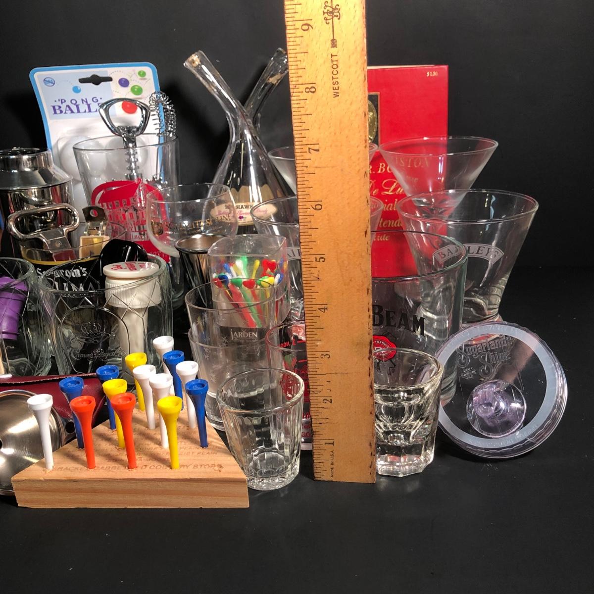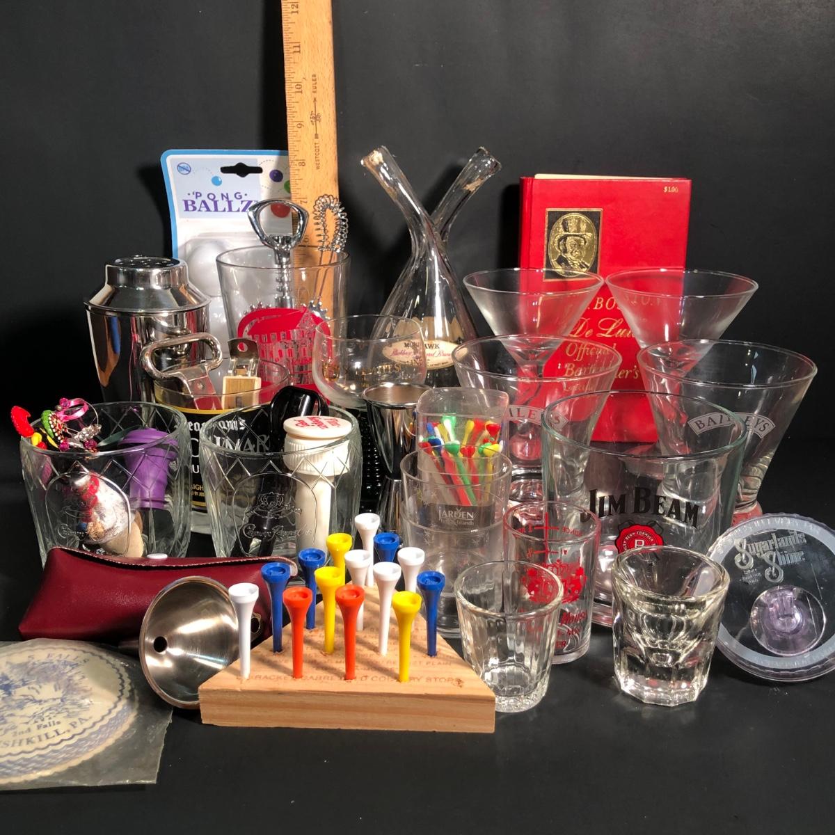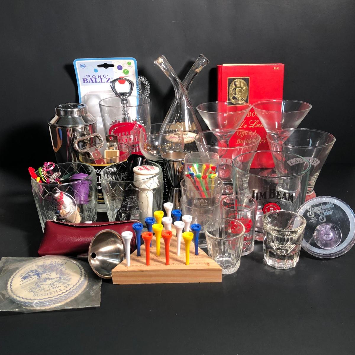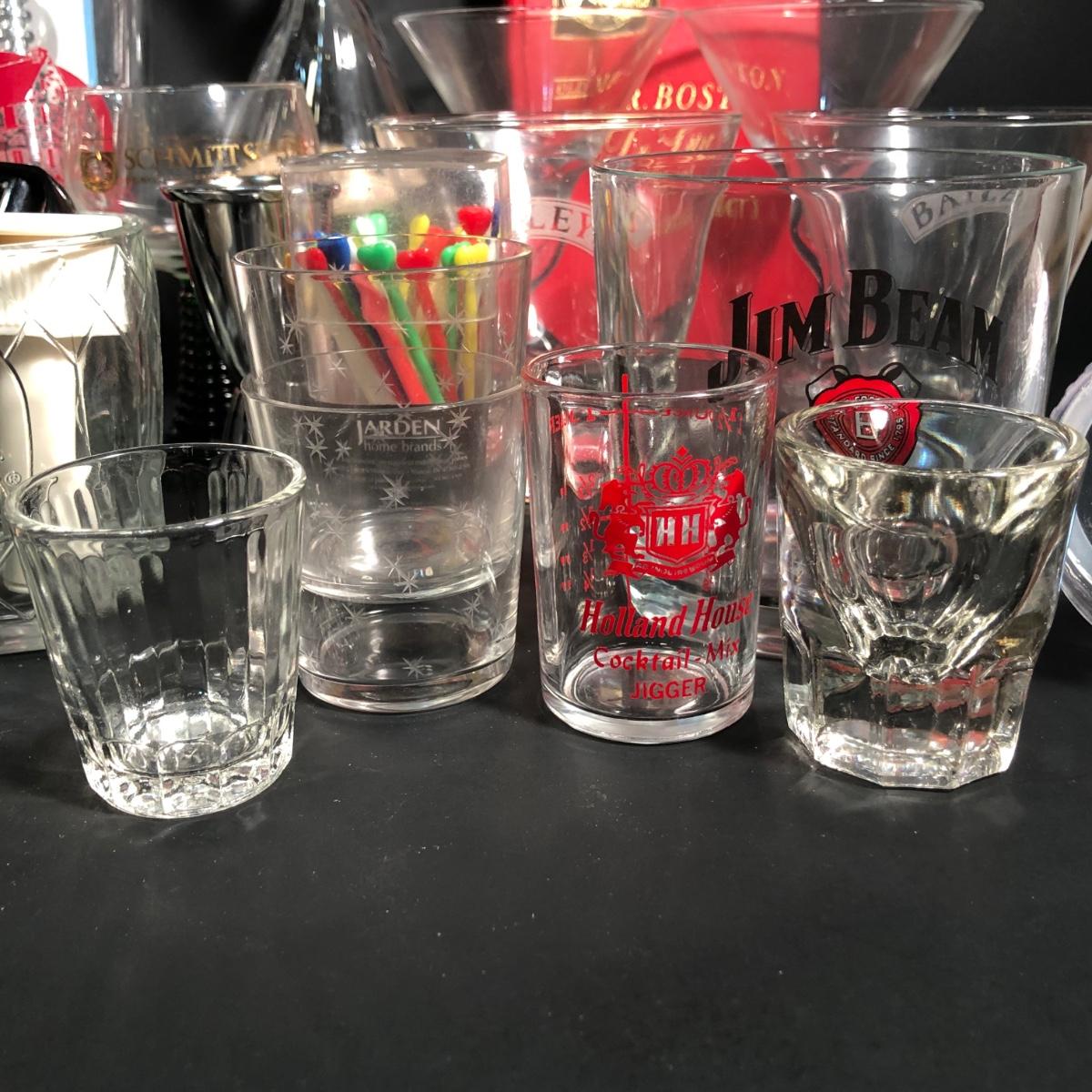 LOT 166K: Bar Lot incl. Branded Glasses - Jim Beam, Bailey's, Crown Royal, Seagrams